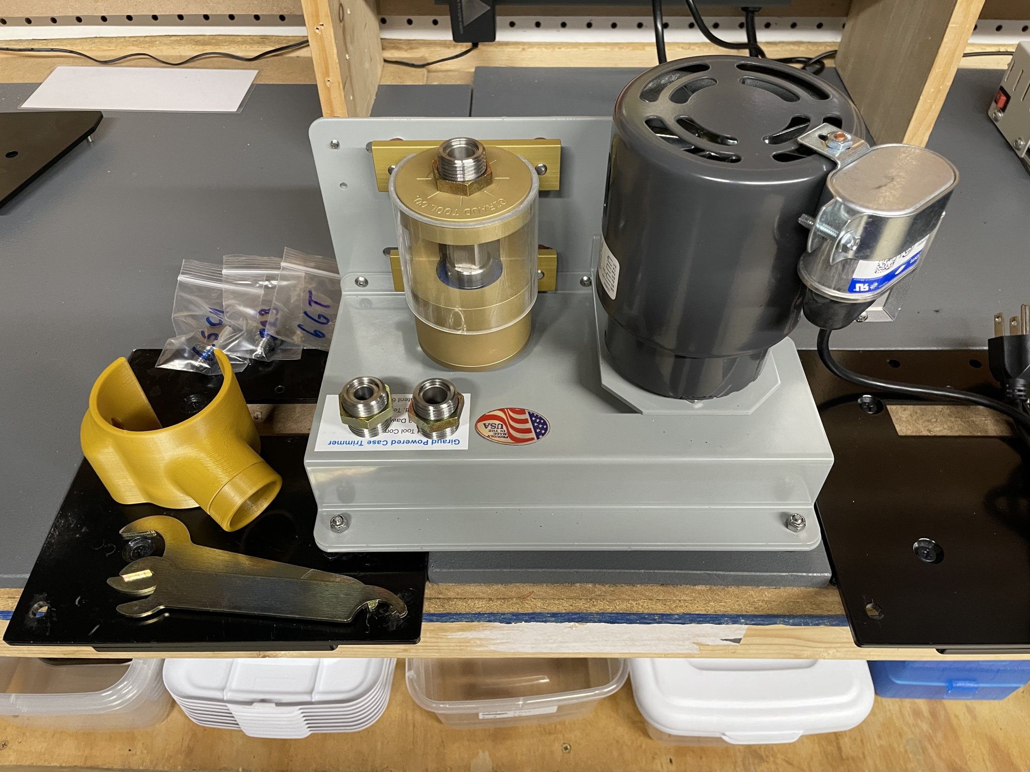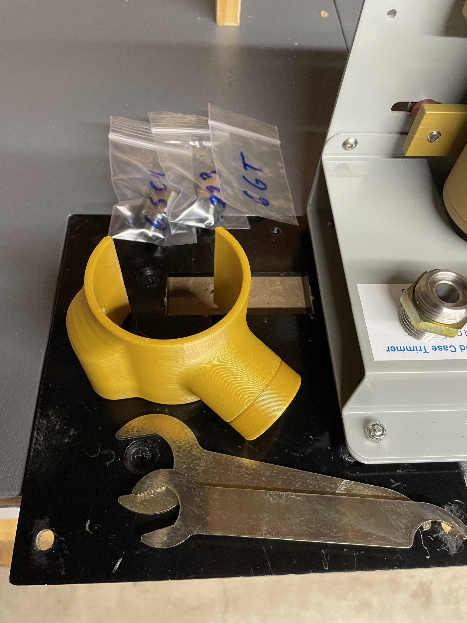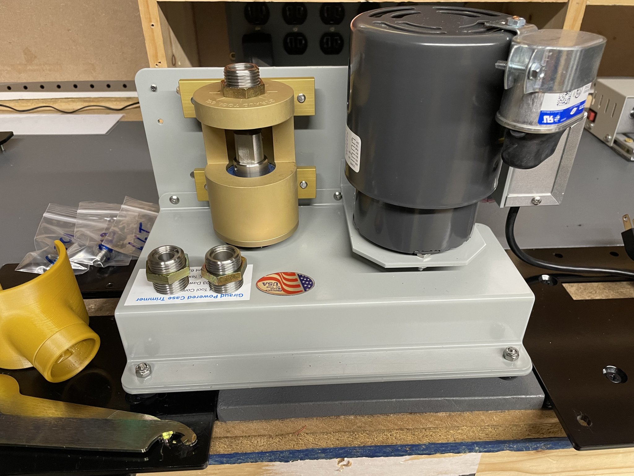 Giraud trimmer. Excellent condition. Has trimmed less than 1,000 rounds between two calibers. Also has the Primal Rights vacuum attachment so brass chips have been kept out of it. It will be included, as well as wrenches, original clear shield, and pilots & cutters for the following calibers: