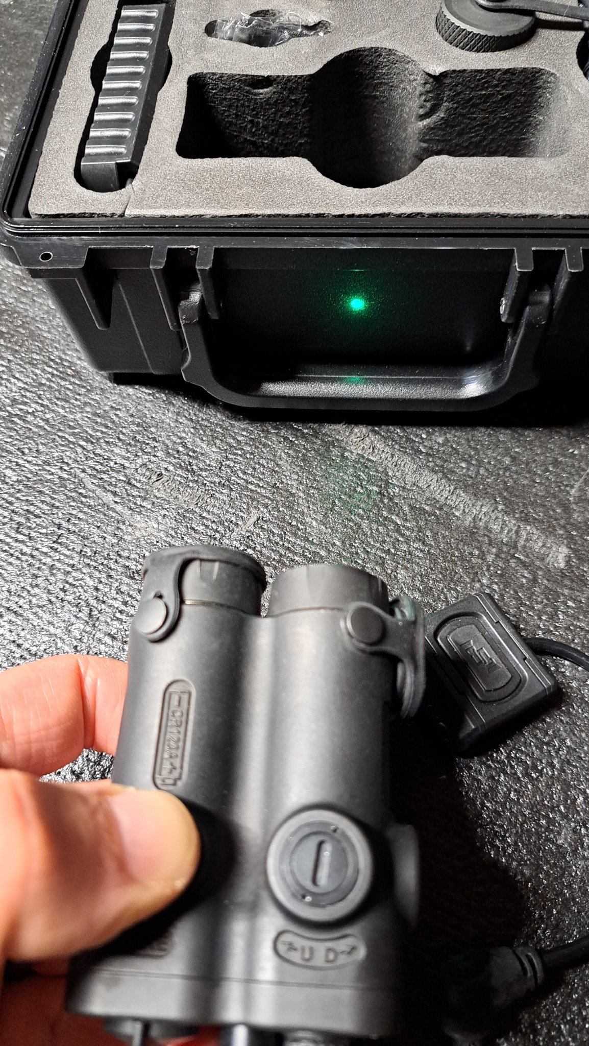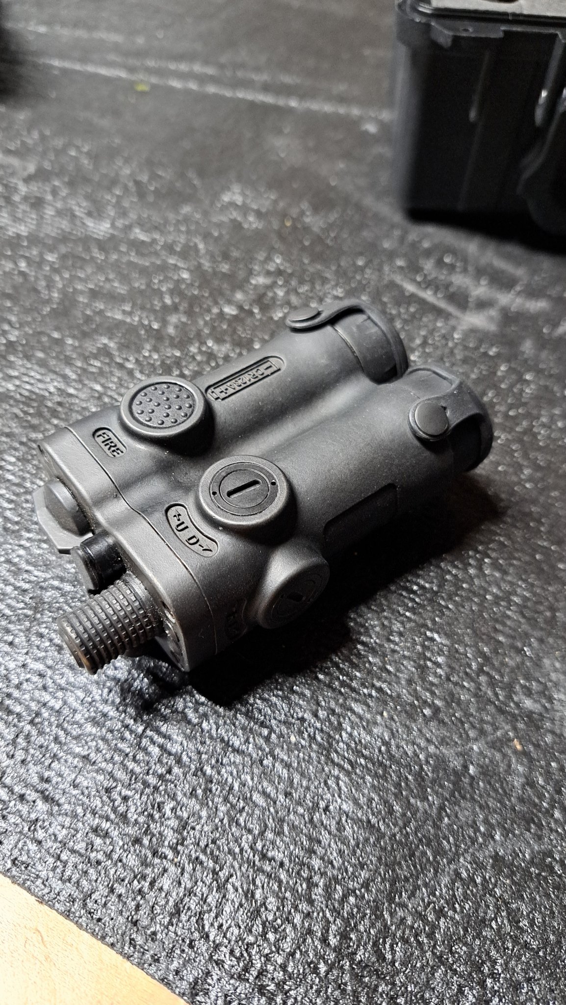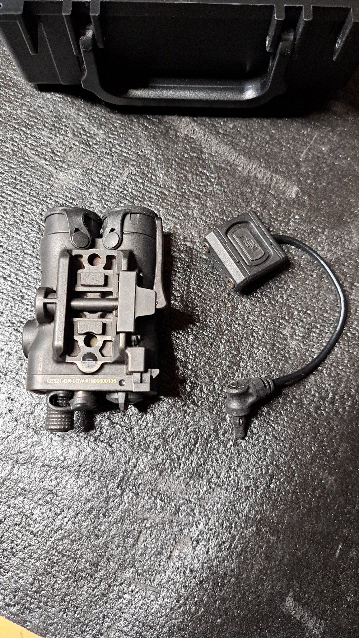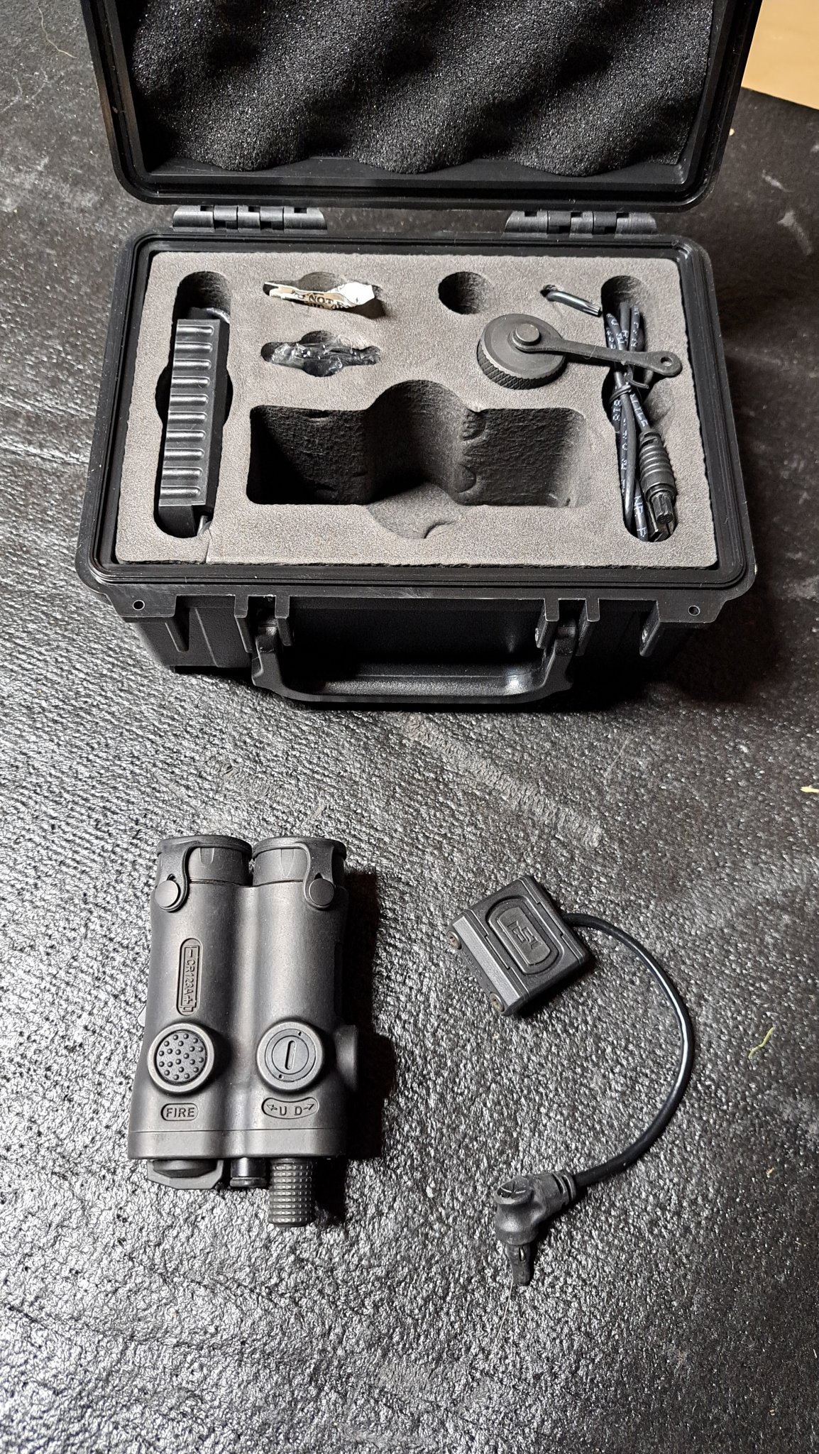 This is the titanium version, 4 in 1 aiming device. (Green vis laser, vis light ~300 lumens, ir laser, ir illuminator). Fully functioning in excellent shape - barely used. Comes with all factory components and a modlite mod button as well.