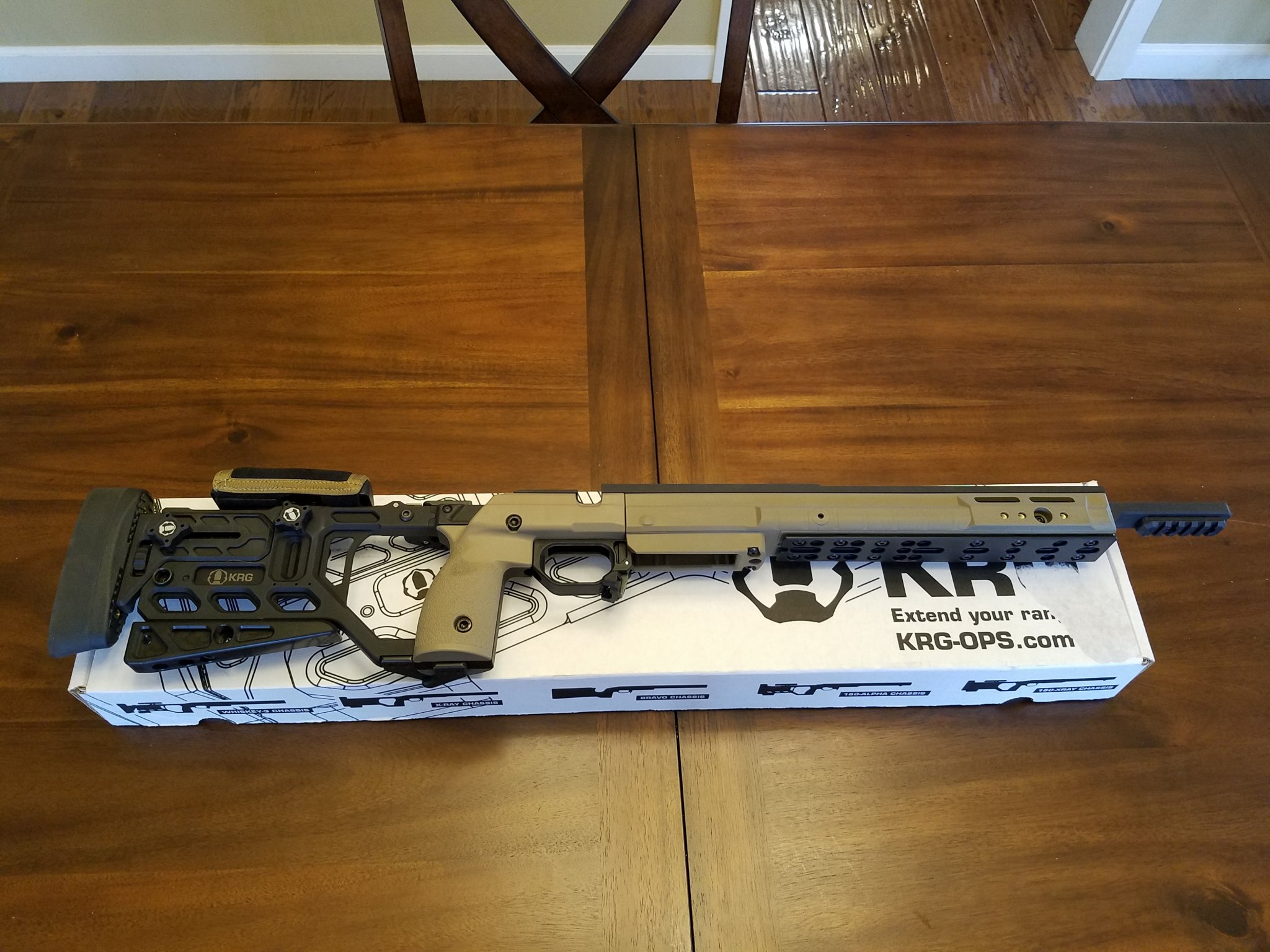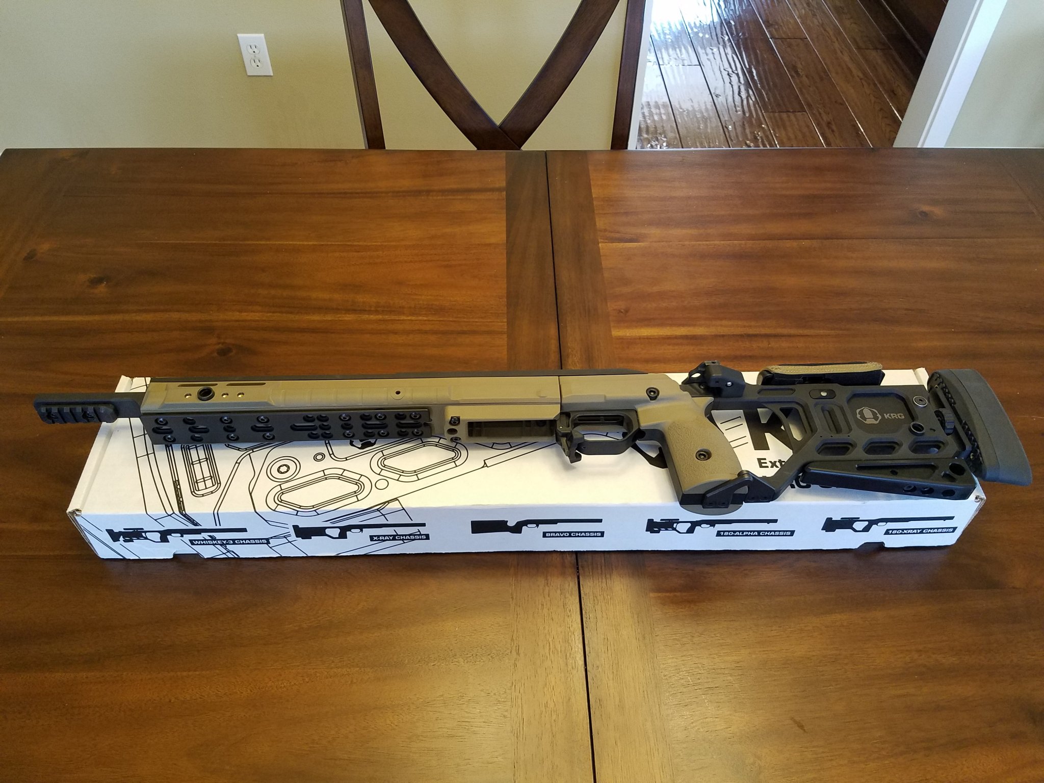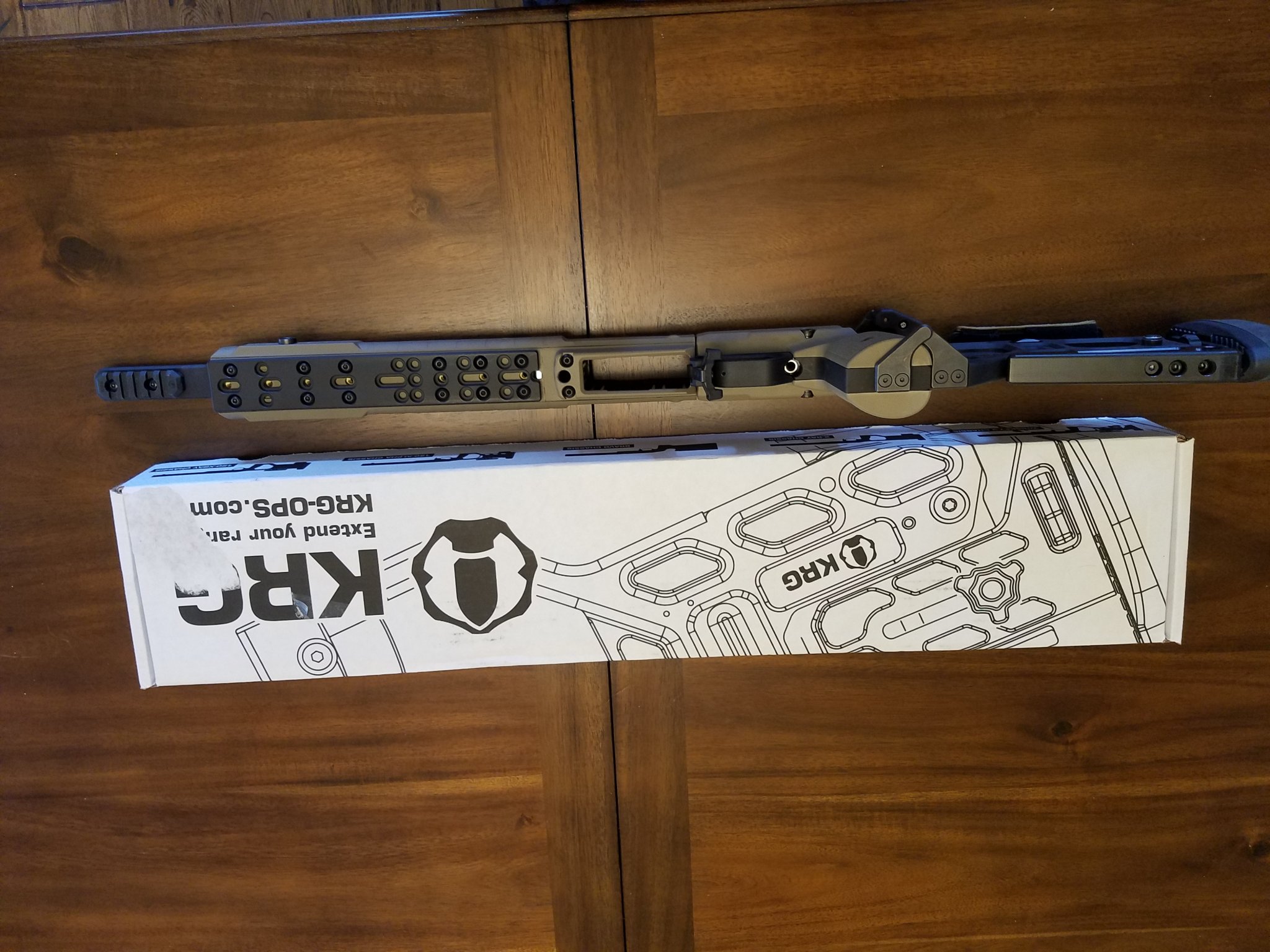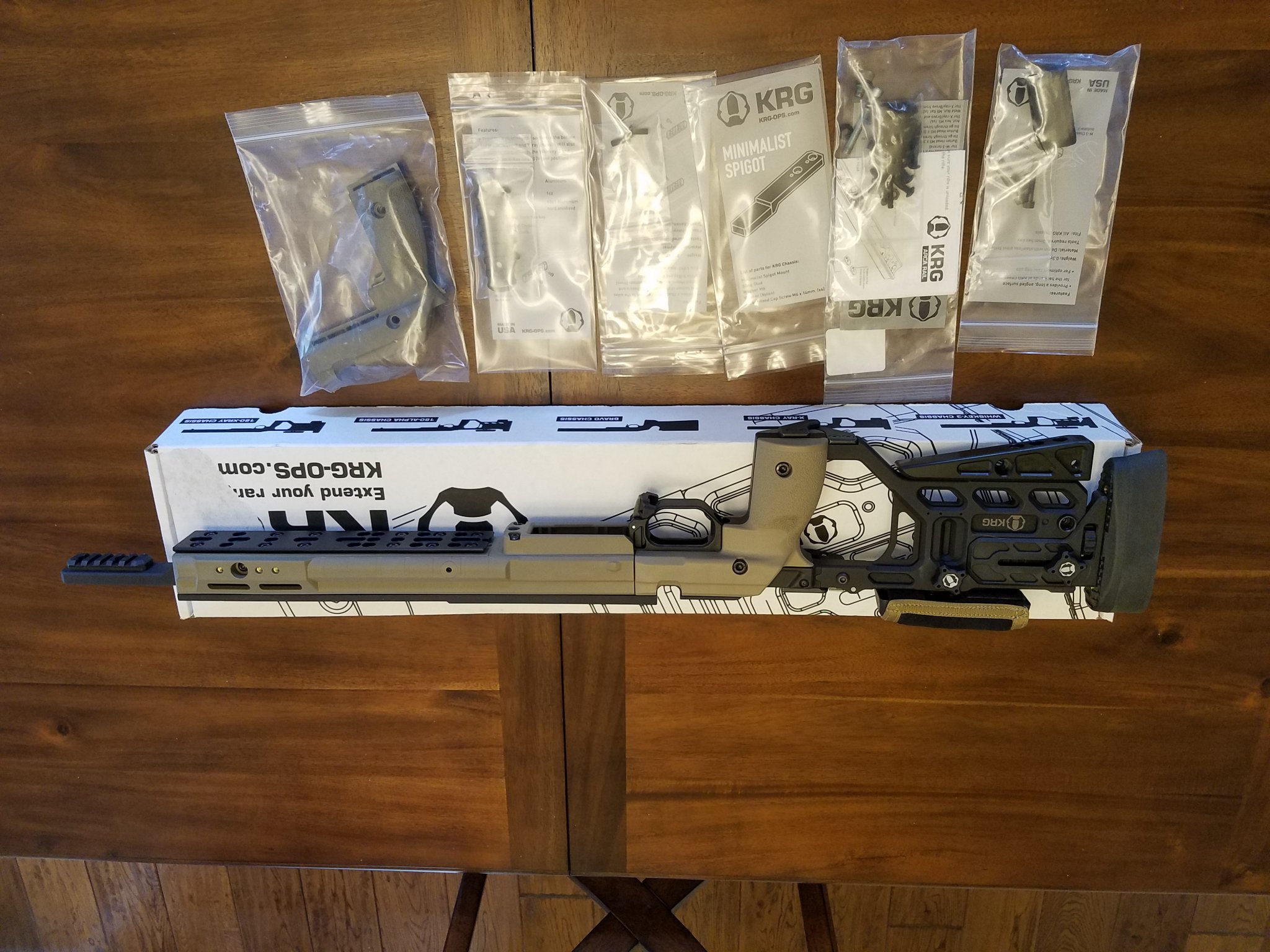 WTS: KRG Whiskey 3 Gen 6 Folder Tan, Remington Short Action. The stock is about six months old and was used for about 300 rounds. It's a nice stock but I opted for something different. It comes with a Arca rail, minimalist spigot mount, angled bag rider, and Wiebad cheek pad. All original fasteners, parts, accessories, instructions, and packaging are included. The only modification I made was a small hole in the trigger guard so a TT Diamond trigger can be adjusted without removing the action. You can see it in the last picture. Otherwise the stock is in excellent condition.