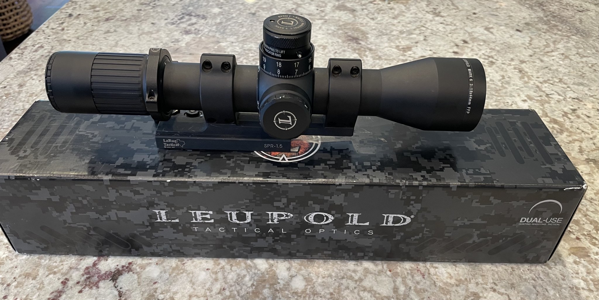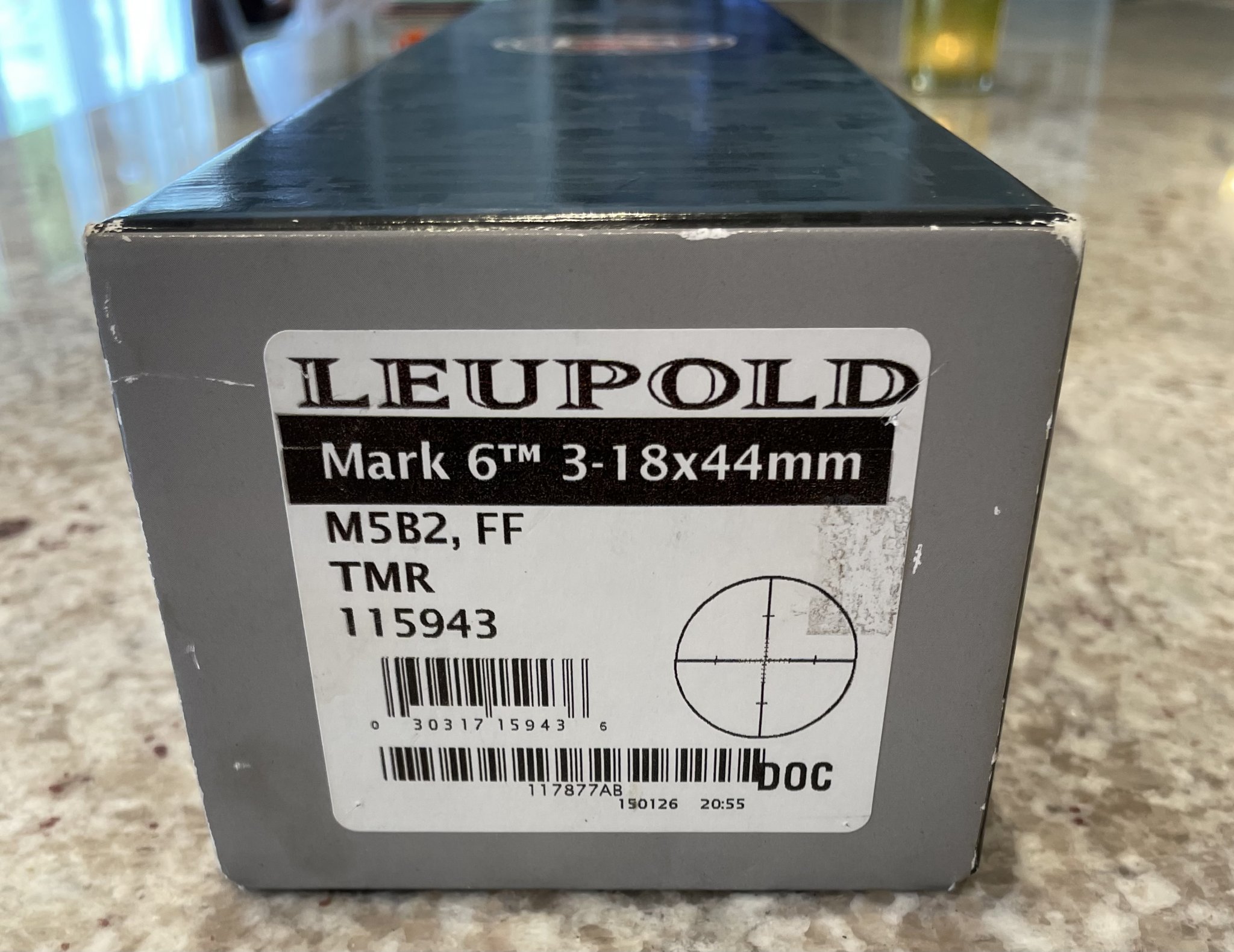 Looking to sell a lightly used Leupold Mark 6 3-18x44 with TMR reticle, first focal, non-illuminated, and M5B2 turret. Comes with scope caps and everything that was in the original box. Also added the Leupold Mark 6 throw lever.