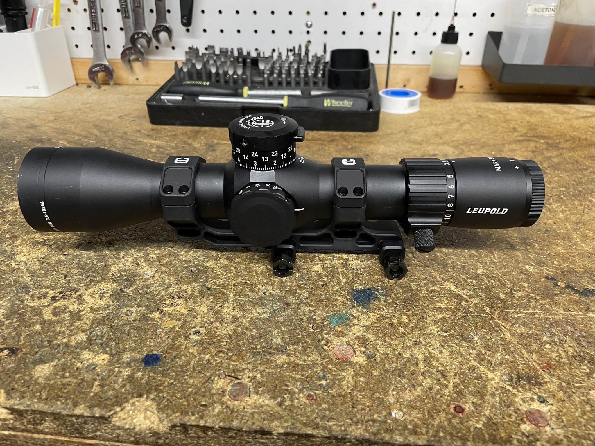Used Leupold Mk5 3.6-18 with TMR reticle. Mil/mil, FFP. Non-illuminated. Used, has some minor wear as pictured but overall great condition. Has some dust on the lenses but no scratches. Includes 35mm Badger C1 mount. Not looking to separate. I do not have the box, sunshade, flip caps, or manual. What you see is what you get.