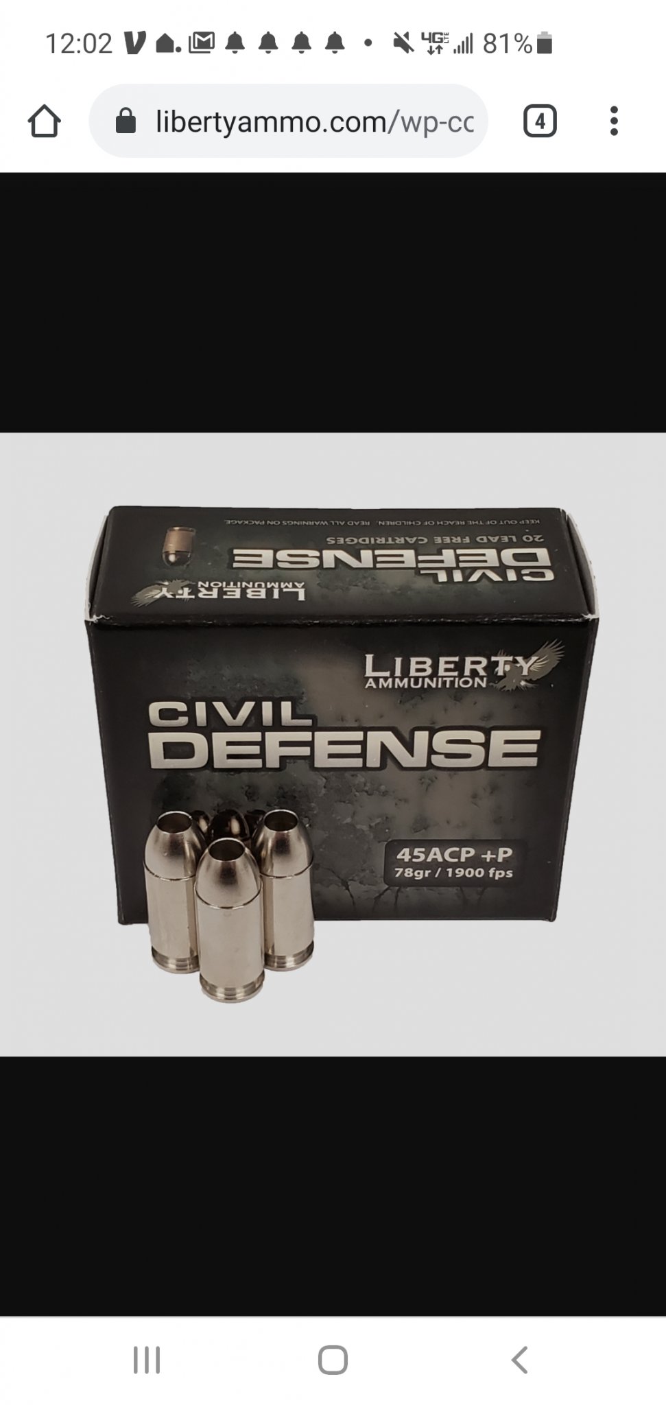 5 boxes of liberty Ammo +P 78gr 45 ACP - $220 shipped