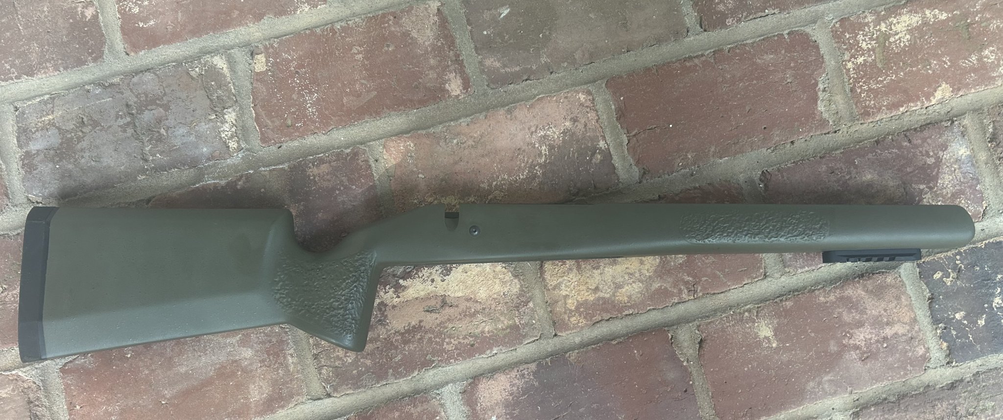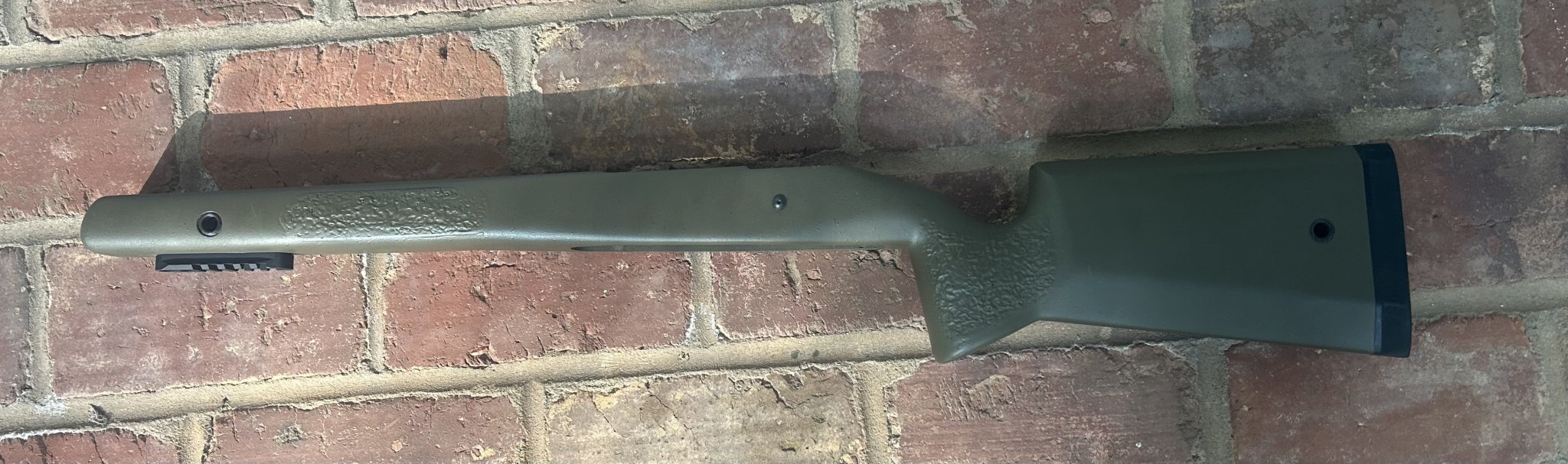 Inletted for Tikka Ctr bottom metal, factory Tikka bottom metal and mags also work fine
