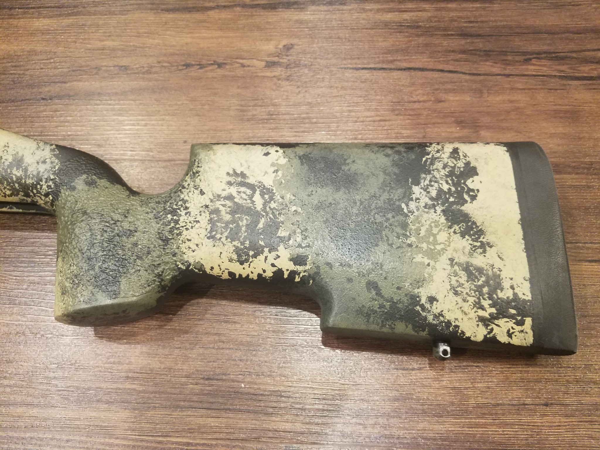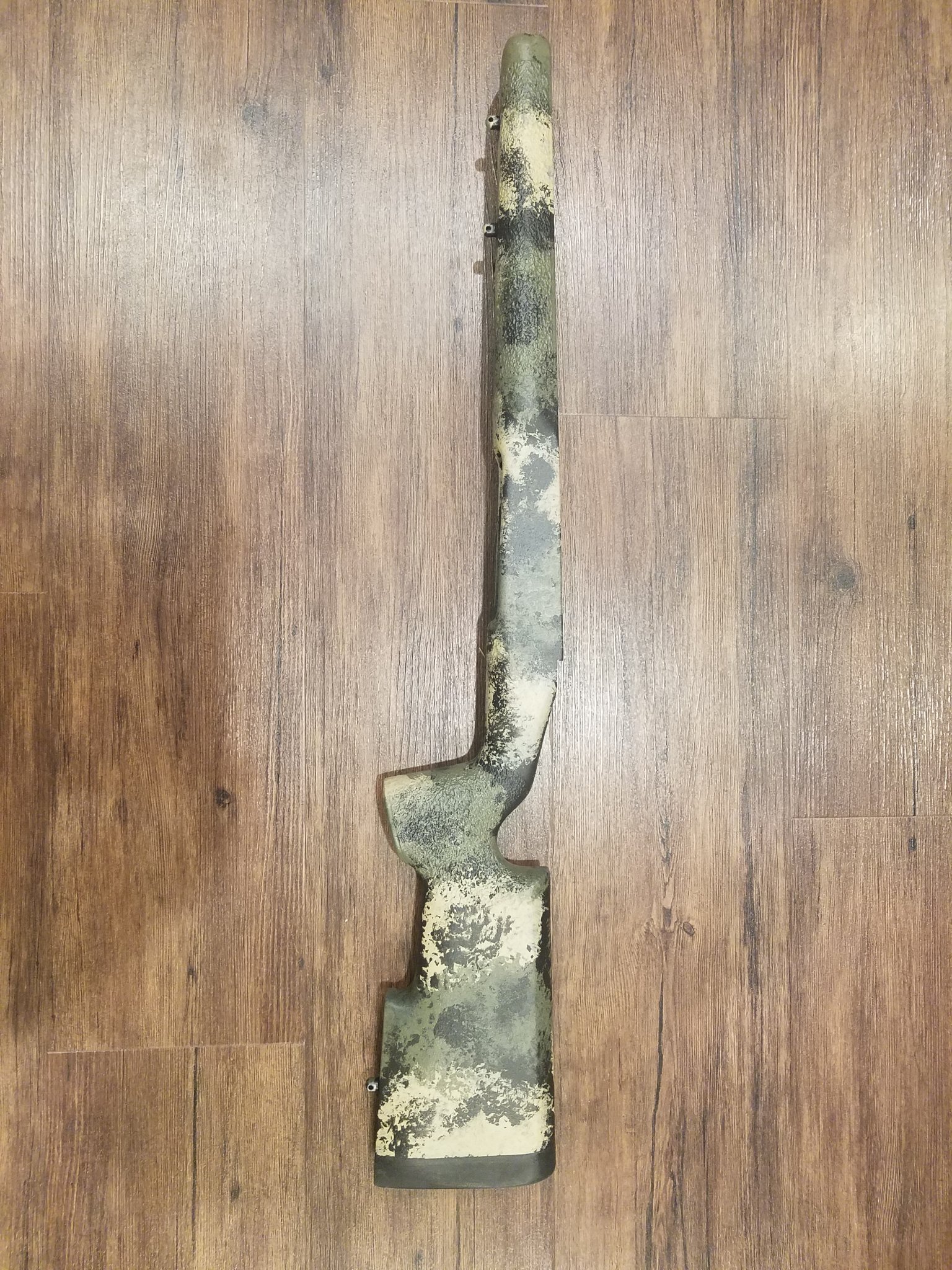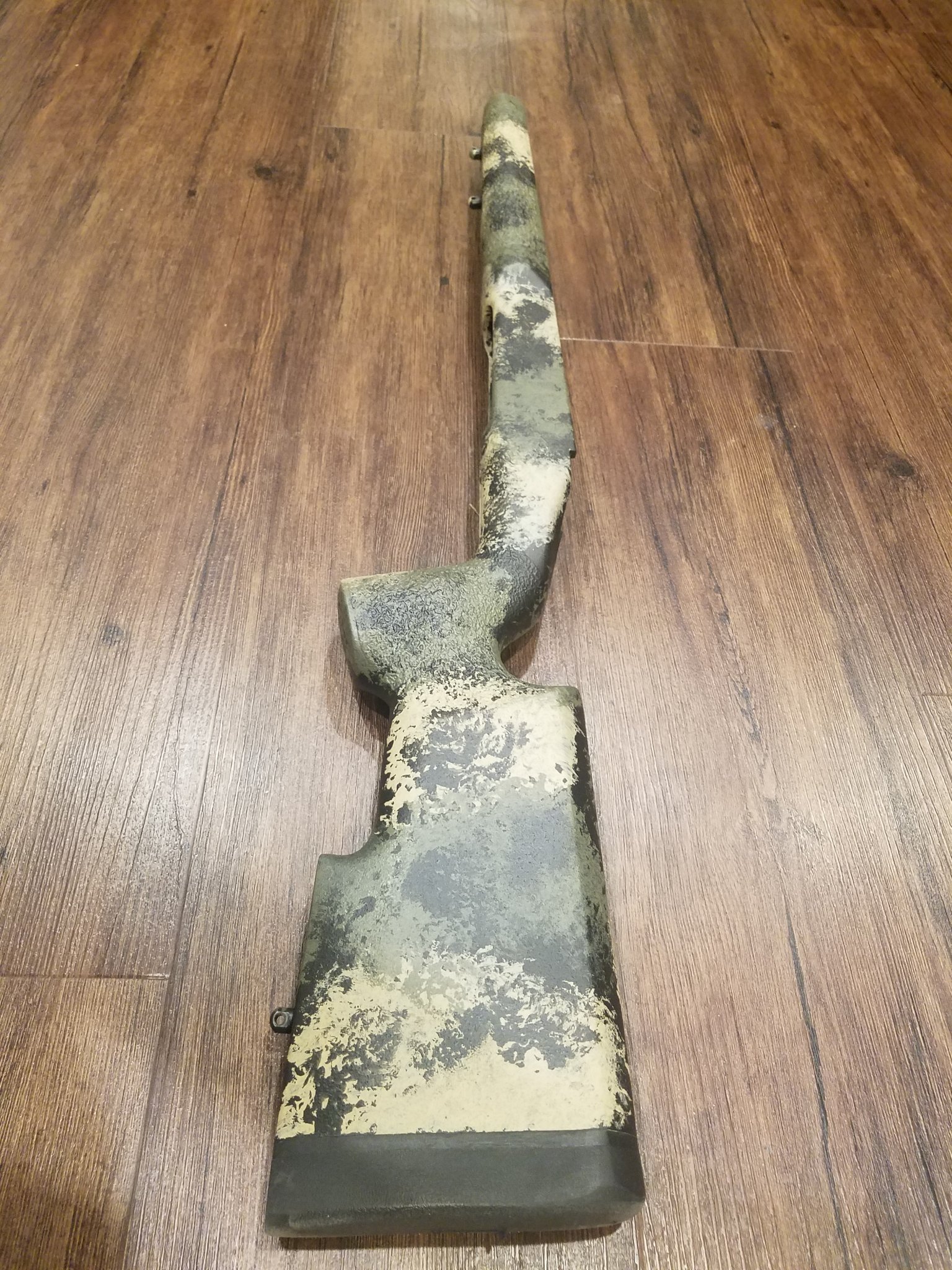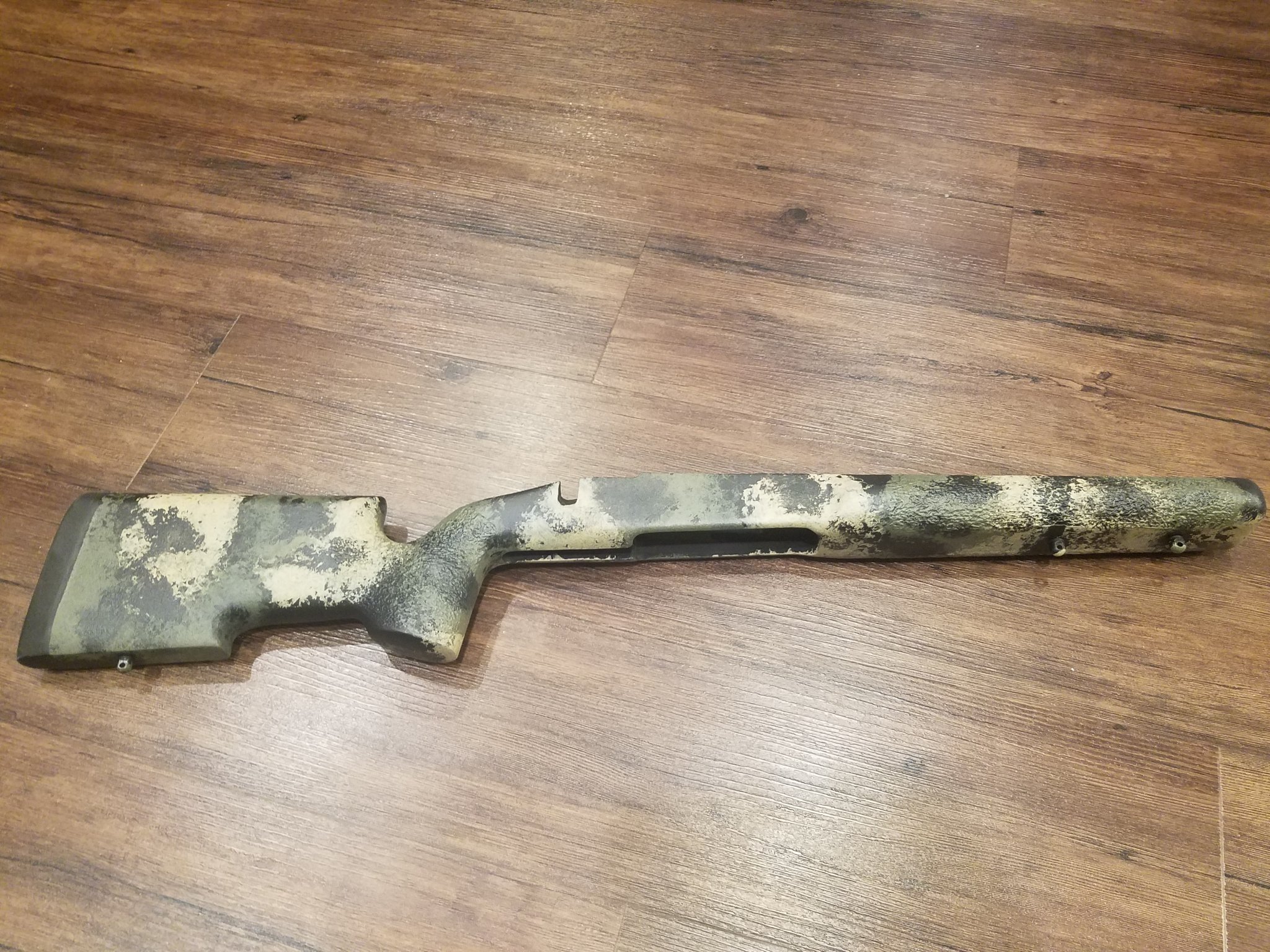 I took it off my Savage 10 McMillan, so it's a short action, 4.4 bolt spacing, top bolt release, inlet for factory bottom metal and dbm. It is bedded and free floats the barrel. I painted it a manners gap camo scheme and it turned out well.