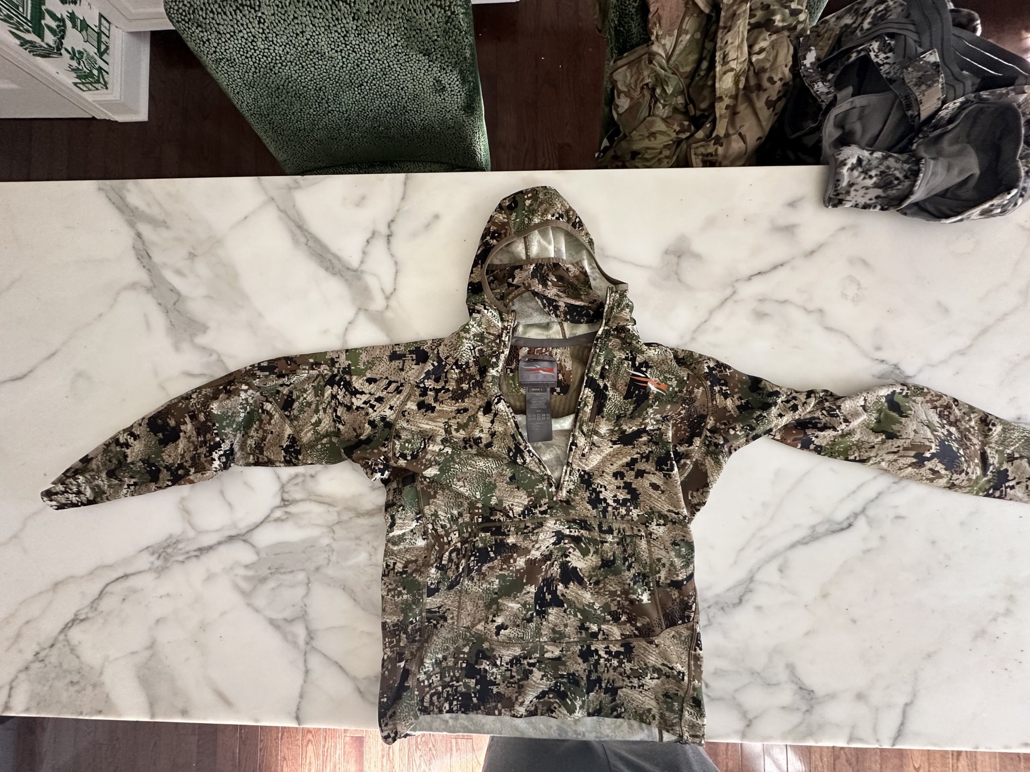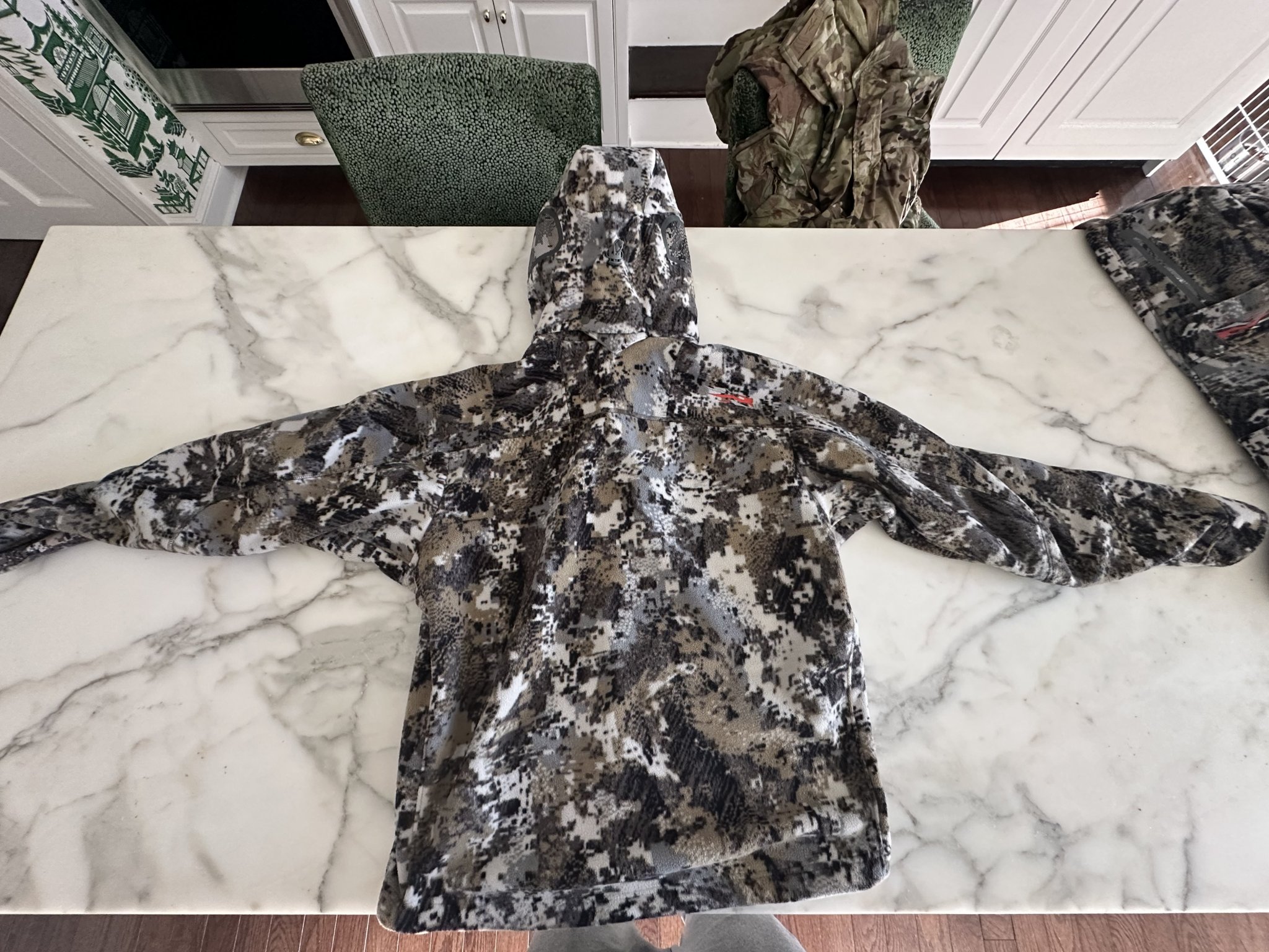 Sitka Apex Hoodie (Subalpine camo, includes removable elbow pads) — $100