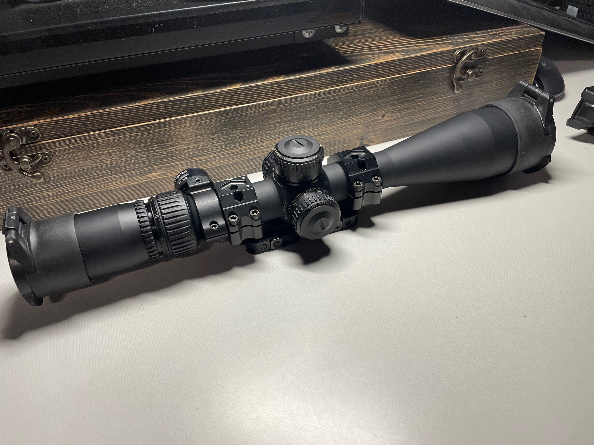 1) Vortex AMG 6-24x50. Excellent condition, still has the factory oil on the turrets! The only thing I could find were two small wear spots on the windage turret cap. No box (didn't survive the move), but I have the defender caps along with an extra rear defender scope cap. Currently sitting in the MPA BA mount. $1600 $1575 $1550 shipped/insured for just the scope.