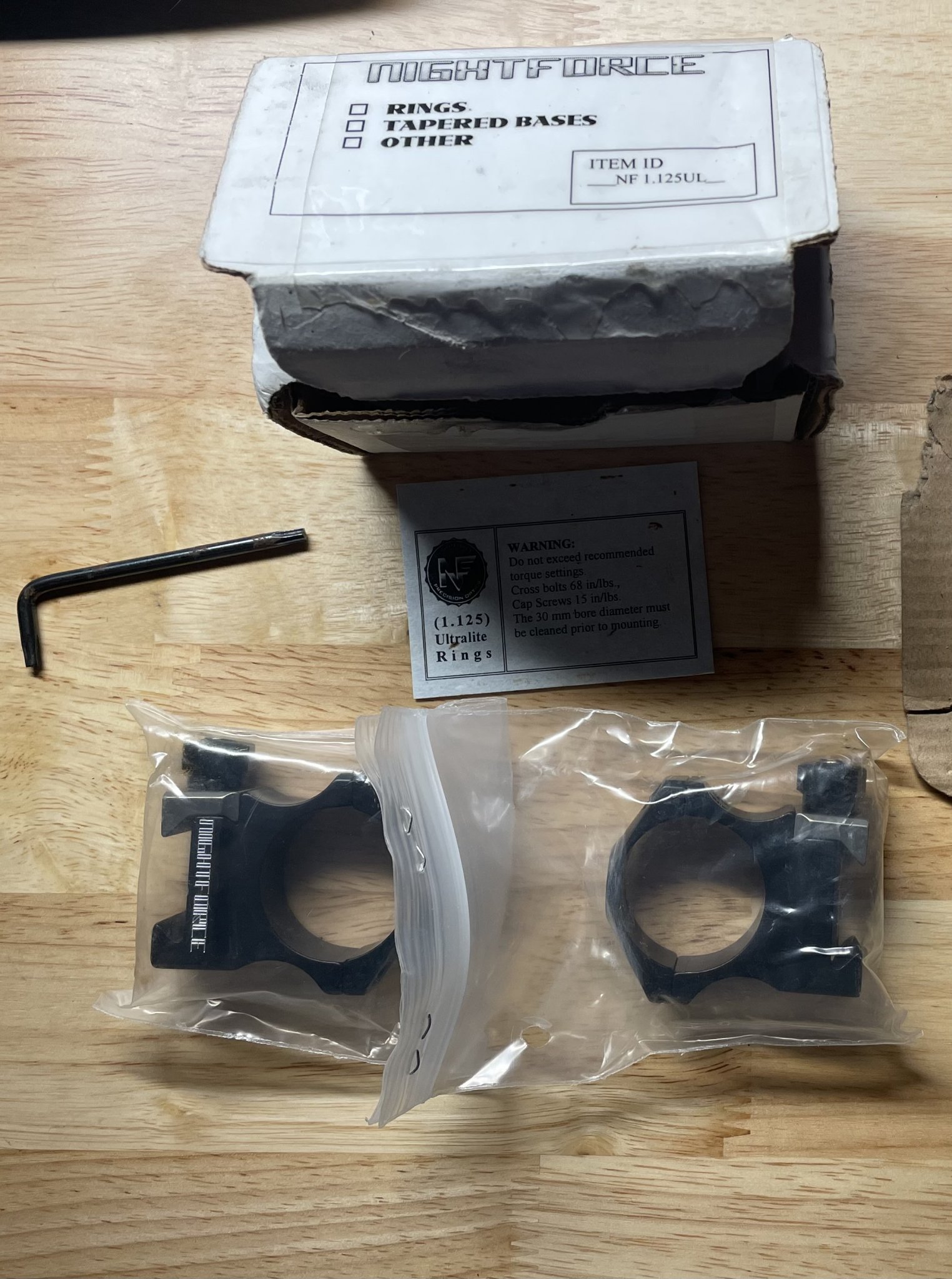 4) Nightforce Ultralite Rings (30mm, 1.125" height). Also got these on a trade, never used. $135 shipped/insured. SOLD