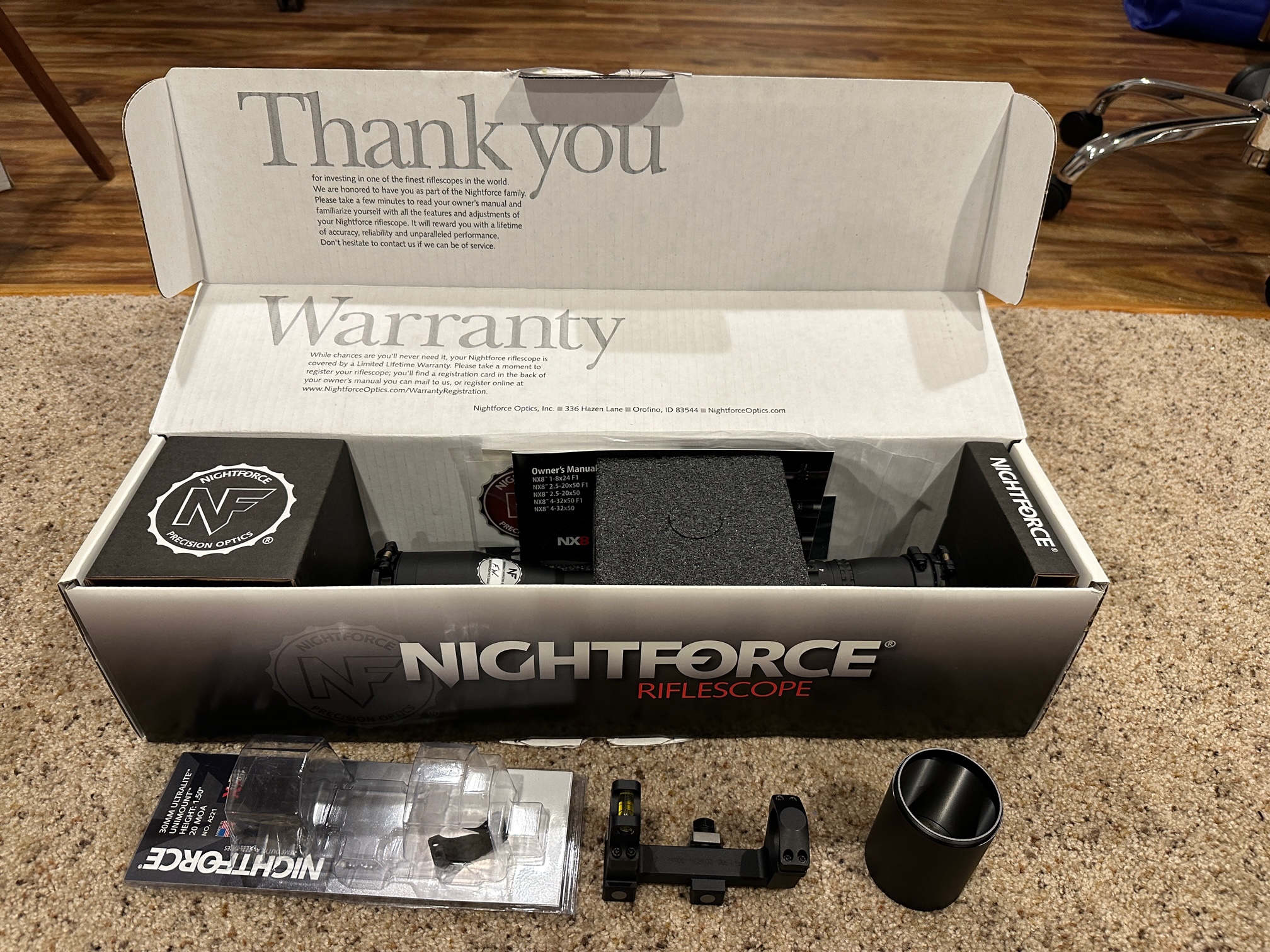 Nightforce NX8 4-32x50 F1 MOAR (C624) (Only mounted with manufacturer's specs and shot 40 rounds through rifle with mounted): $2150