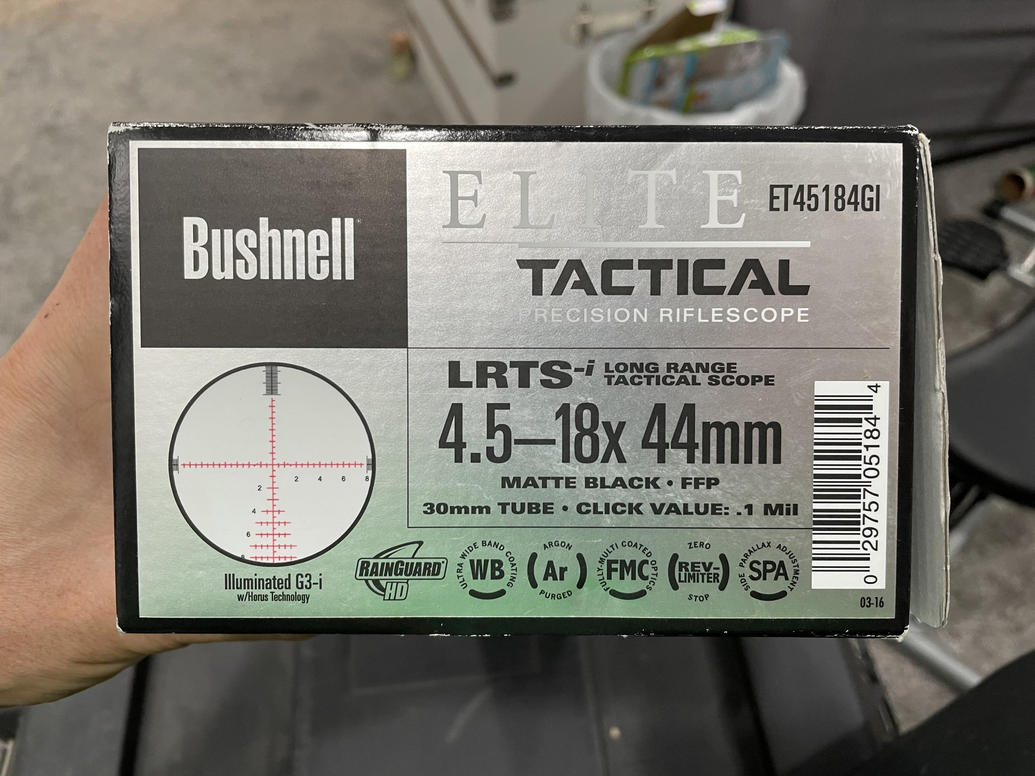 The famous and now discontinued Bushnell LRTS-i 4.5-18 (illuminated). Bullet proof tracking and killer glass. Brand new. Bought a couple, never mounted this one NIB. Cleaning out the safe. $1K TYD. PM if interested.