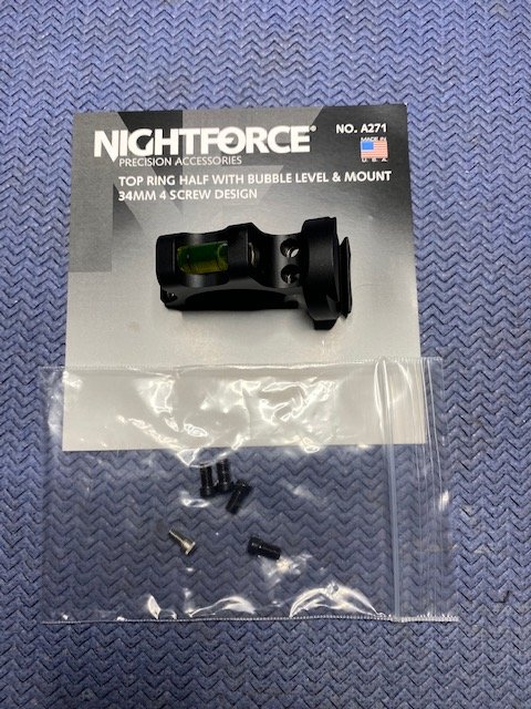 Nightforce 34MM Ring Cap Bubble Level w/ADI Mount (A271) for sale, $85 $50. Will ship for free Priority Mail within CONUS only. Note, this DOES NOT include the Angle Cosine Indicator (ADI) these can be purchased from Sniper Tools Design Co., or other retailers. This was opened but was never mounted.