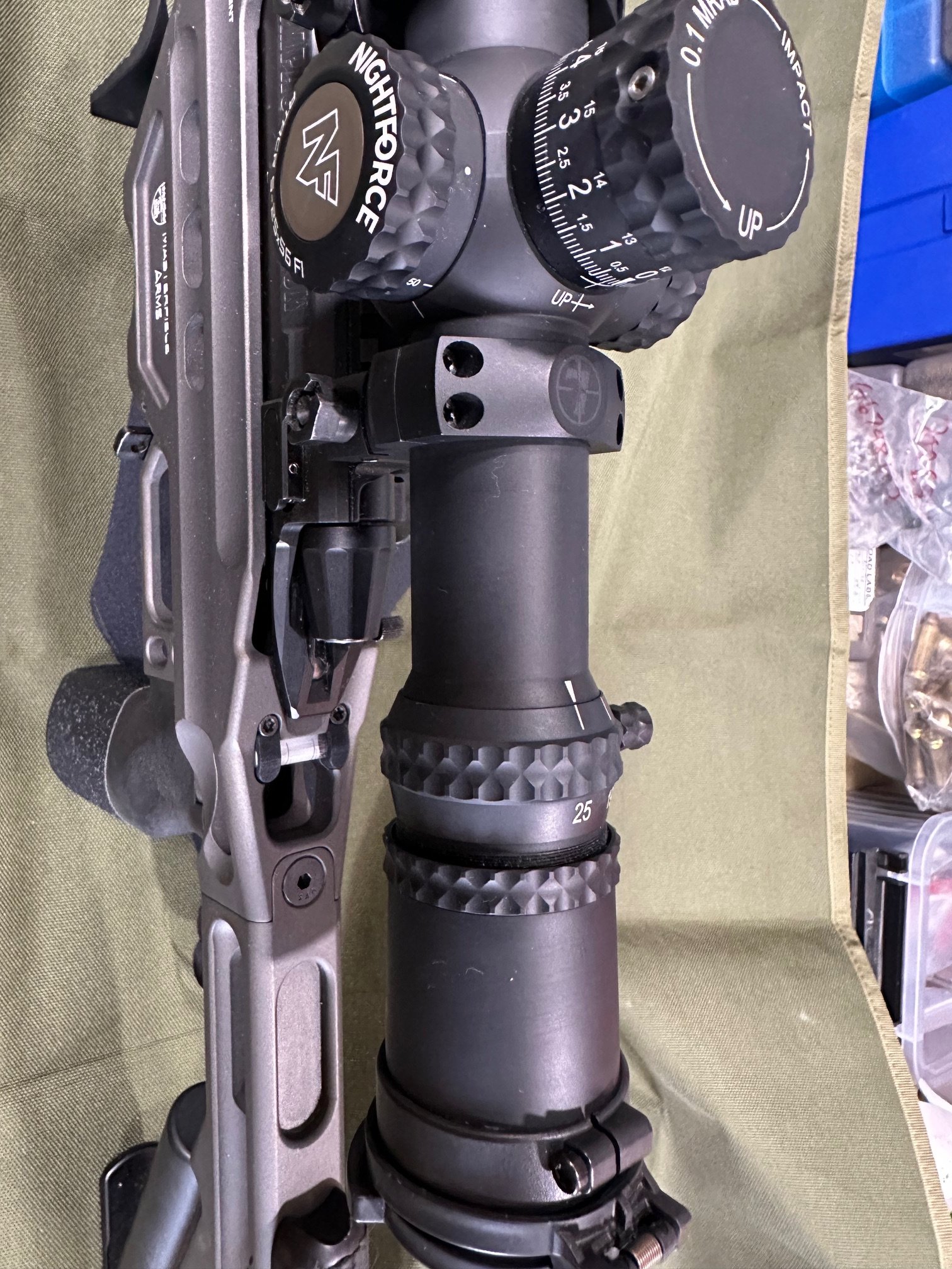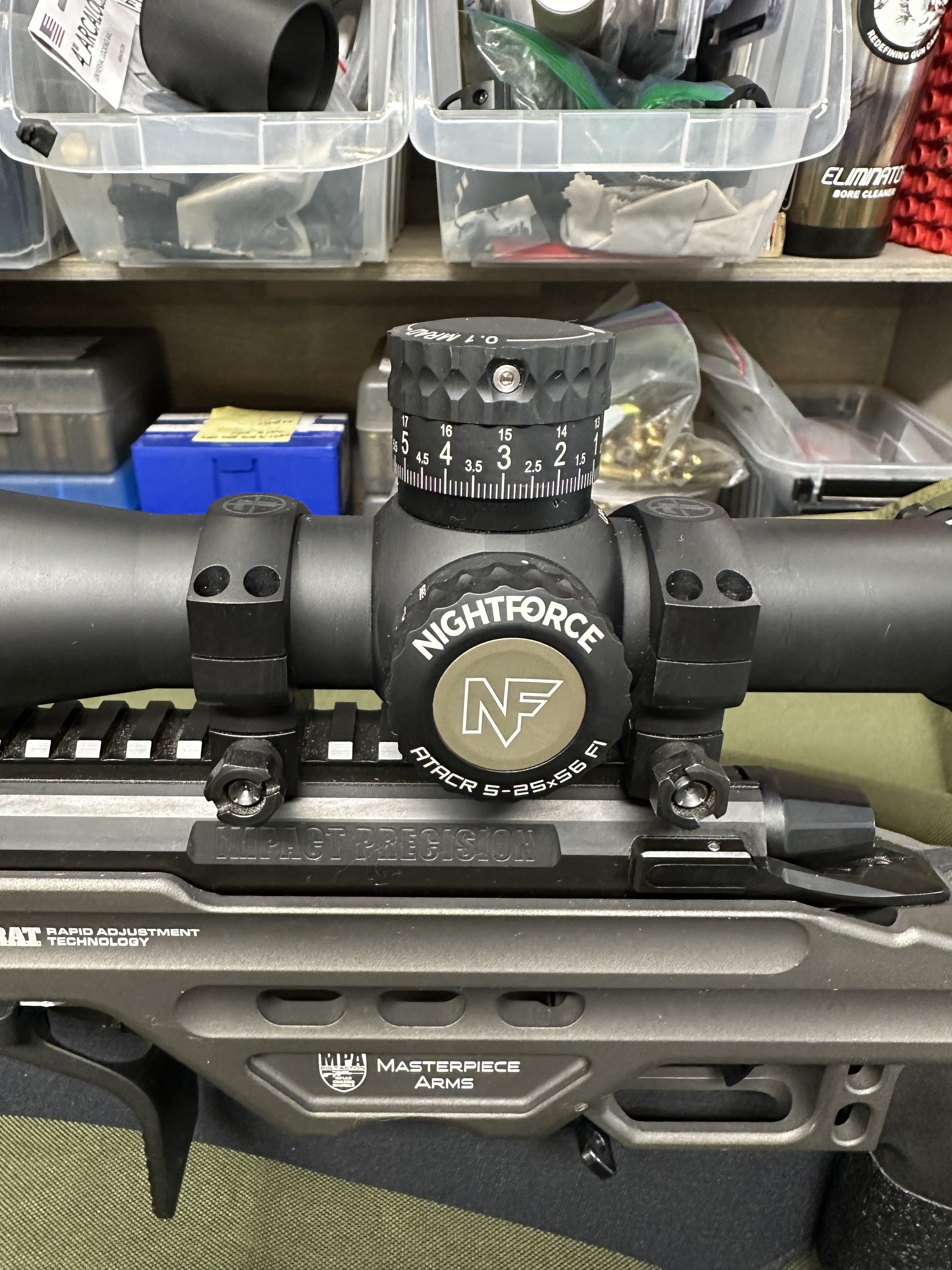 NIghtforce ATACR 5-25 X 56 F1 C616 Mil XT for sale - $2100 shipped. Lightly used (1 year) at my local long range. Perfect shape, no scratches always in scope cover and case or safe. She's a beaut but won't help for a dabble in production class in a local PRS match, if I can even get the old body working for that even :LOL:
