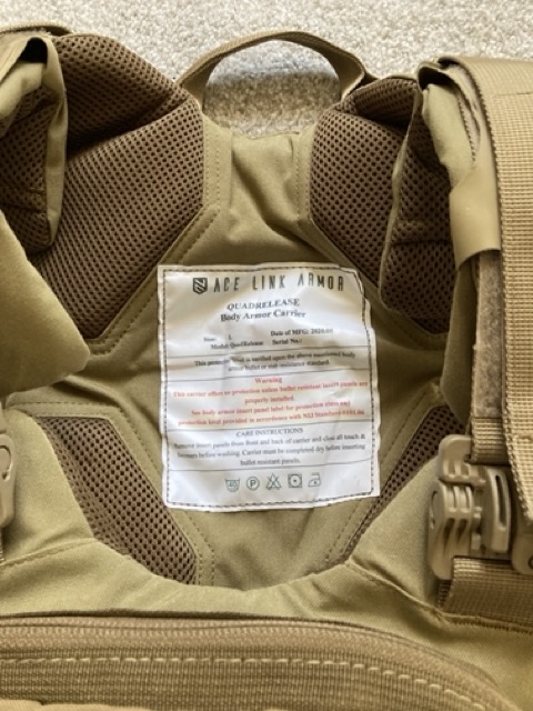 I'm looking to sell my Ace Link Armor Quad-Release plate carrier (size Large) with Hoplite Arms 26135 swimmer cut plates. Plates were purchased in 2019, iirc.