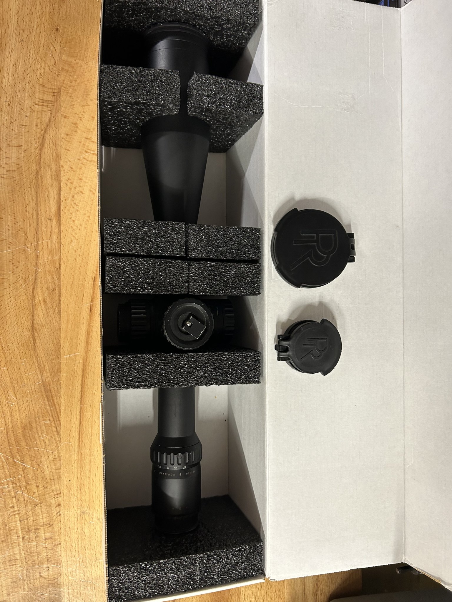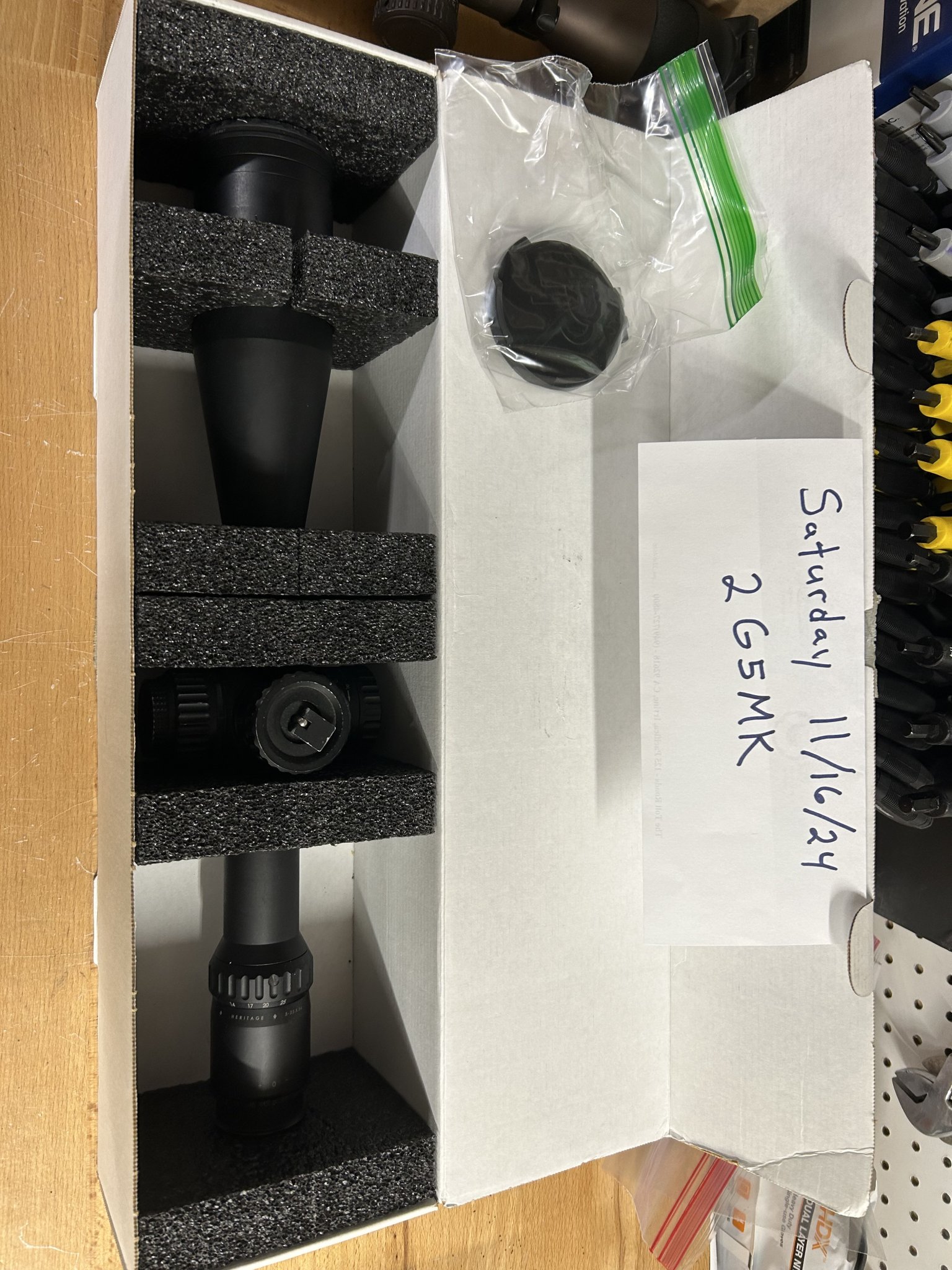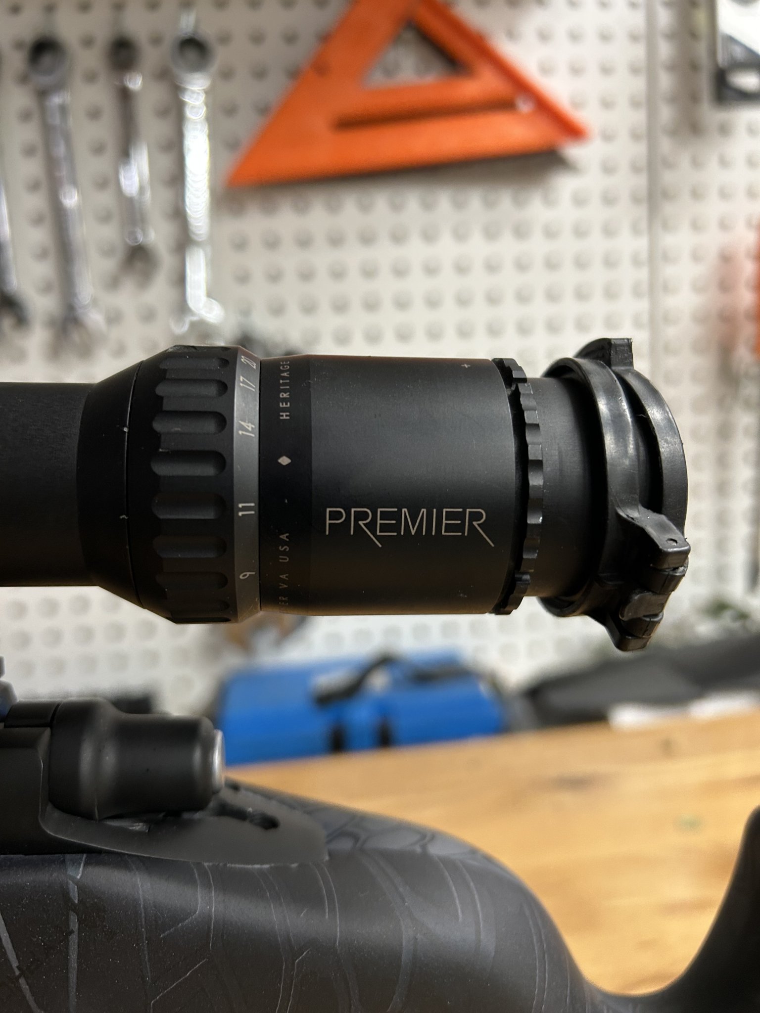 Nice condition Premier Heritage 5-25x56. G2B reticle mil/mil. Comes with pictured PR tenebrax lens covers. No lense scratches. It is in good shape. There are scope ring marks on the bottom . I just added photos to show them. I also included a box test I shot on 10/28/24. Rings not included 1500.00