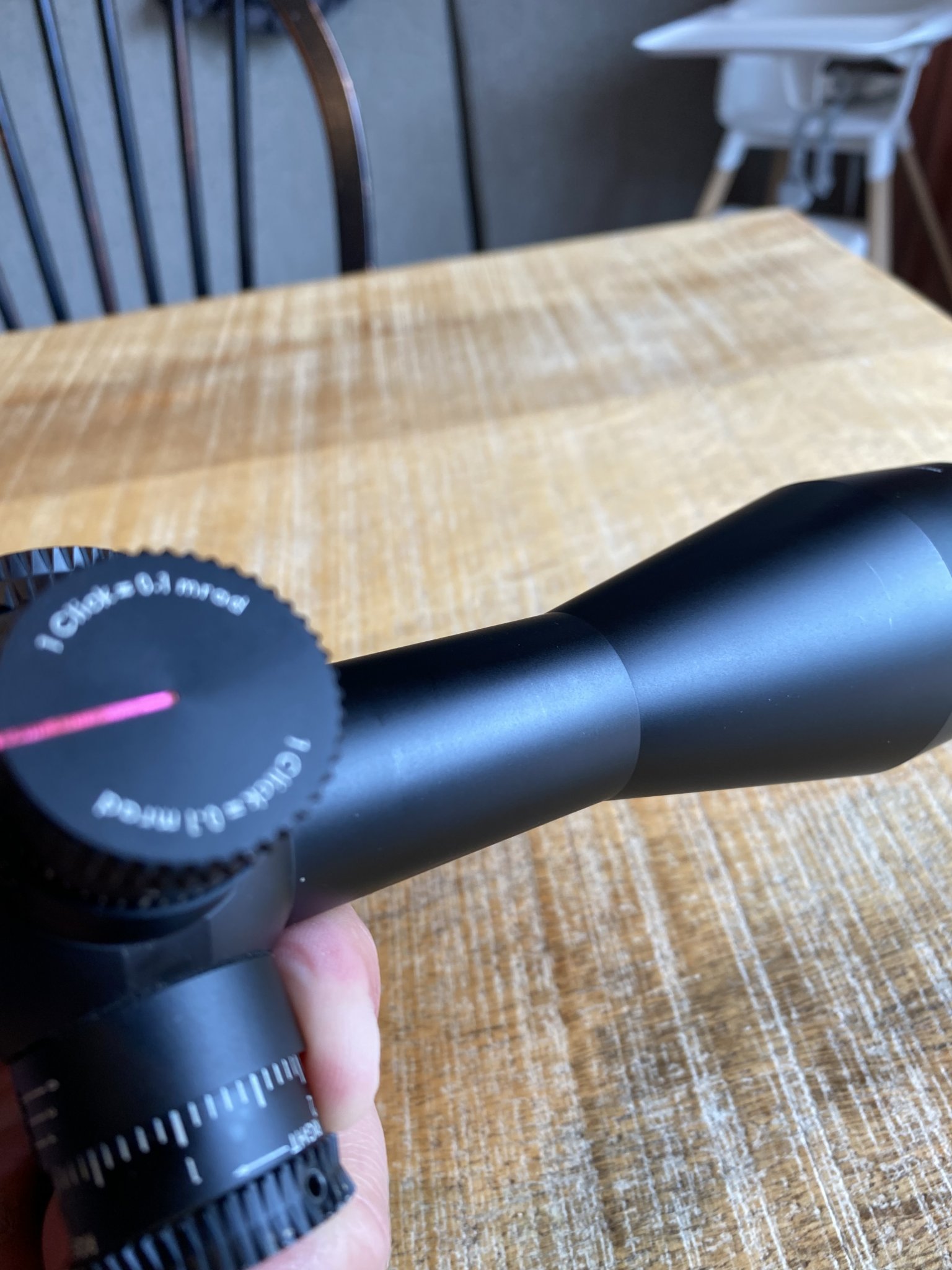 There are signs of wear on the body. It’s been used, but not abused. Light ring marks, but not scratches. Glass is in good but not perfect condition. Will come with butler creek flip caps on both the ocular and objective ends. I’ll also send the zero stop shims with it for you to install after zeroing.