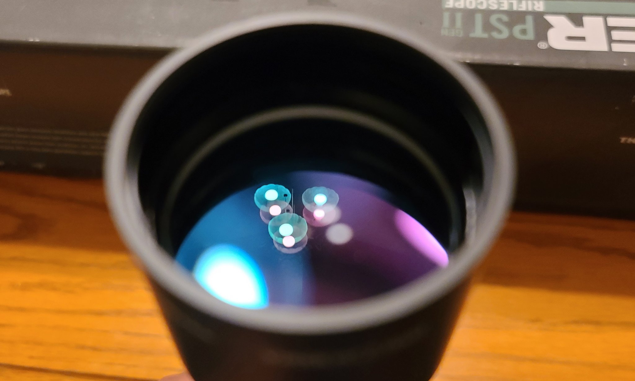 There is a small rub mark on the tube but other than that the scope is good elsewhere cosmetically. Glass is clean and turrets function as should. Original box and items included.