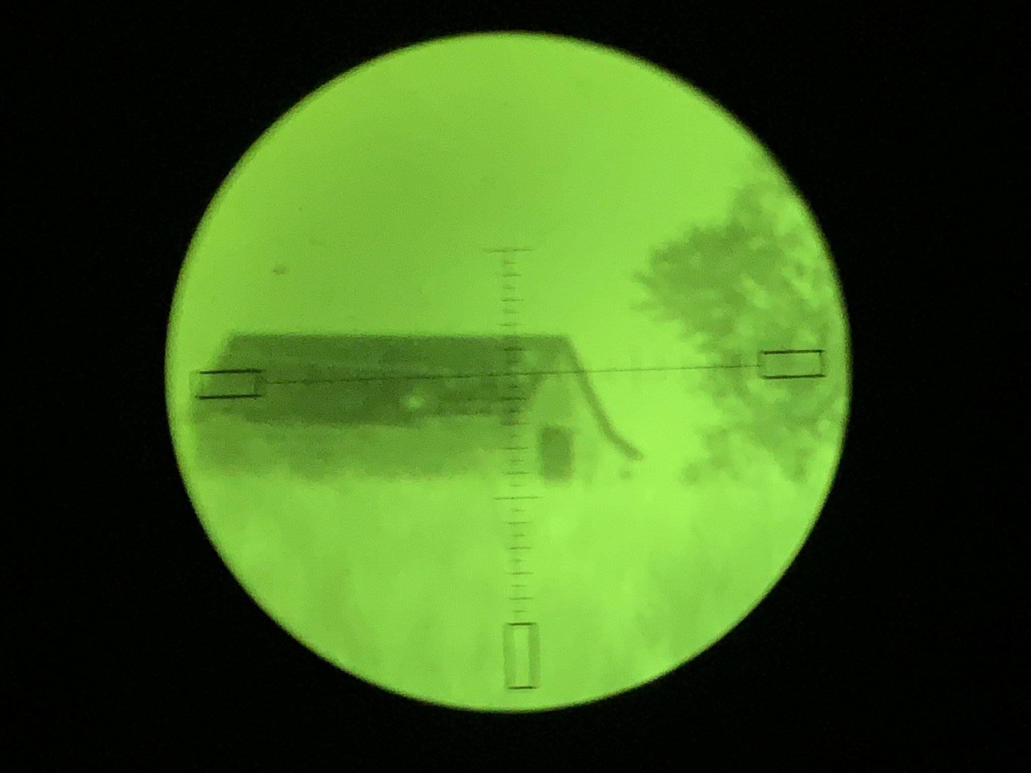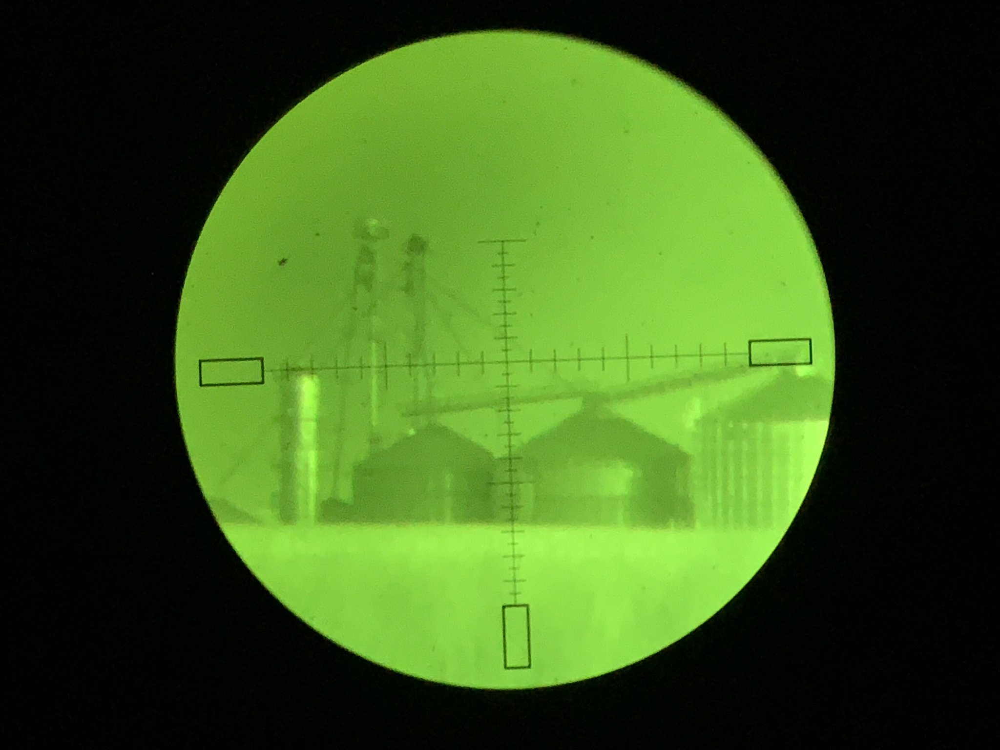 I have PVS-27 clip on night vision up for grabs. I am the original owner was new when purchased has very little run time comes with every thing it came with from the factory only selling due to health issues and can’t get out and use it it’s just collecting dust. It has some peppering that really isn’t that noticeable in use. Pictures doesn’t do it justice phone doesn’t want to focus on it very well. The pictures are at 10x on my Nightforce scope. It is very clear in person. This is pretty much top of the line in affordable clip on’s. Barn is at 600 yards grain bins are at over 1/2 mile. Must be a US citizen no exceptions USPS money order or cashiers check held until it clears my bank or FTF. $4500.00 I will take it posted here overrides any other communication. SOLD