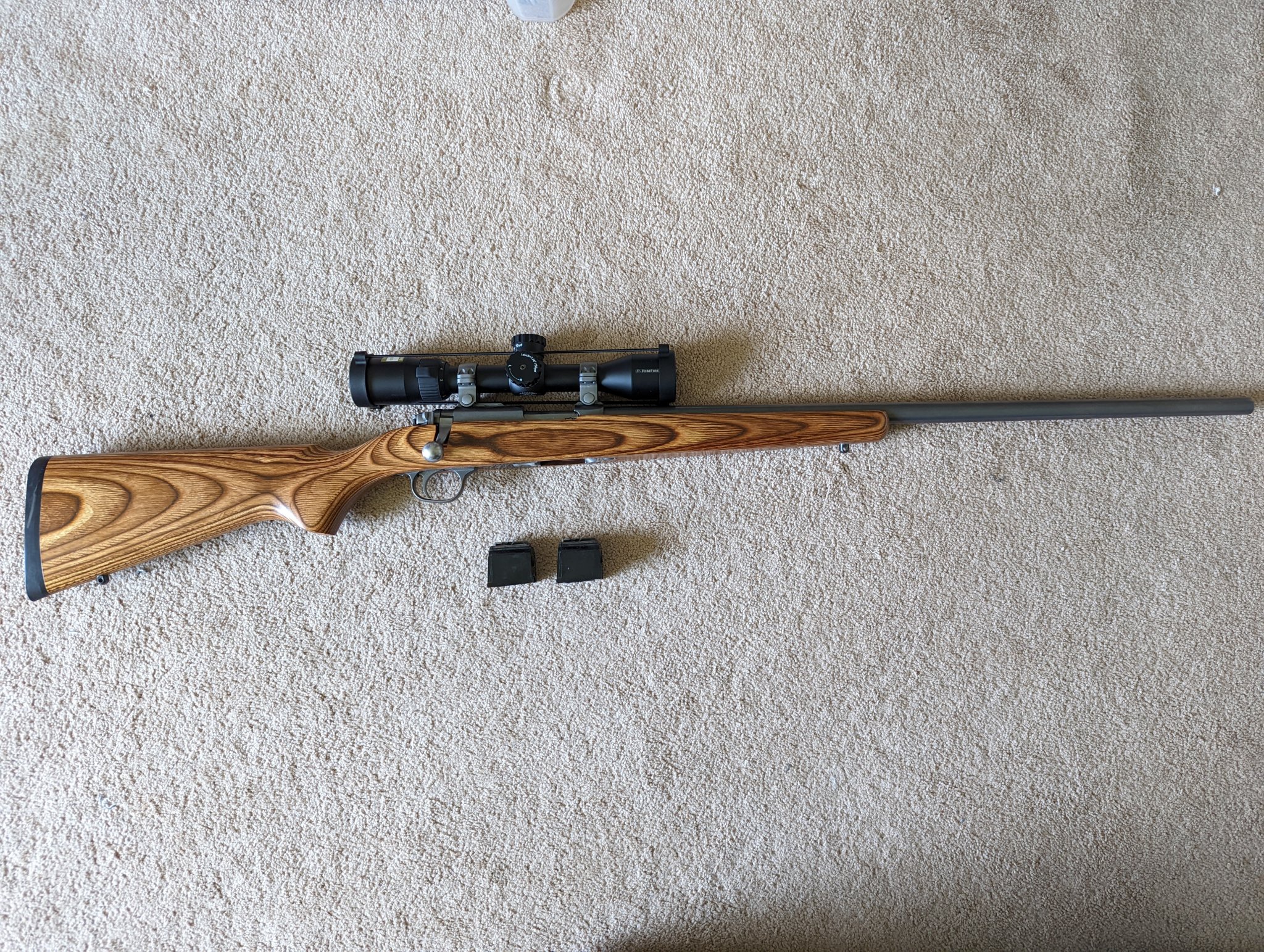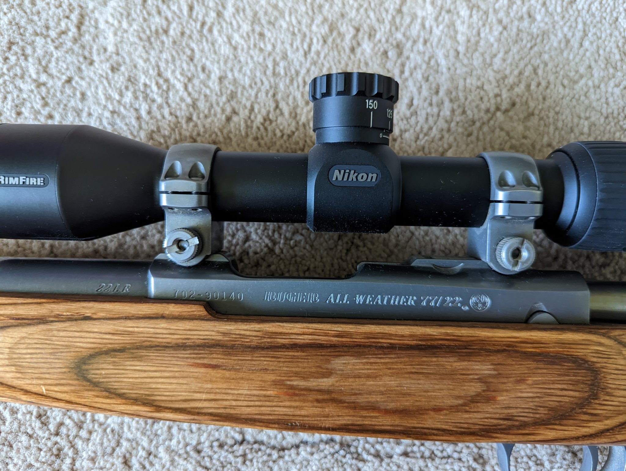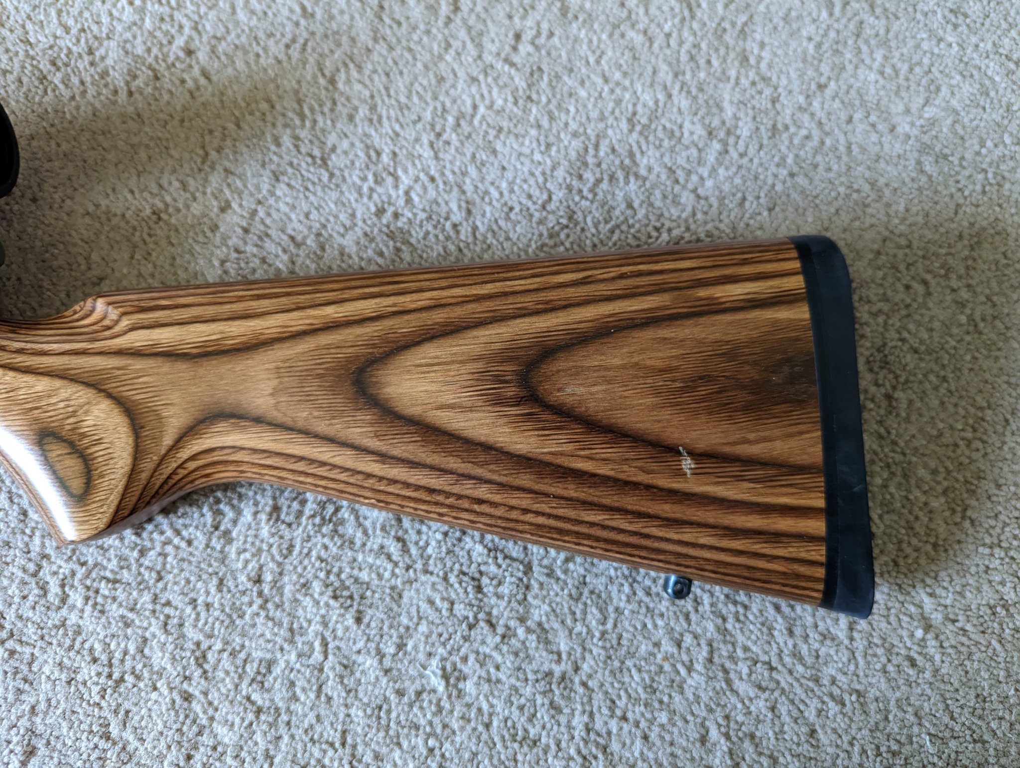 Ruger 77/22 bolt action with laminated wood stock, 24" barrel in all weather stainless. Have 2 77/22 rotary magazines that sit flush with bottom of rifle. Couple dents/scratches from hunting use. Selling with scope and rings at no additional cost. Will meet for sale or ship to FFL, currently in MN but will be in Kansas early April.