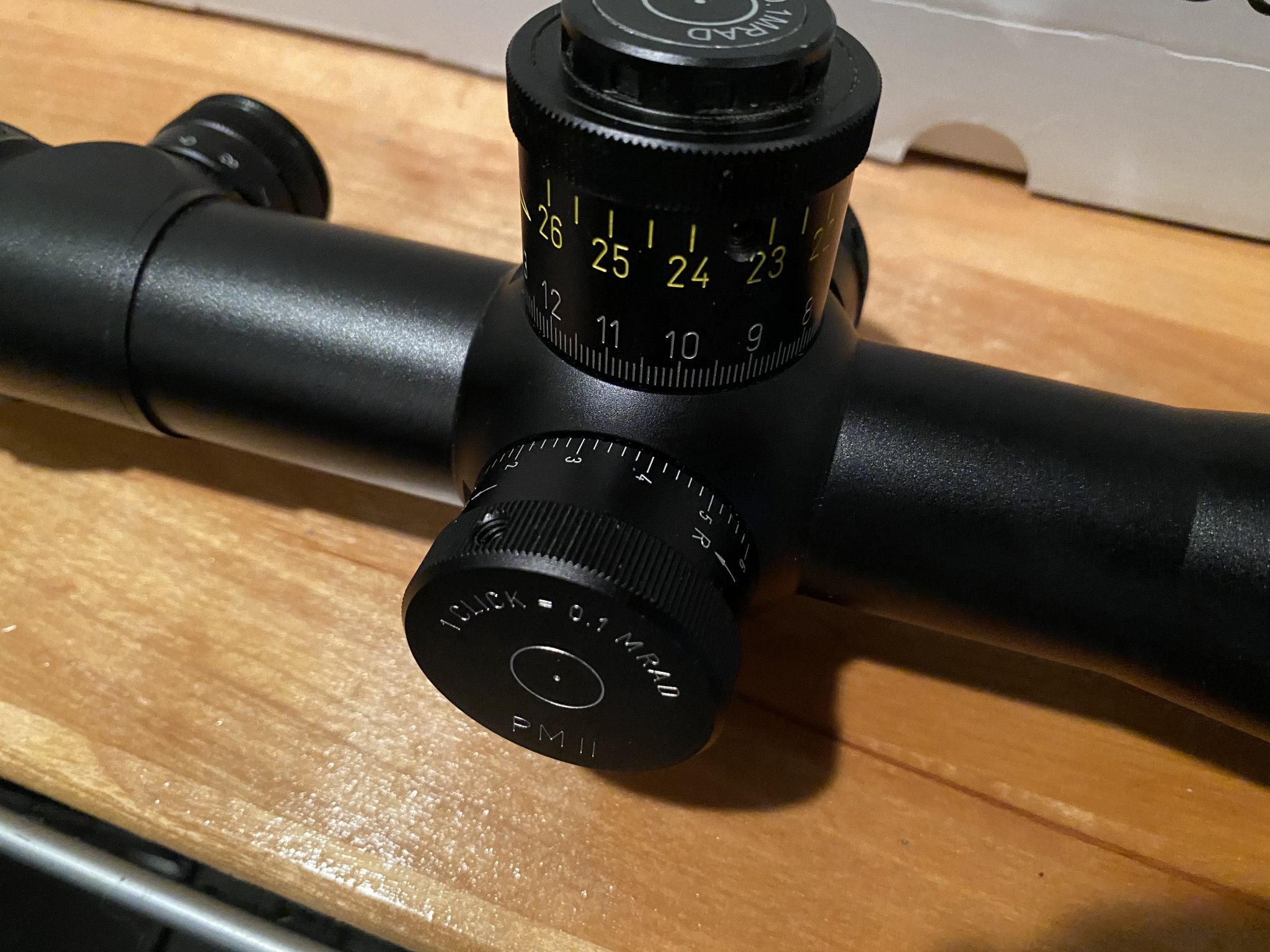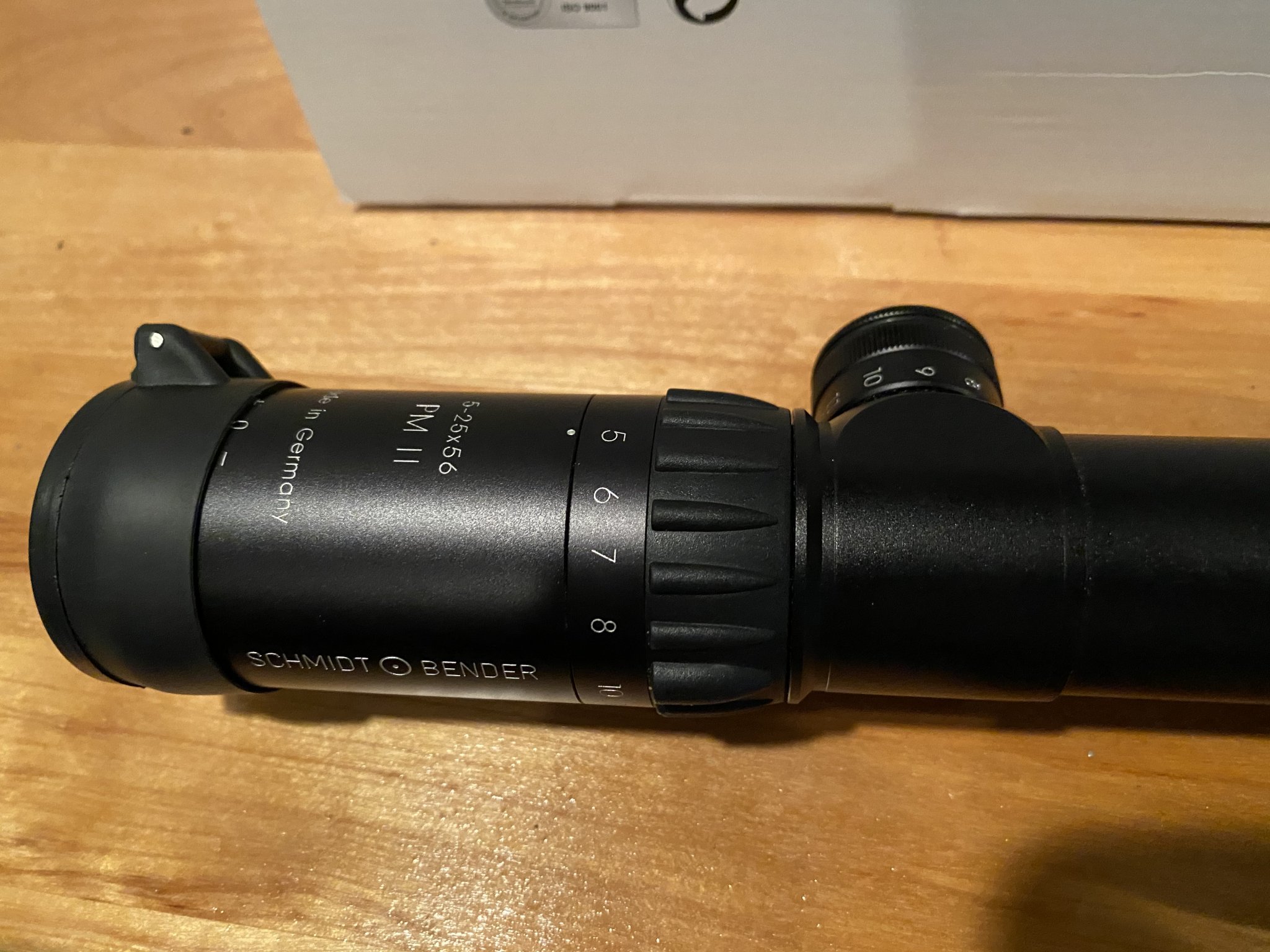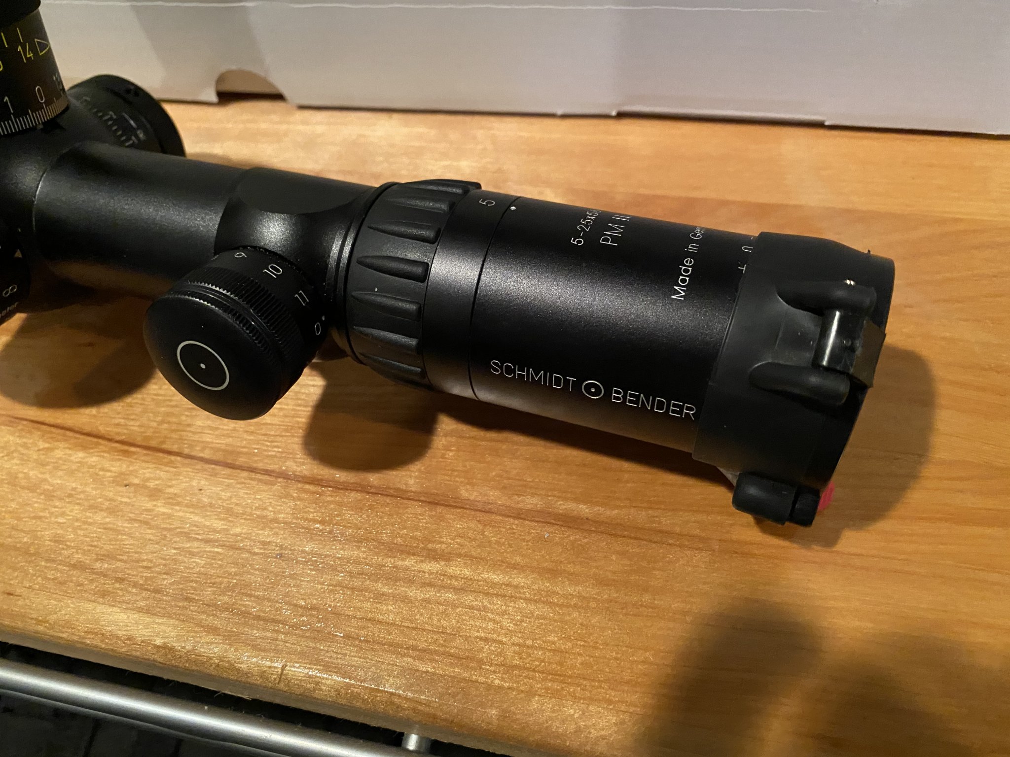 I have a gently used Schmidt & Bender 5-25 PMII CCW DT with a P4F reticle for sale. No visible ring marks. Tracks perfectly. Used but I can’t really see any real signs of even small scratches. Fantastic condition. Am selling since I’m not finding time to use all my rifles. This was on my AI AX which was recently sold here. Asking $2200 shipped CONUS if paid by PayPal f&f/Venmo/Zelle.