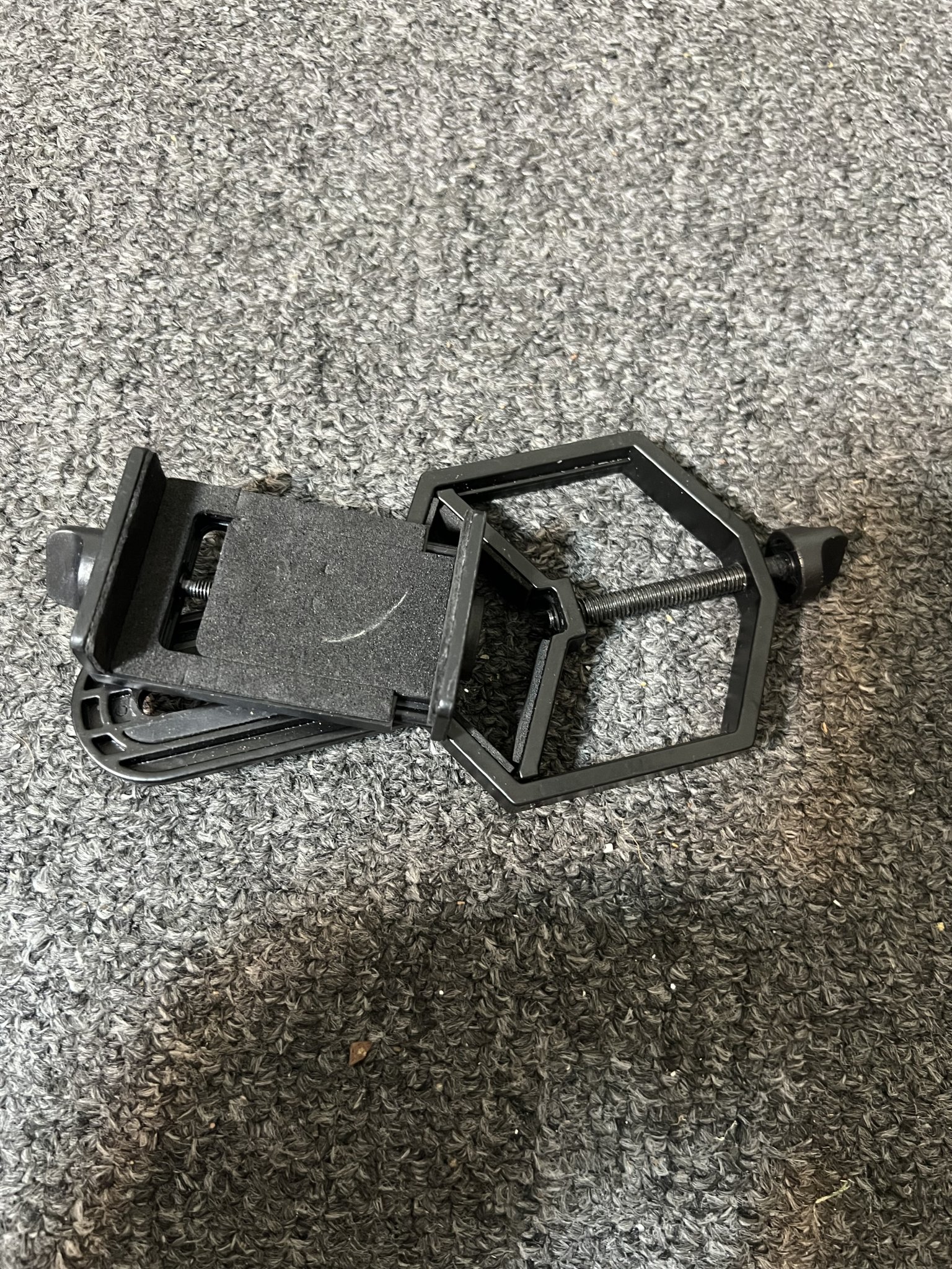 12. Phone scope holder thingy. Let’s you take pictures easily through a spotting scope/Binos etc with your phone. $30