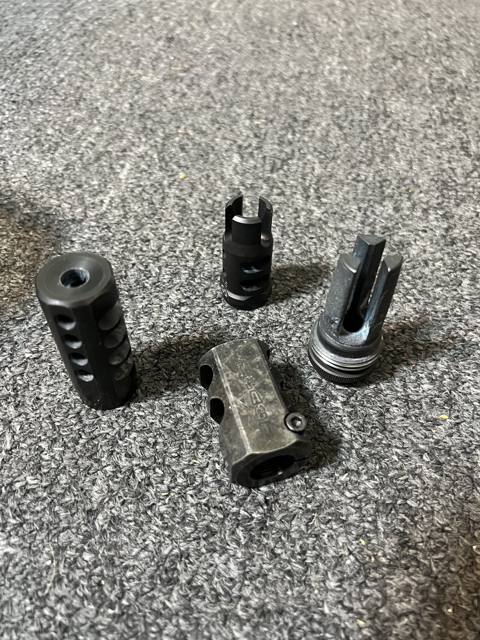 6. Muzzle brakes- 6mm impact 5/8” (was put in “the dip” and it made this cool heat treated looking pattern to it. Was originally black nitrided I believe. $70. Christensen arms muzzle brake. Either 6.5 or 7mm. $85. Desert tech 6.5 ratchet muzzle brake. $70.