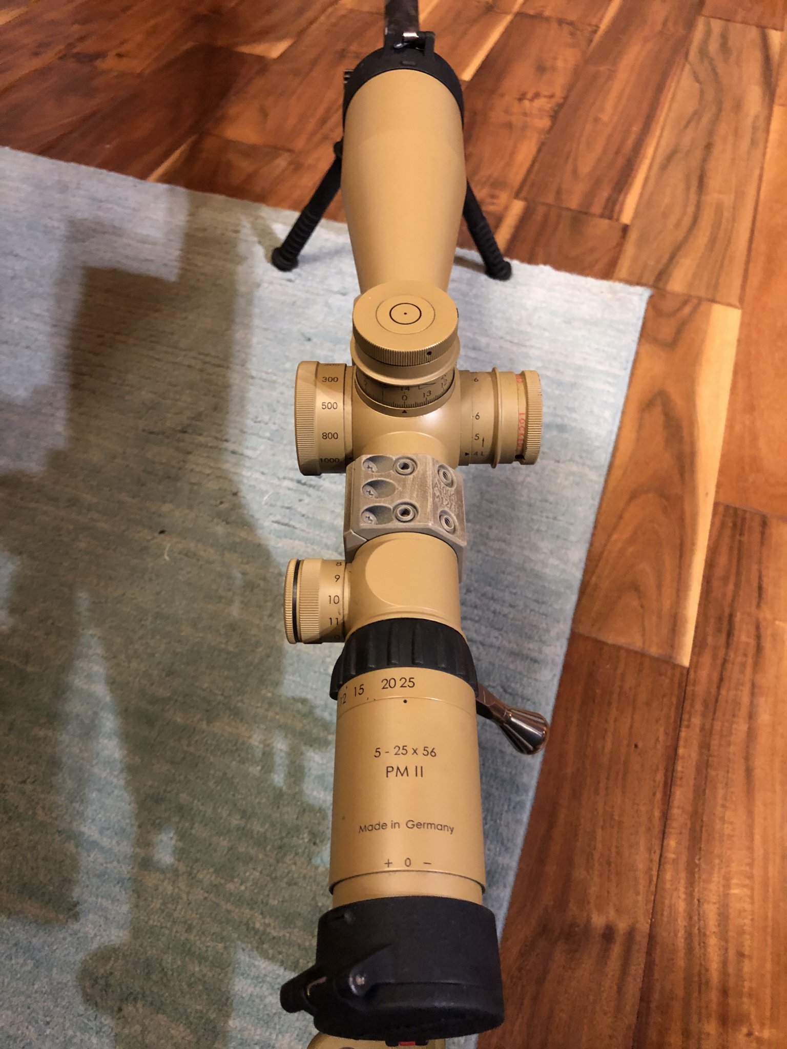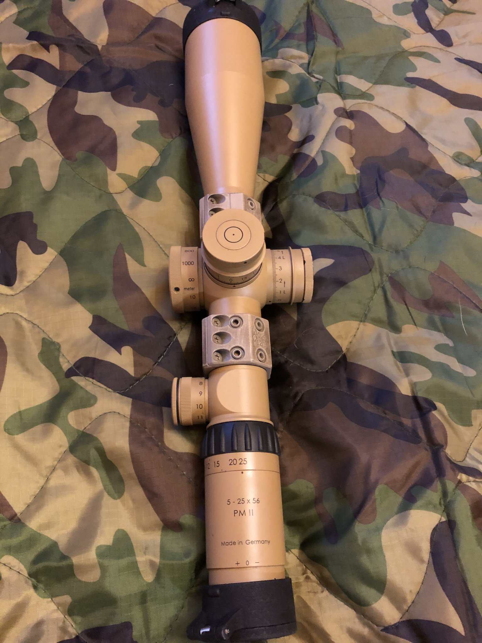 Selling off the rest of my kit. Took this off the rifle I sold. FS Schmidt & Bender PMII 5-25x56 H-59 RAL800-Tan