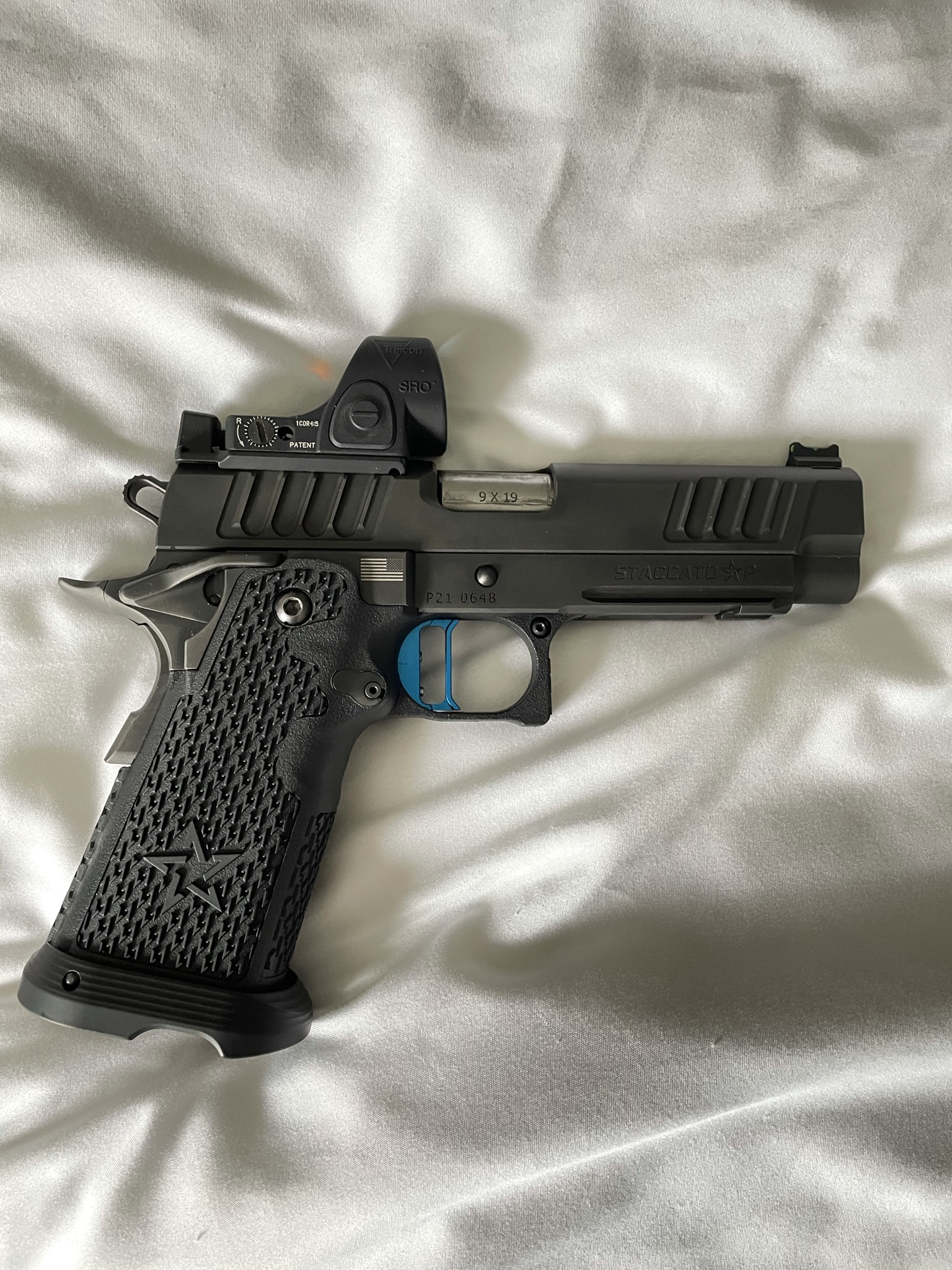 Like new, Staccato P DUO- 9mm, 4.4" bull barrel, DLC, approximately 500 rounds