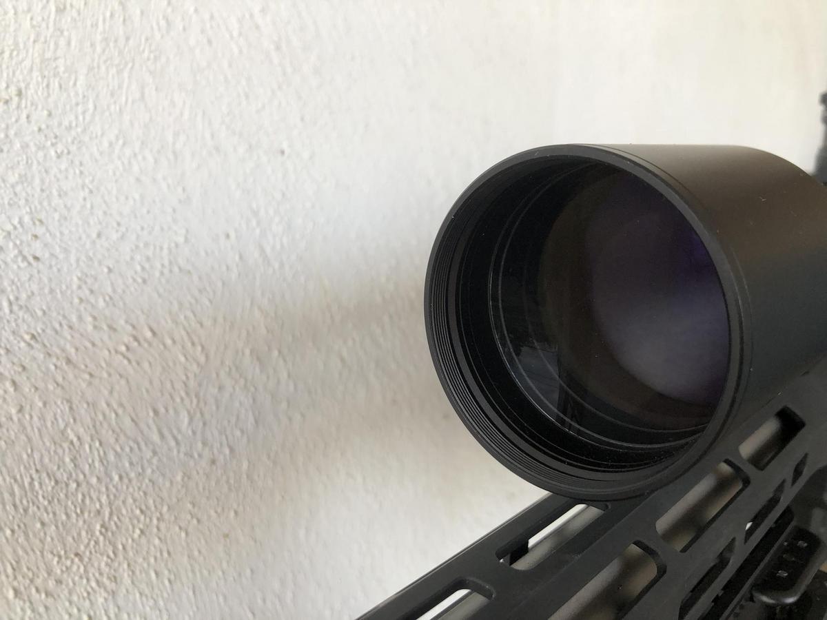 The scope itself is in great shape externally, no big marks or dings. The objective glass has some light scratching from dust/dirt over the years, but nothing that affects optical performance.