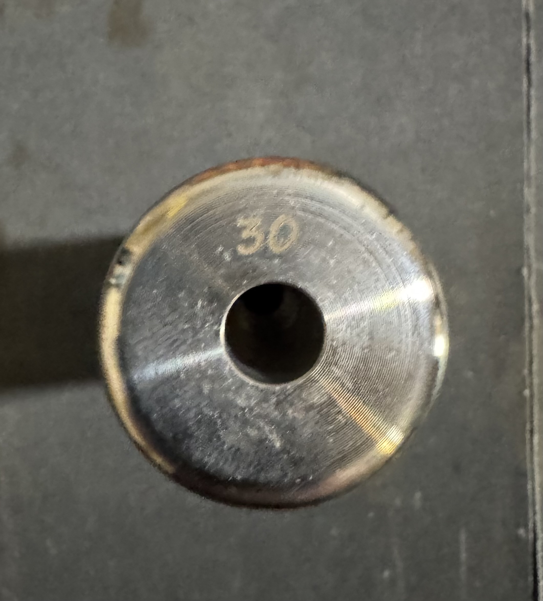 It is Raw Stainless Steel for up to 30 Cal with 5/8 x 24 Threads.