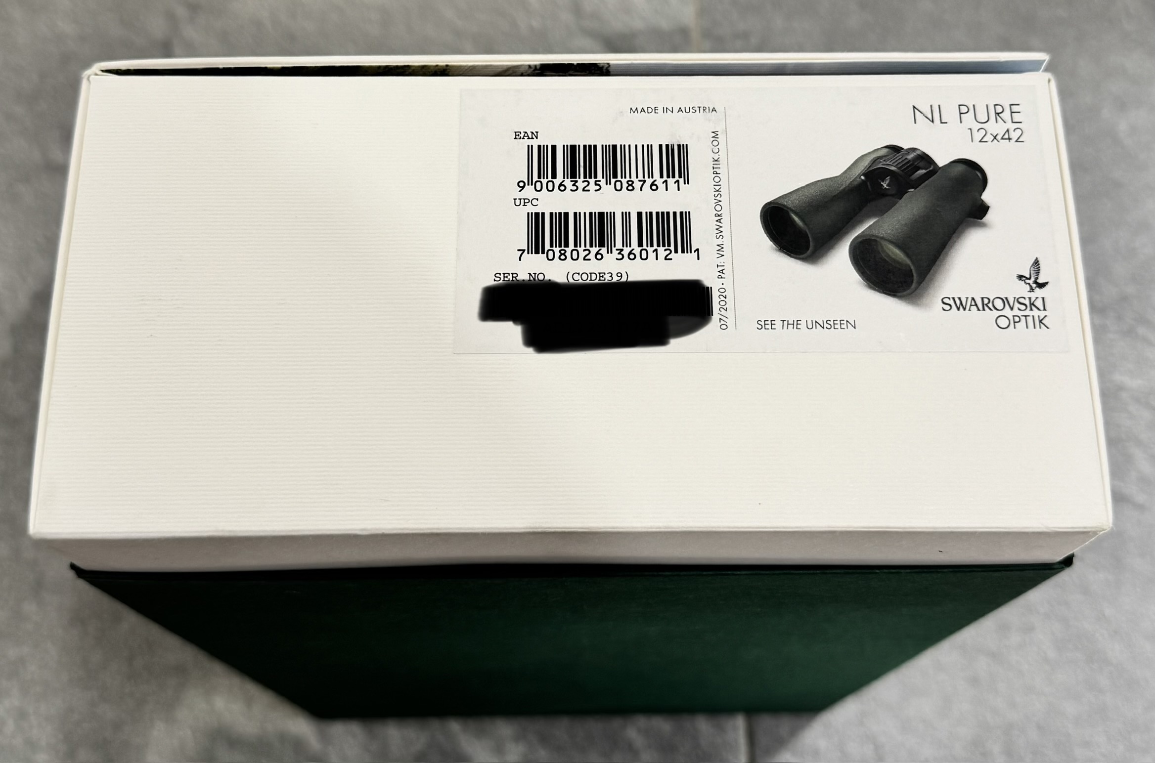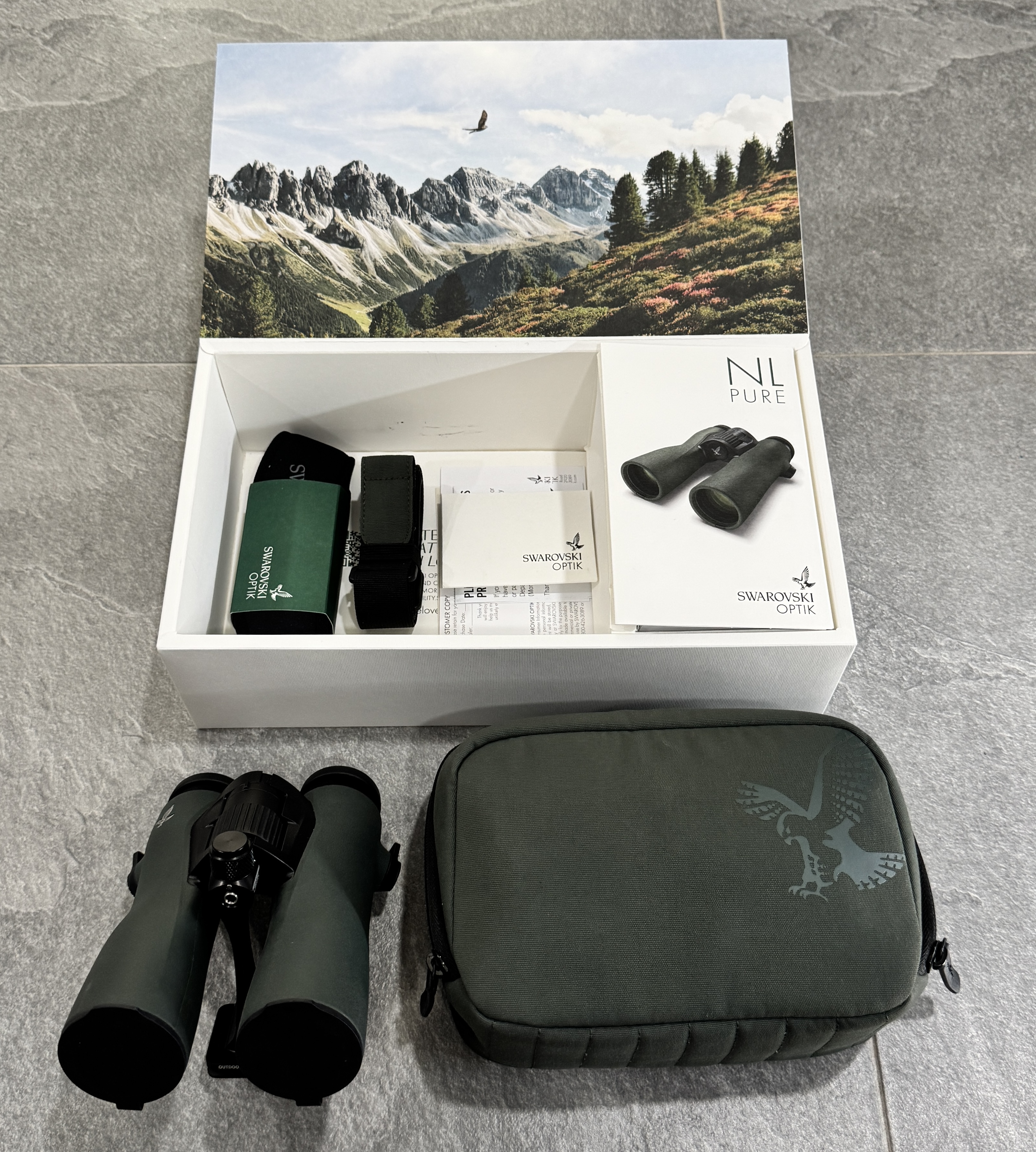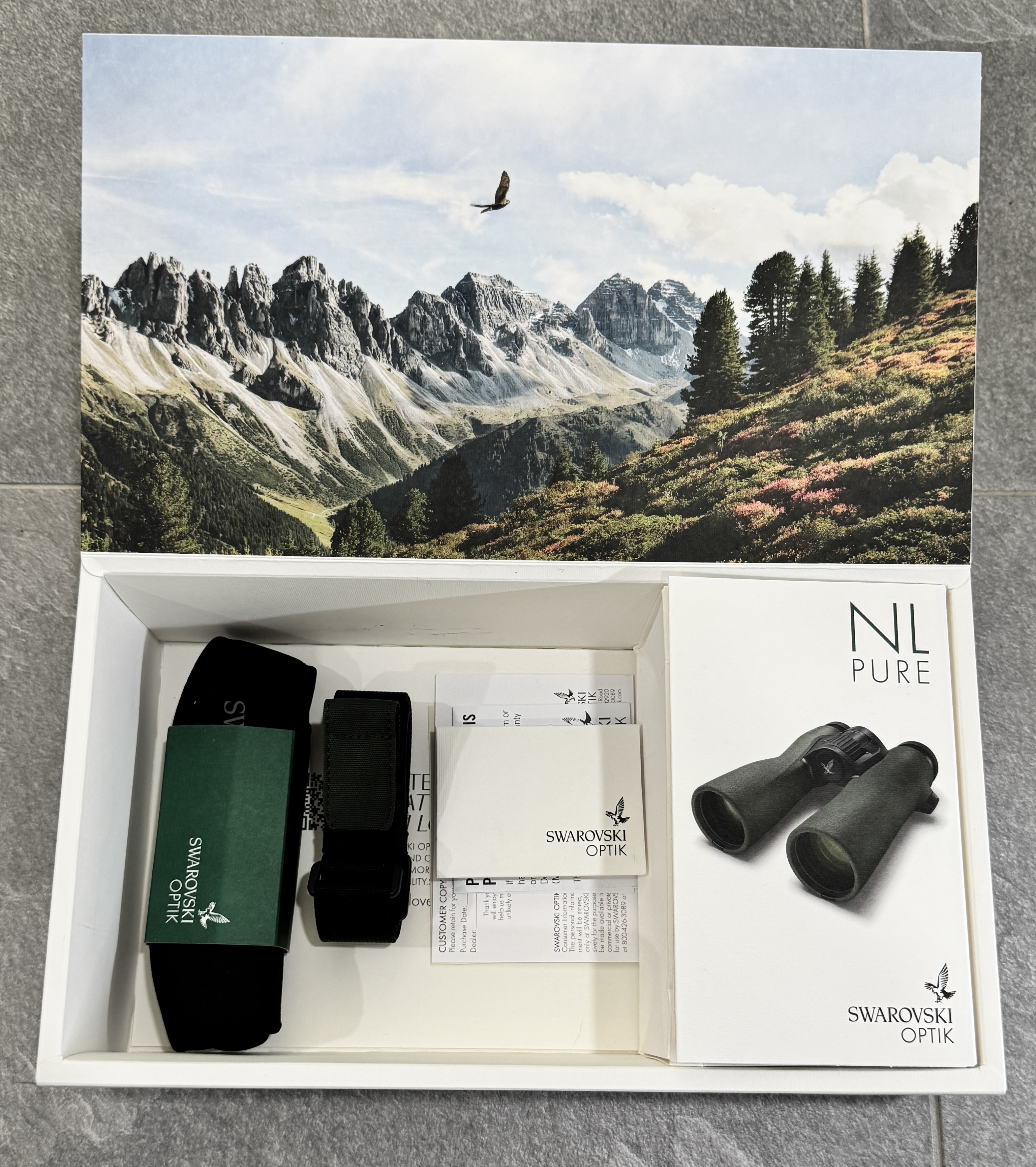 Up for sale is a like new in box Swarovski NO Pure 12x42 binos. I took them out to the range a couple of times and in the safe they went afterwards, they are as close as brand new as you can get. They are pristine, no rash, scratches, dents, dings or mishaps of any form. They come with every accessory they can with from factory, even the brush and soap, see the pictures to get a better idea. I added an Outdoorsman stud and Gray Ops ARCA Plate that allow mounting the binos directly to your tripod via an arca clamp.