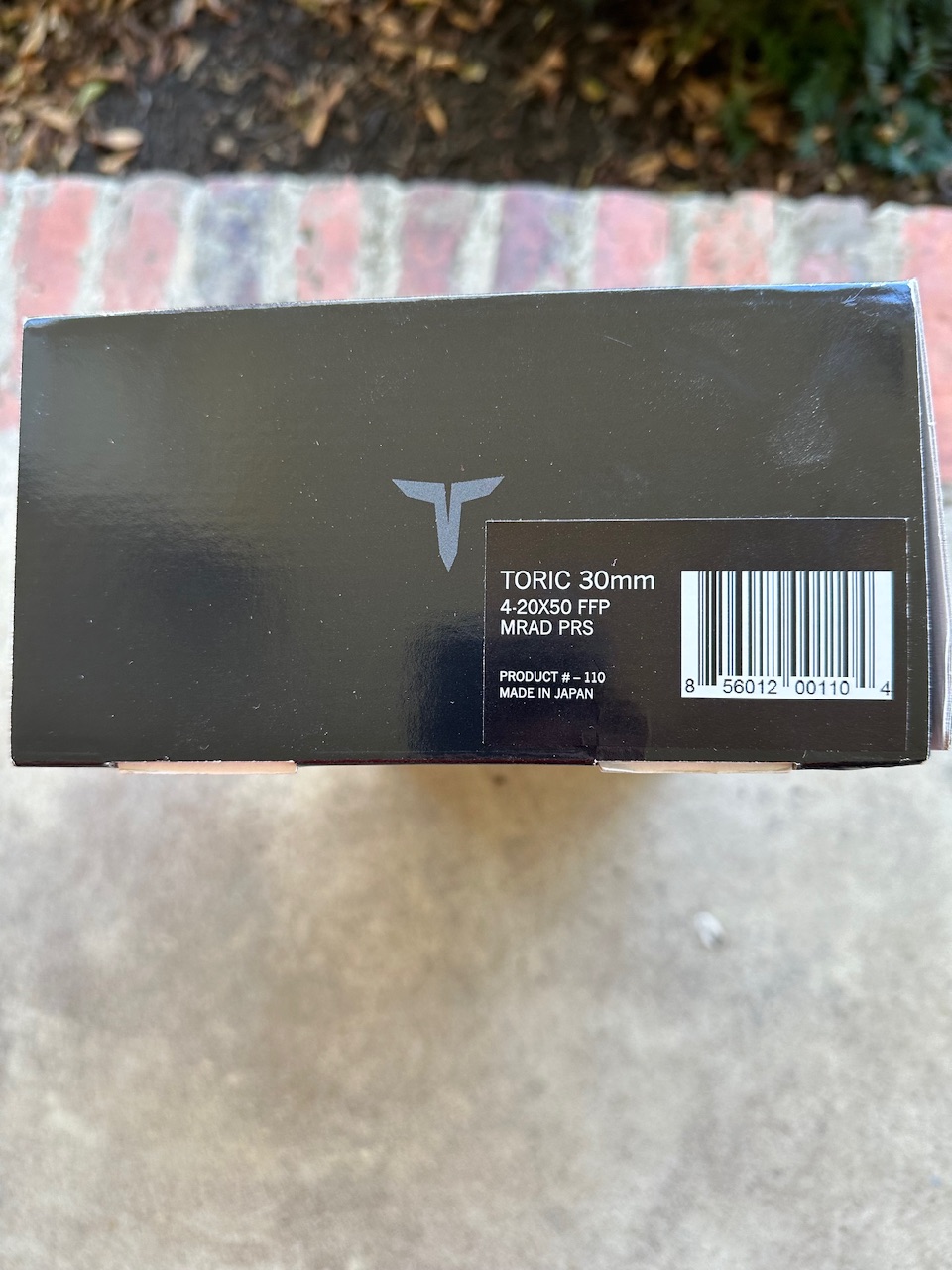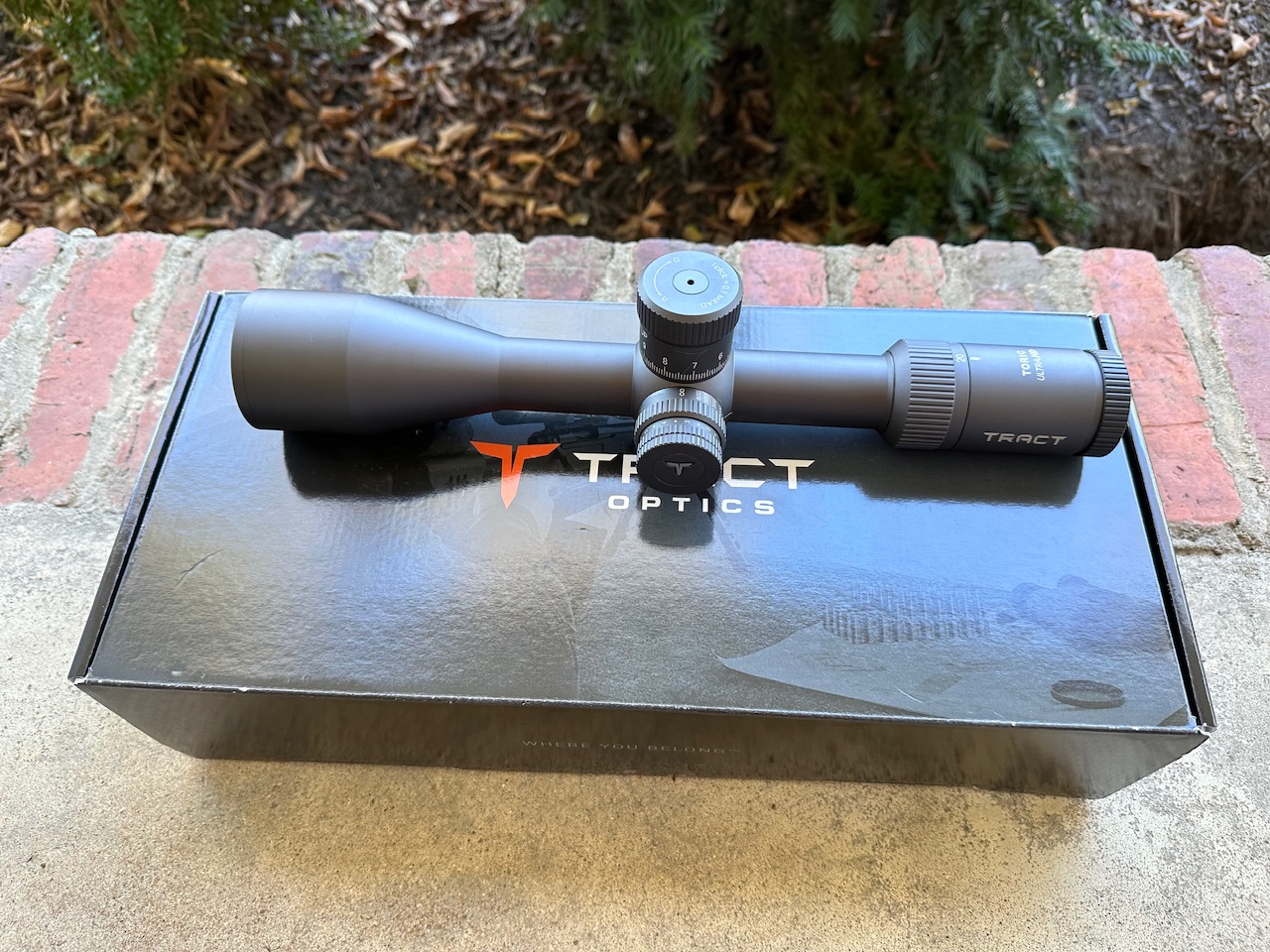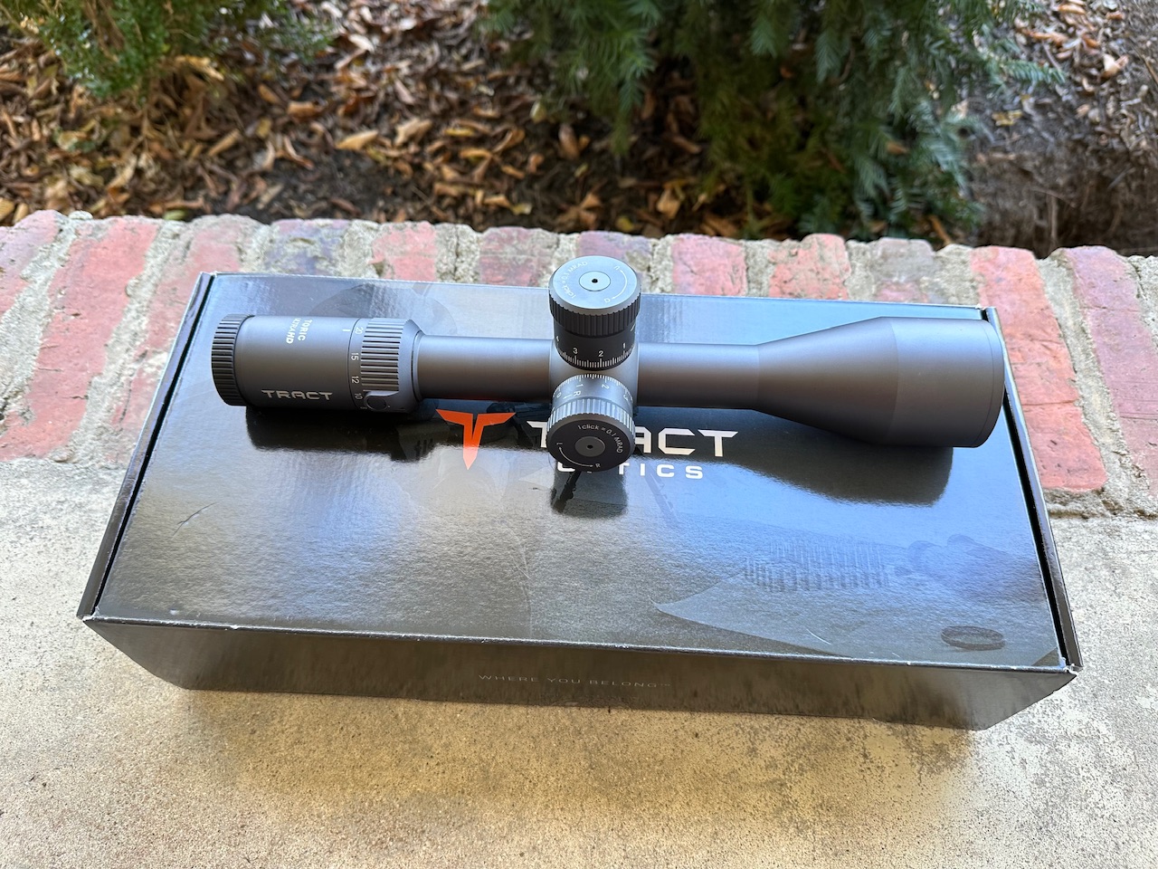 I have a nice Tract Toric PRS 4-20x50 up for sale. Comes with box and goodies from Tract. It has PRS MRAD tree reticle. Glass is very nice and scope is in great shape minus ring marks only on the underside along with one nick on the underside of the bell that is not visible when mounted.