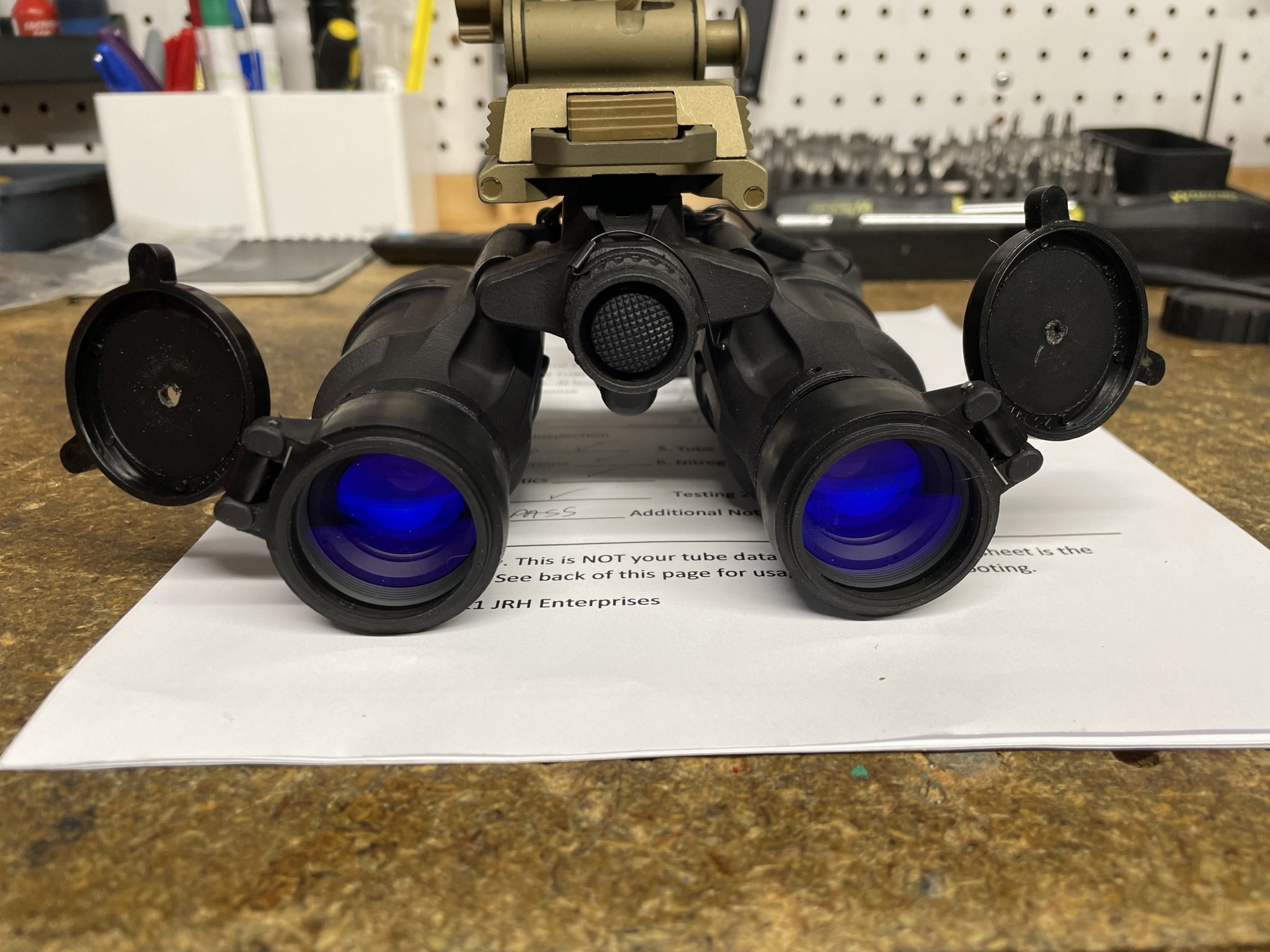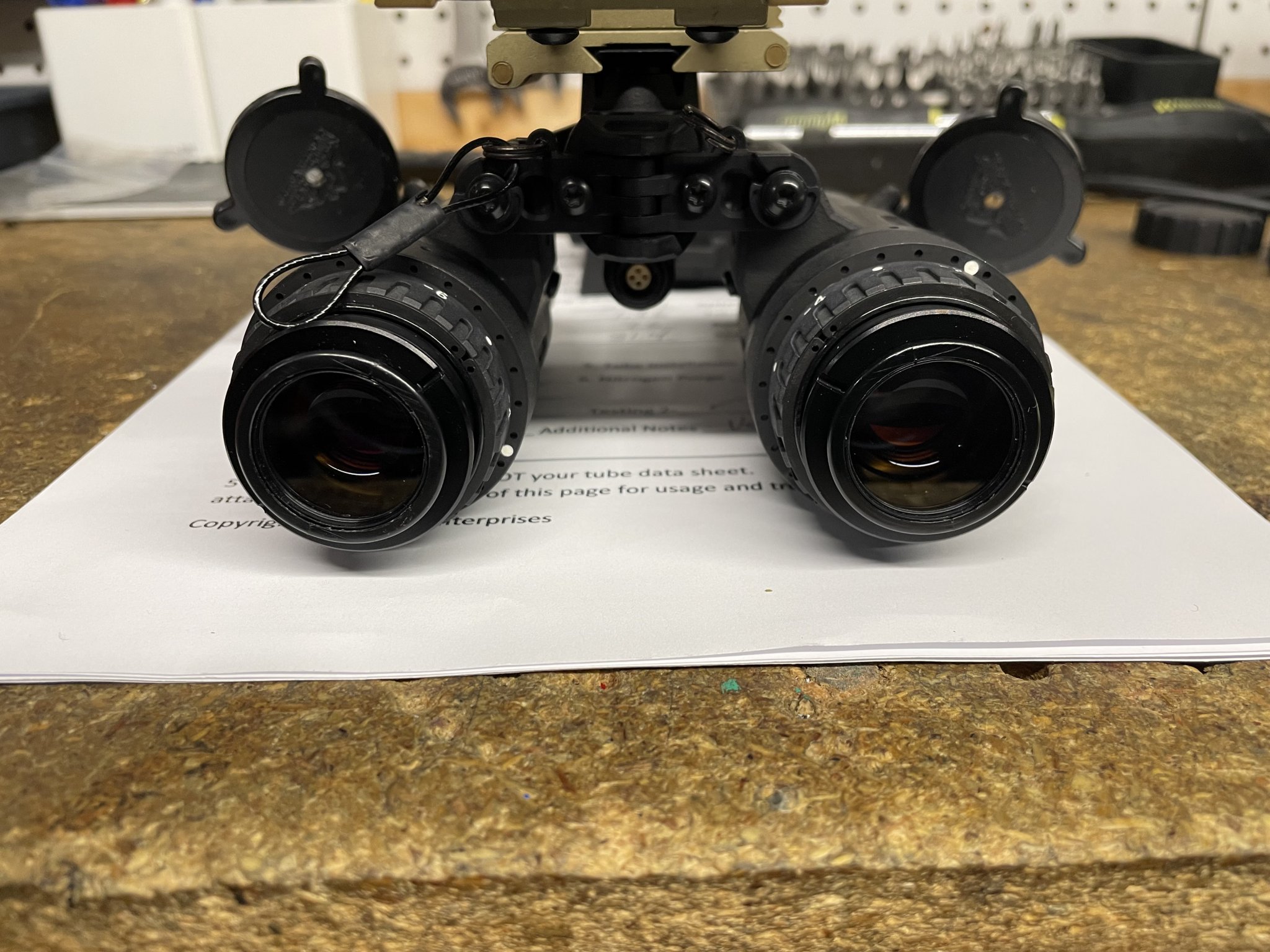 UANVB Katana binos with Elbit YH Gen. 3 white phosphur tubes. Purchased in July of this year. Less than an hour of use. These have the lemo port for external battery. Push button on/off. Pods shit off when rotated up and turn back on when rotated down. Excellent condition. Includes spec sheet and hard case. Built by JRH. I’d love to keep them but I just can’t get out to use them enough to justify the cost.