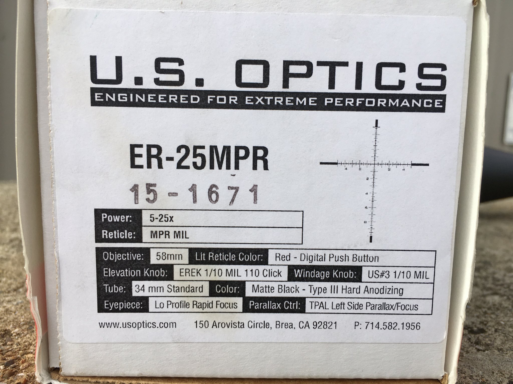 Selling a used US Optics ER-25 scope with American Rifle Company M10 scope rings. This scope is used, but is in very good shape and in good mechanical condition. I think there is a small ding on the top of the front objective bell, but very small. I have the box and the EREK top disk and allen wrenches. Not looking for any trades. You can text at 440 935 9528, or E-mail at [email protected]. Thank you!