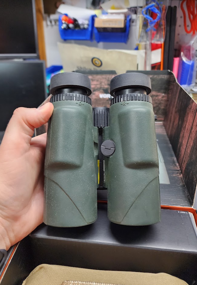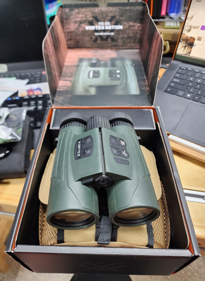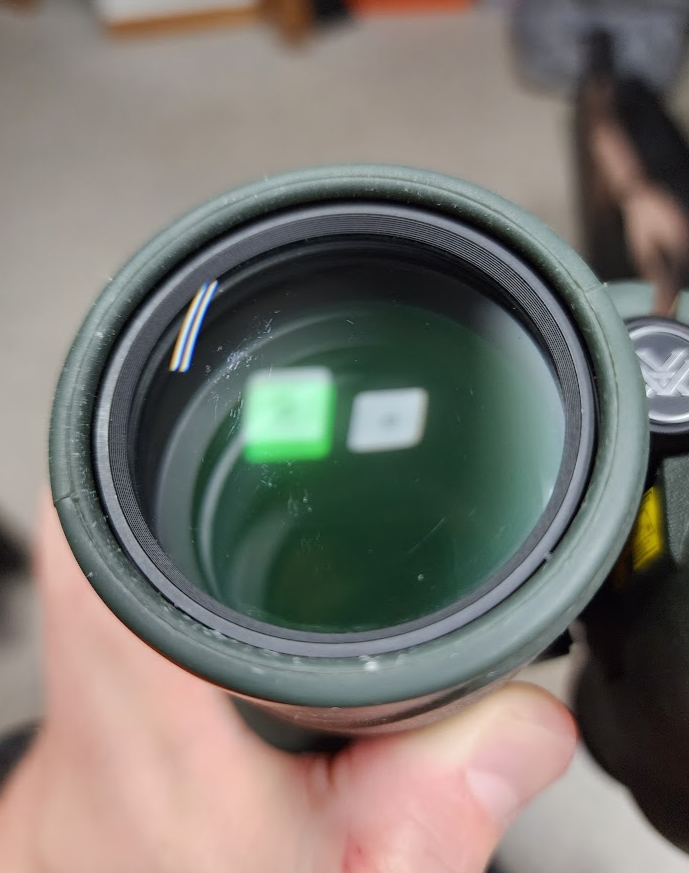 Vortex Fury 5000 ABs. Used these for a few NRL hunter matches. Unfortunately, they rolled out of my harness when getting up from prone and landed on the objectives. Have some coating marks but doesn't appear to have any glass damage. See pictures. The ocular side are pristine. The overall body shape is great. Will come with the factory box, bino harness, and accessories. They look dustier than they are. I wiped them down with a shop rag and its leftover lint.
