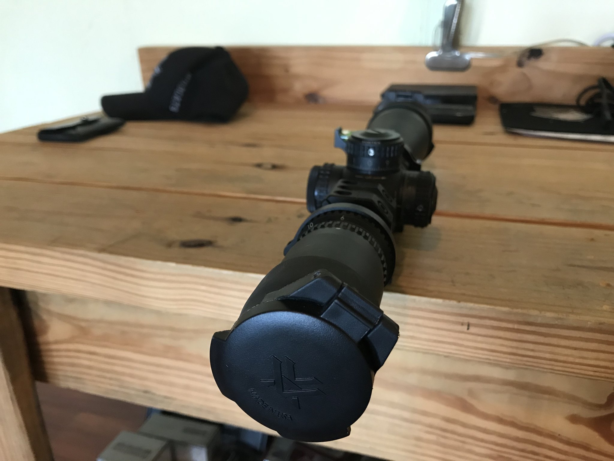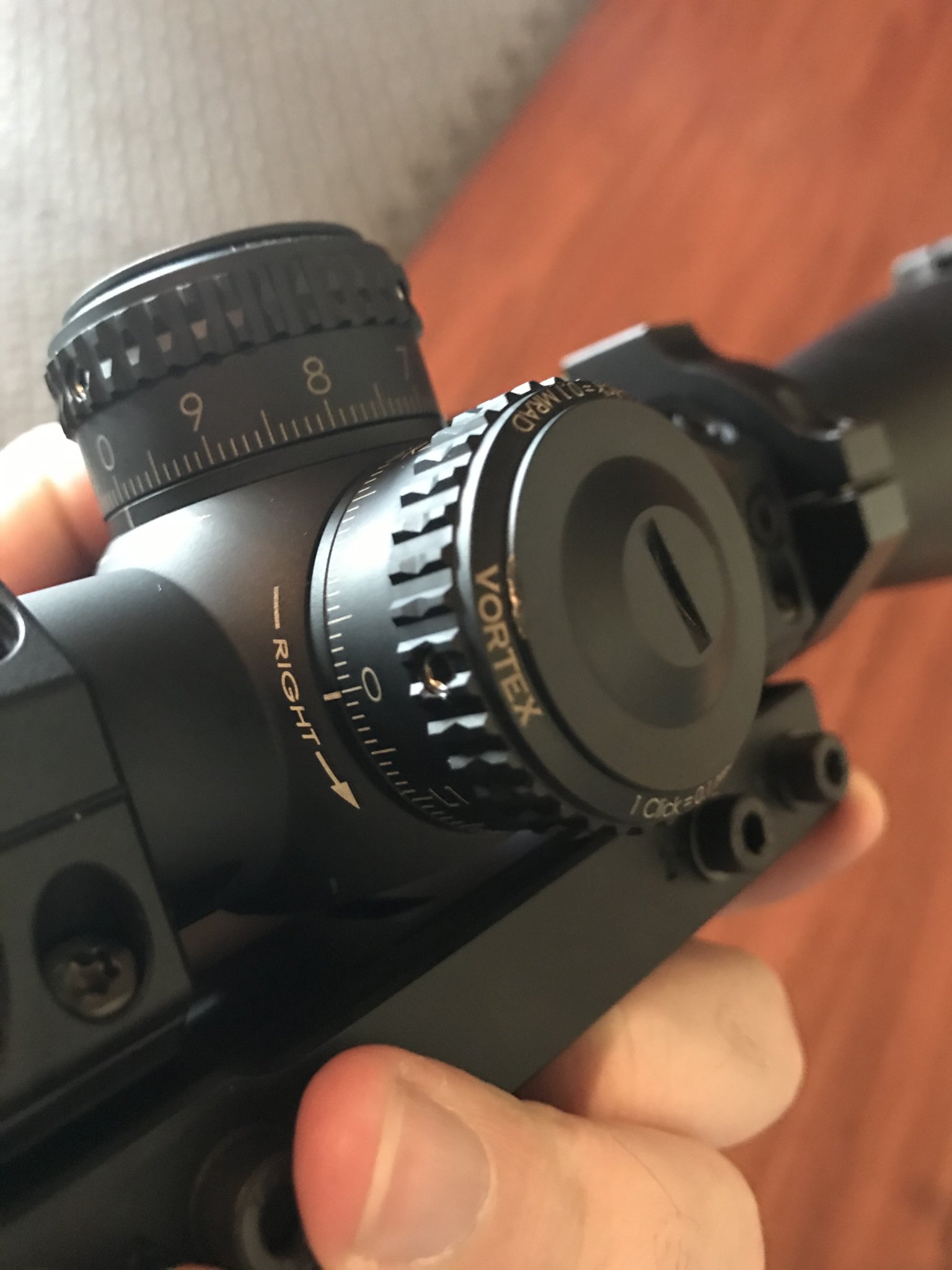 I’m looking to sell my Razer AMG. It comes with the original box and accessories (lens covers, sunshade, tool, bubble level). It’s in good shape. The only thing I can find on it are 1 mark on each of the screw off caps for the elevation and windage turrets, both of which are pictured. It also comes with a Spuhr SP-3006 mount, along with the original box and accessories for it as well.
