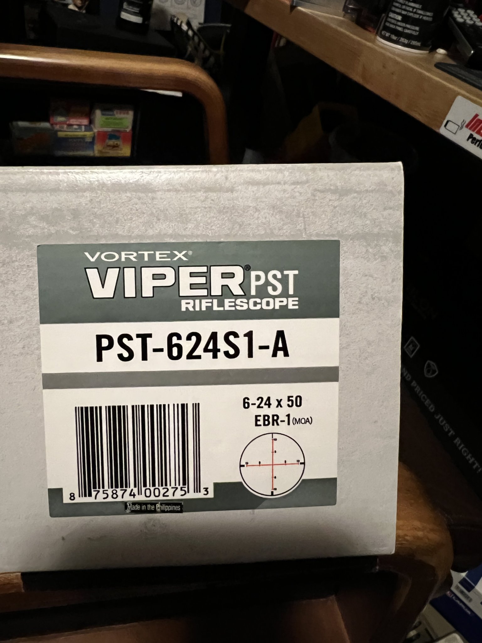 Vortex Viper PST 6-24x50 MOA illuminated reticle glass is clean throw lever flip caps and sunshade included in original box $350 shipped