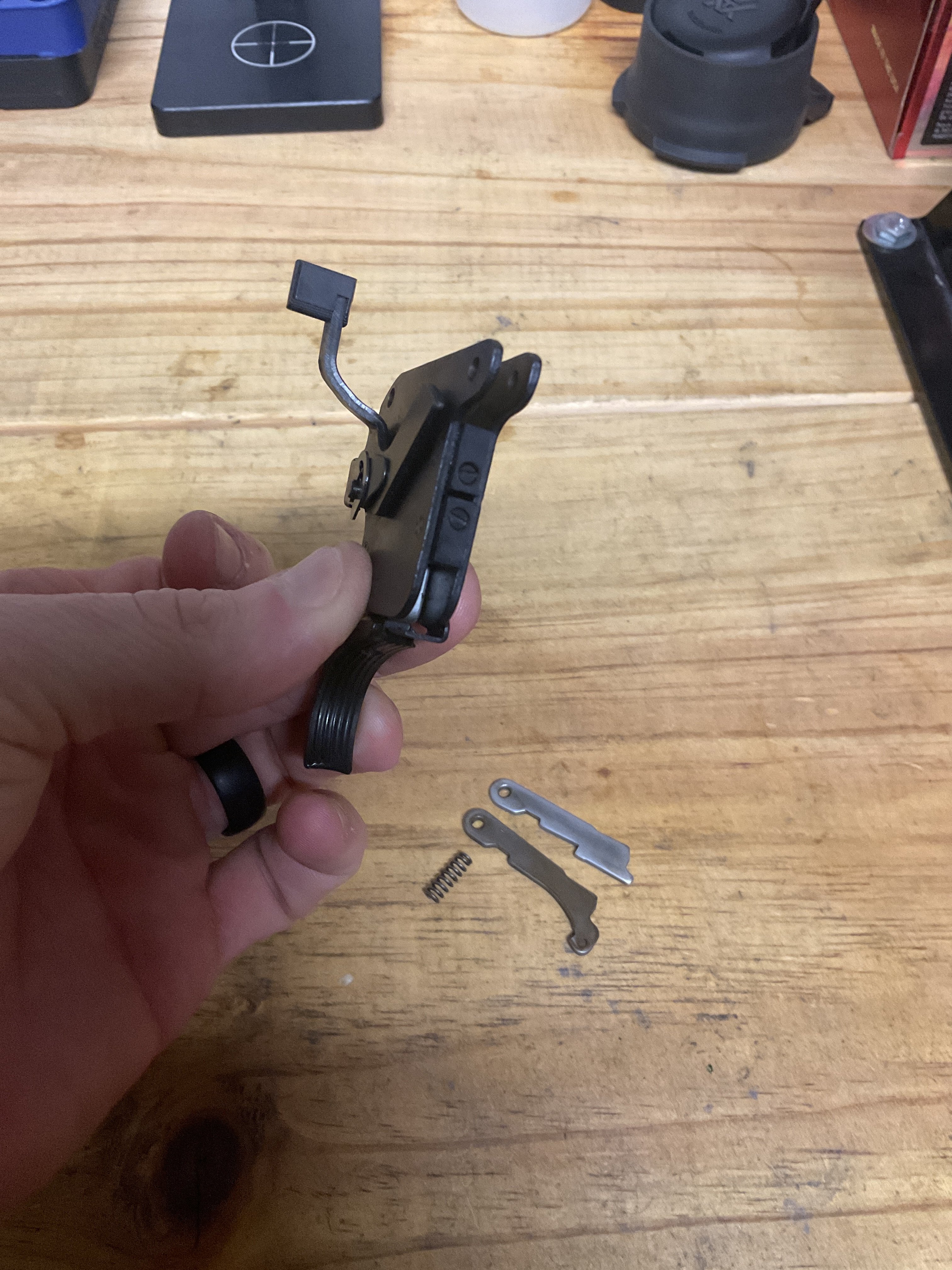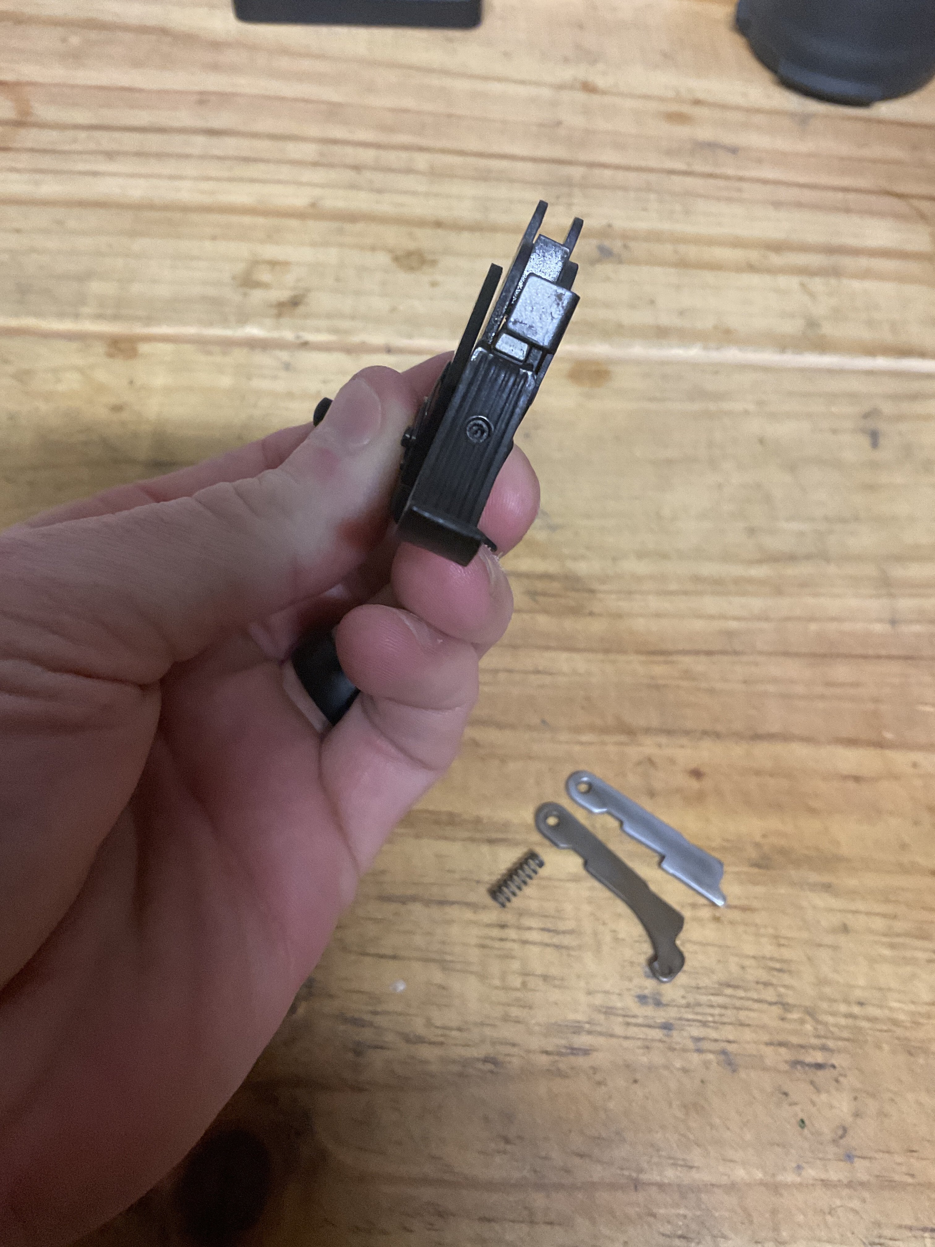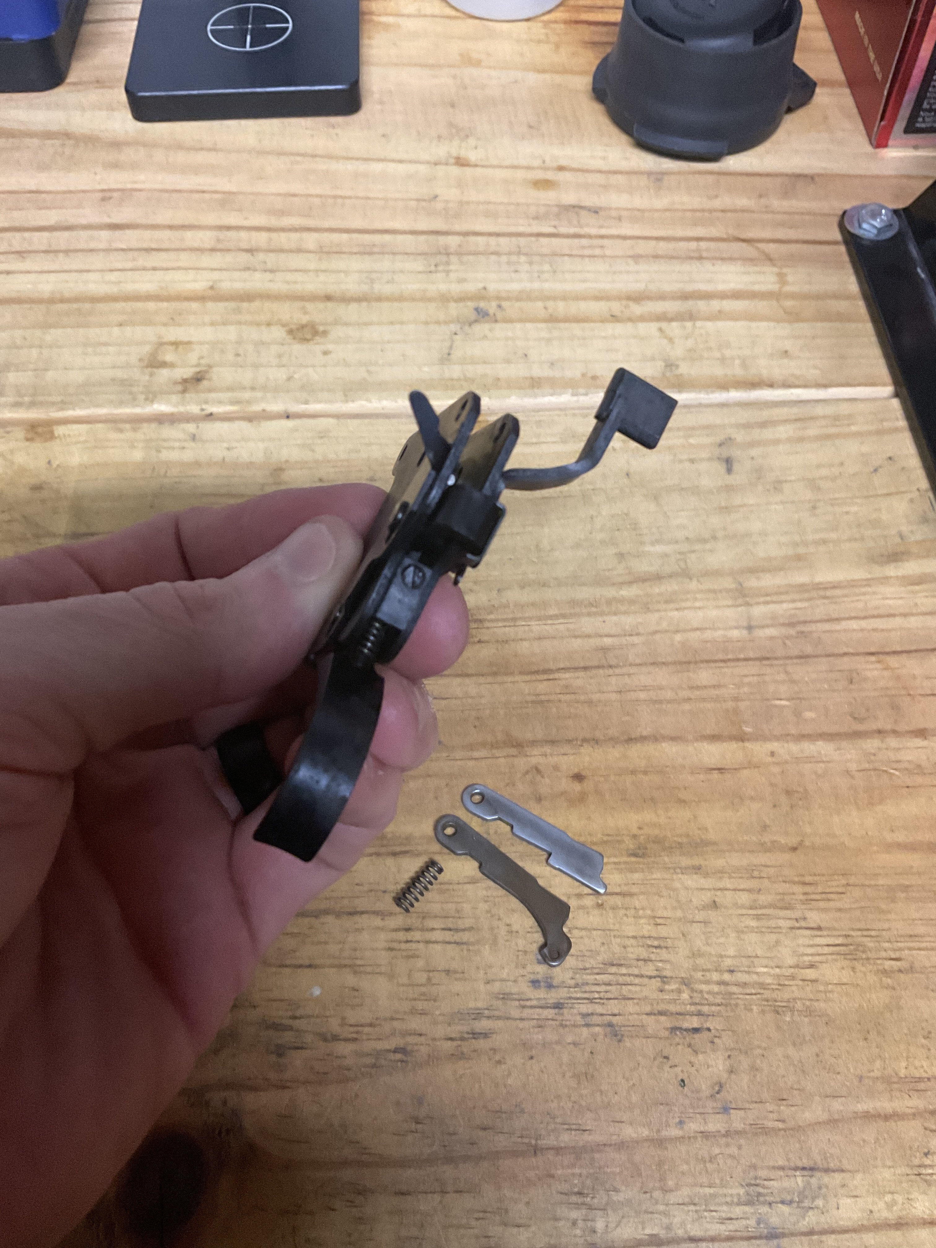 I bought a Remington 40XB 22LR to side to modacam to be converted to a repeater. This is the walker remington trigger it came with. Walker wide ribbed trigger shoe, external adjustment screws and split sear. In very good condition