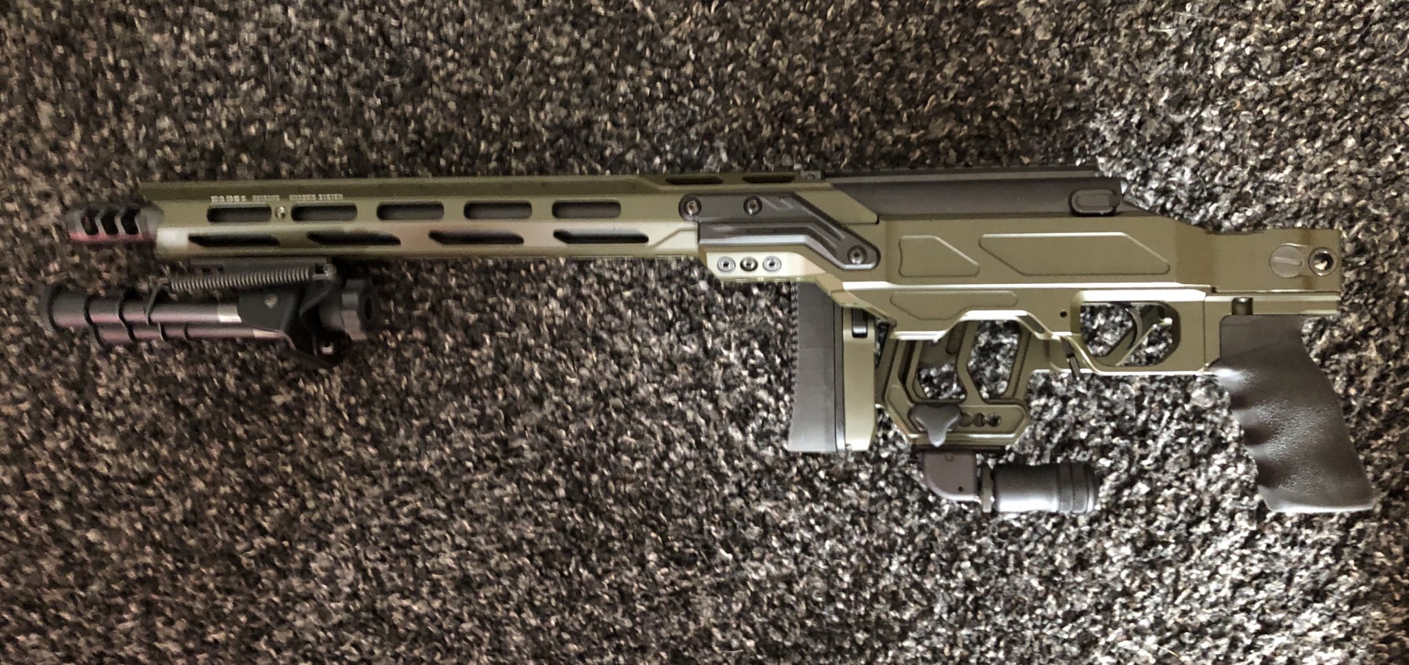 Looking to trade a as new (assembled + BA mounted) Cadex Lite Comp OD Green chassis for Surgeon 591 With black boomerangs (vs green) was modified to accommodate bar-loc by PVA. Surgeon action without barloc will function normally.