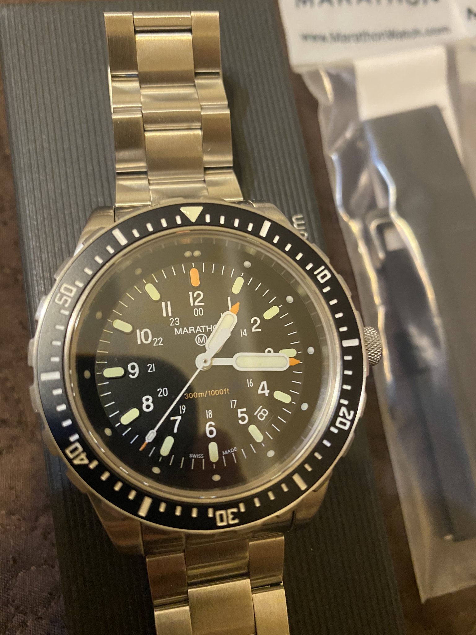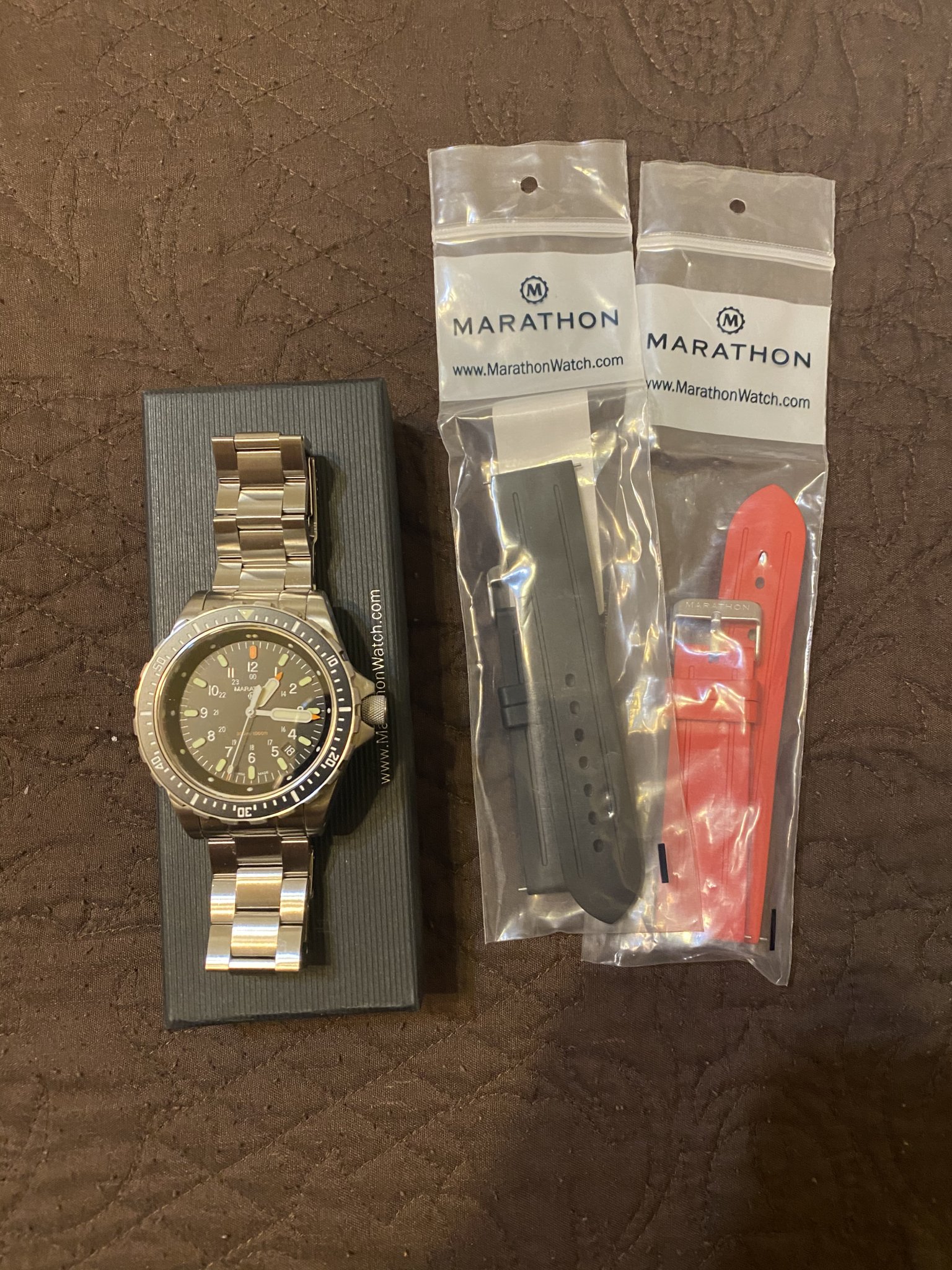 Selling my like new marathon jsar with original steel band, marathon red rubber and black rubber bands. Only worn a few times, no scratches or imperfections at all. Original box and packaging. Asking $875 shipped. Call/text 956-239-2747 for more pics/info