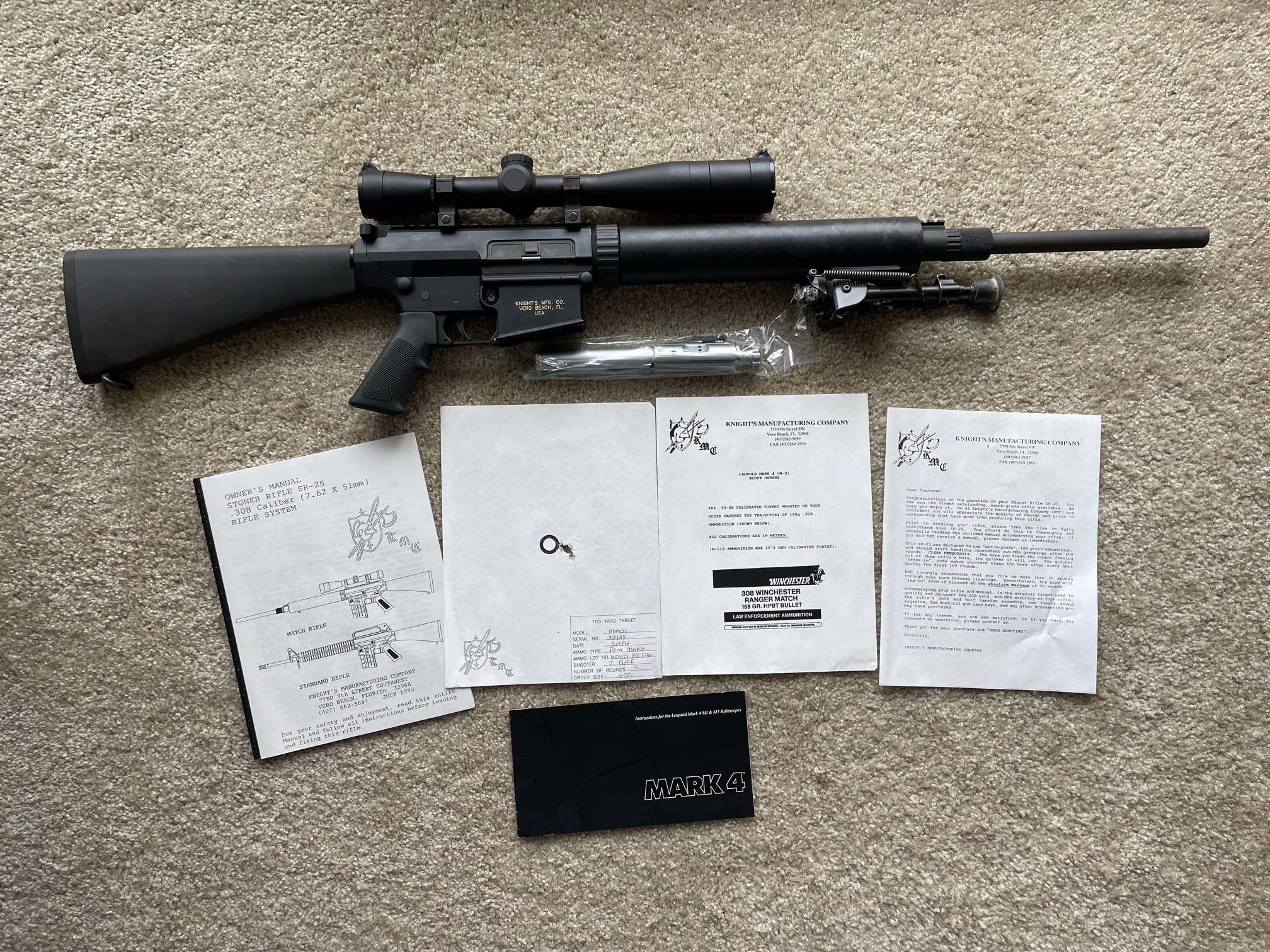Last fall I purchased this 1993 production SR25 match rifle complete with old school leupold mk4 fixed 10x scope, at the time it was unfired as the bolt carrier group was still sealed in plastic. Since acquiring the rifle I have put roughly 150 rds through it with the bulk of those captured in the youtube video referenced below. Ultimately I don't enjoy shooting this rifle as much as I do more modern options so I am looking to trade for something I'll get more enjoyment out of at the range.