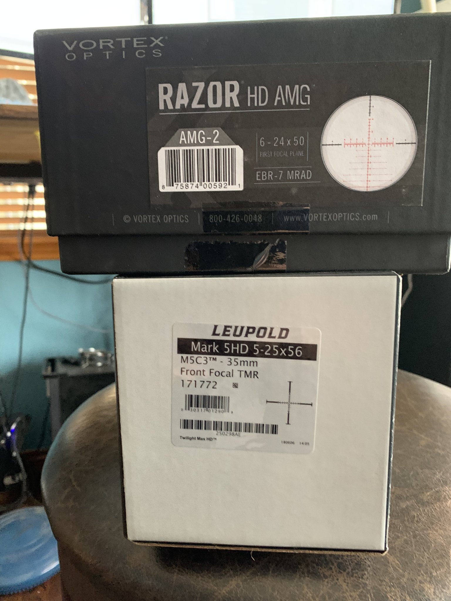 Willing to sell individually too, but looking to trade either a good condition vortex AMG or a like new in box mark 5 5-25 TMR for a mark5 3-18 with the CCH reticle.