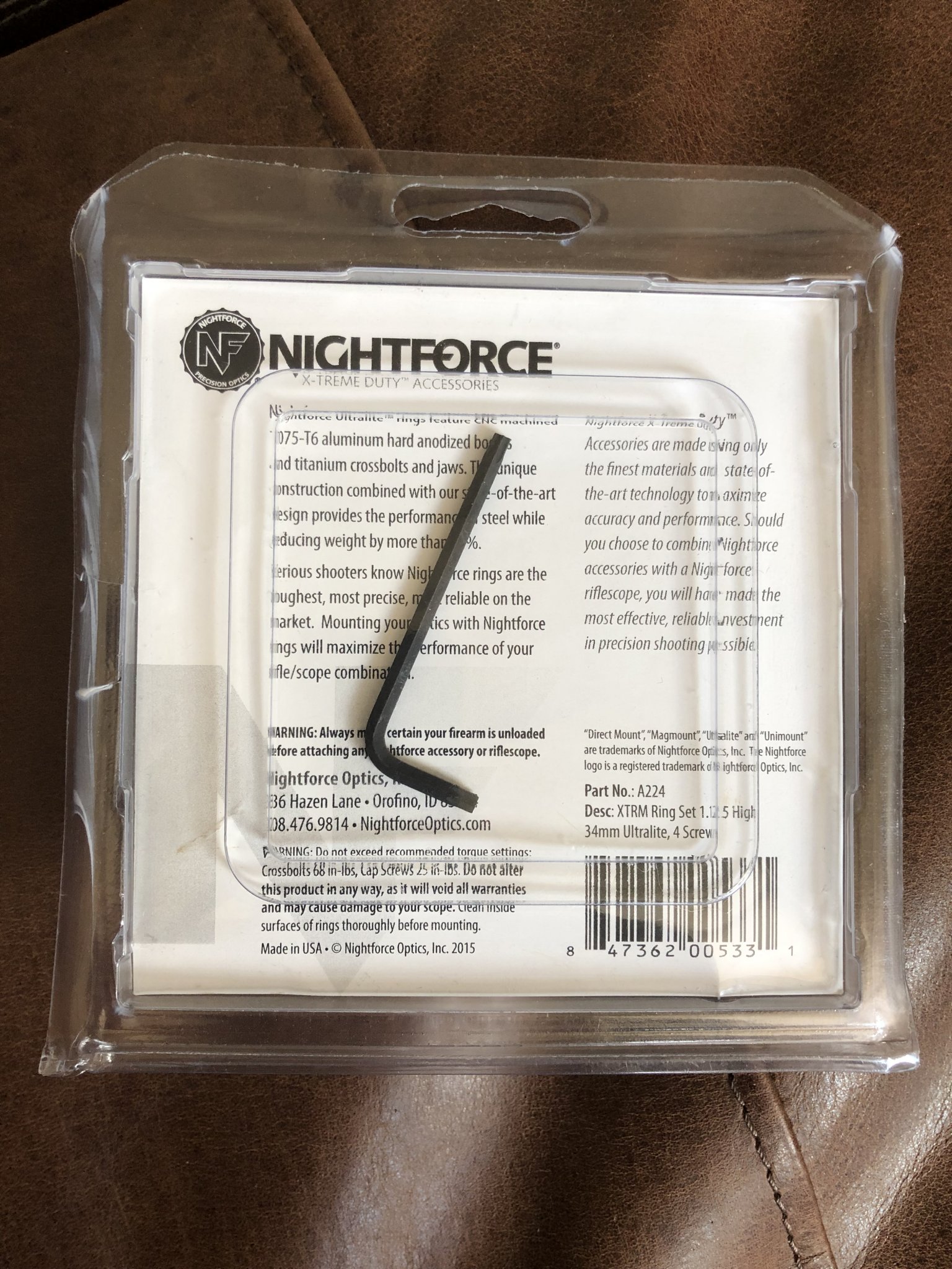 WTT / WTS Nightforce 34mm Ultralight 1.125” rings 4 screw like new. I’m looking for a 1” version of the same rings. I’ll also sell them for $125 shipped.