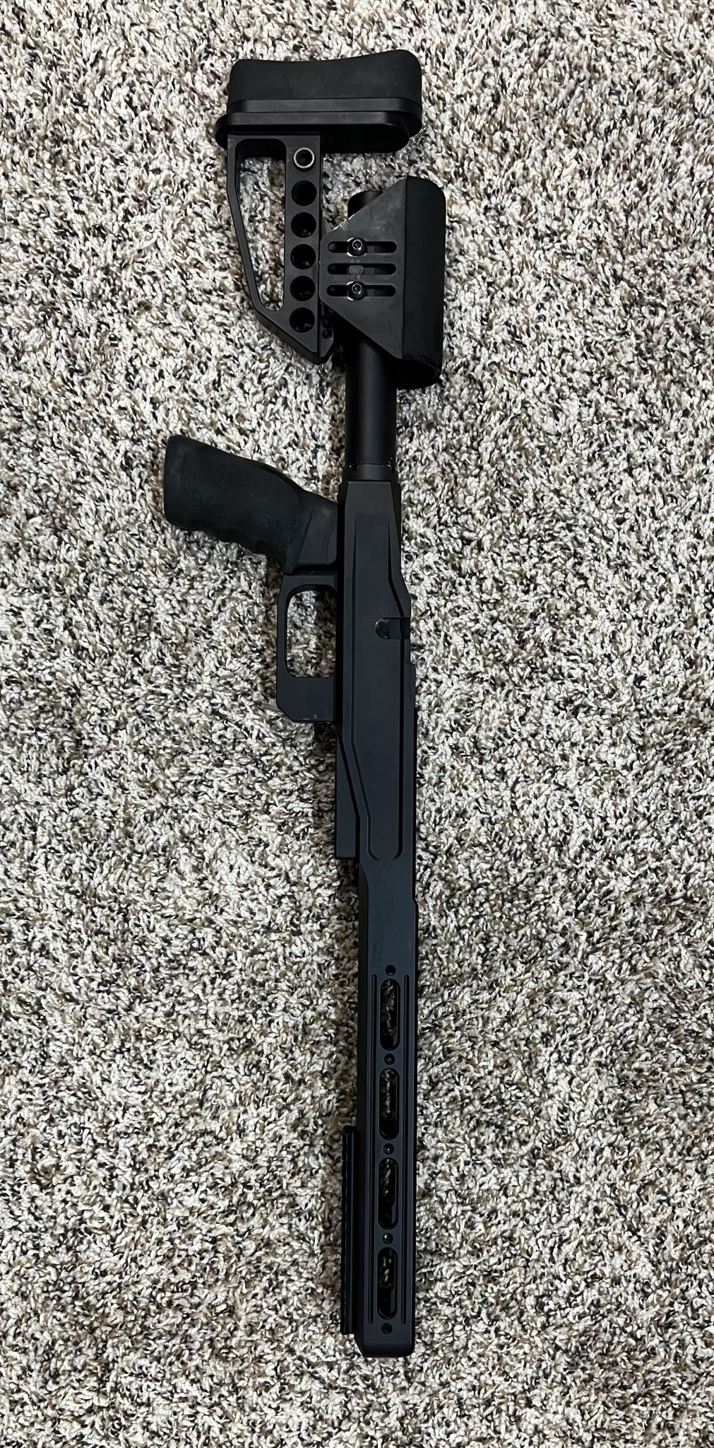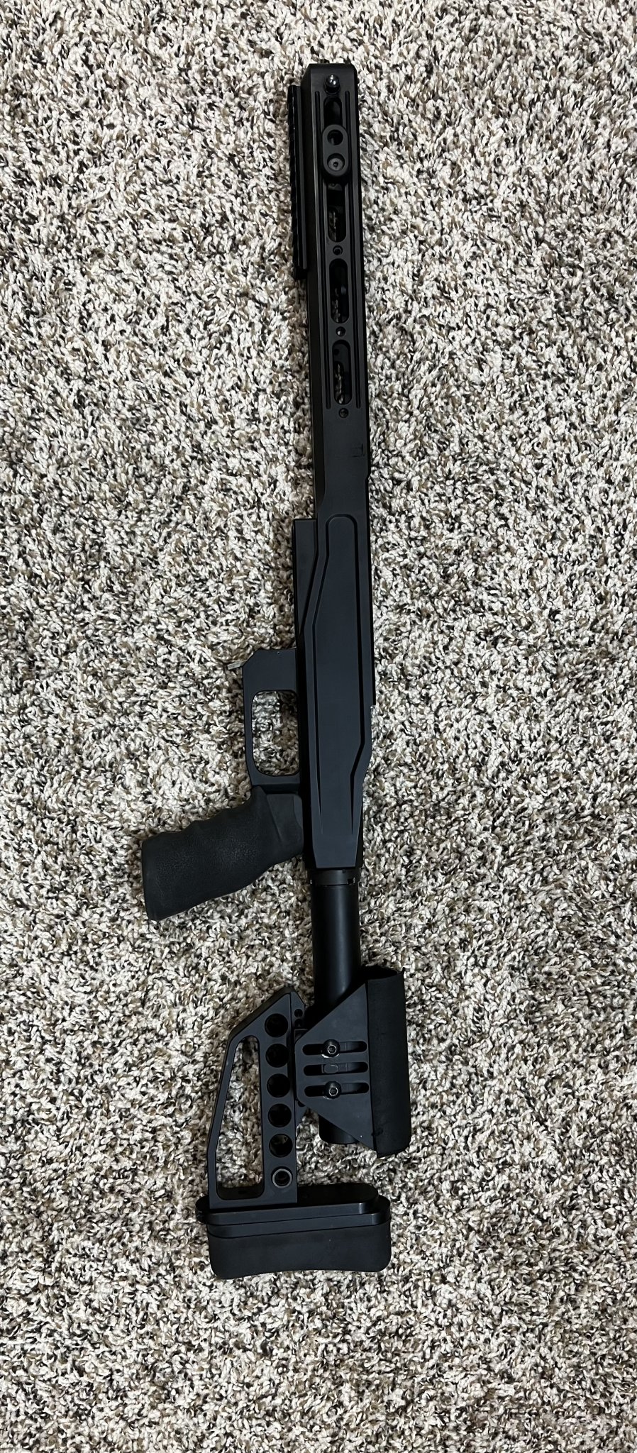 XLR Element Gen 1 chassis for Savage Short action. This is a Gen 1, so the slots are NOT M-Lok.