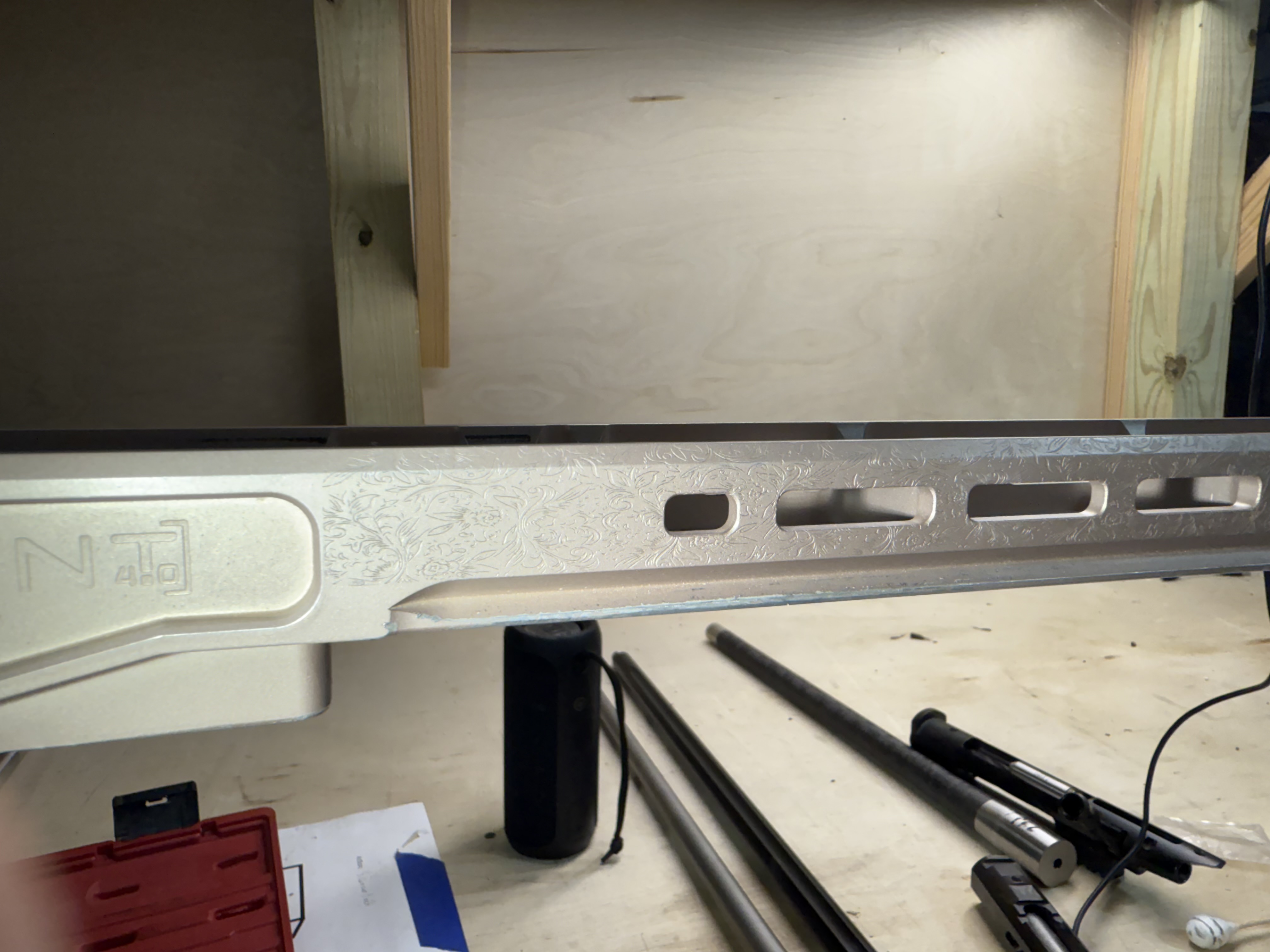 XLR Tikka T3X Element 4.0 Aluminum Chassis with TR-2 Buttstock Short Action Ambidextrous with right hand MPA grip and XLR Thumbrest Rose Gold cerakote and floral engraving. In good condition $650 shipped with a 10 round mag