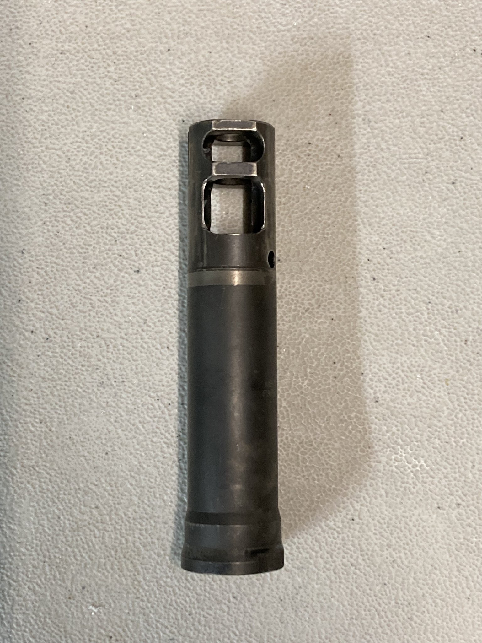I have a pretty salty/ battle worn used muzzle brake for those looking to build out the XM-3 pretty sure this is one of the brakes used as it has the locking serrations on it. Had to soak/ scrub it pretty good to show it real condition, I’m sure a goldsmith can get it back to original finish.