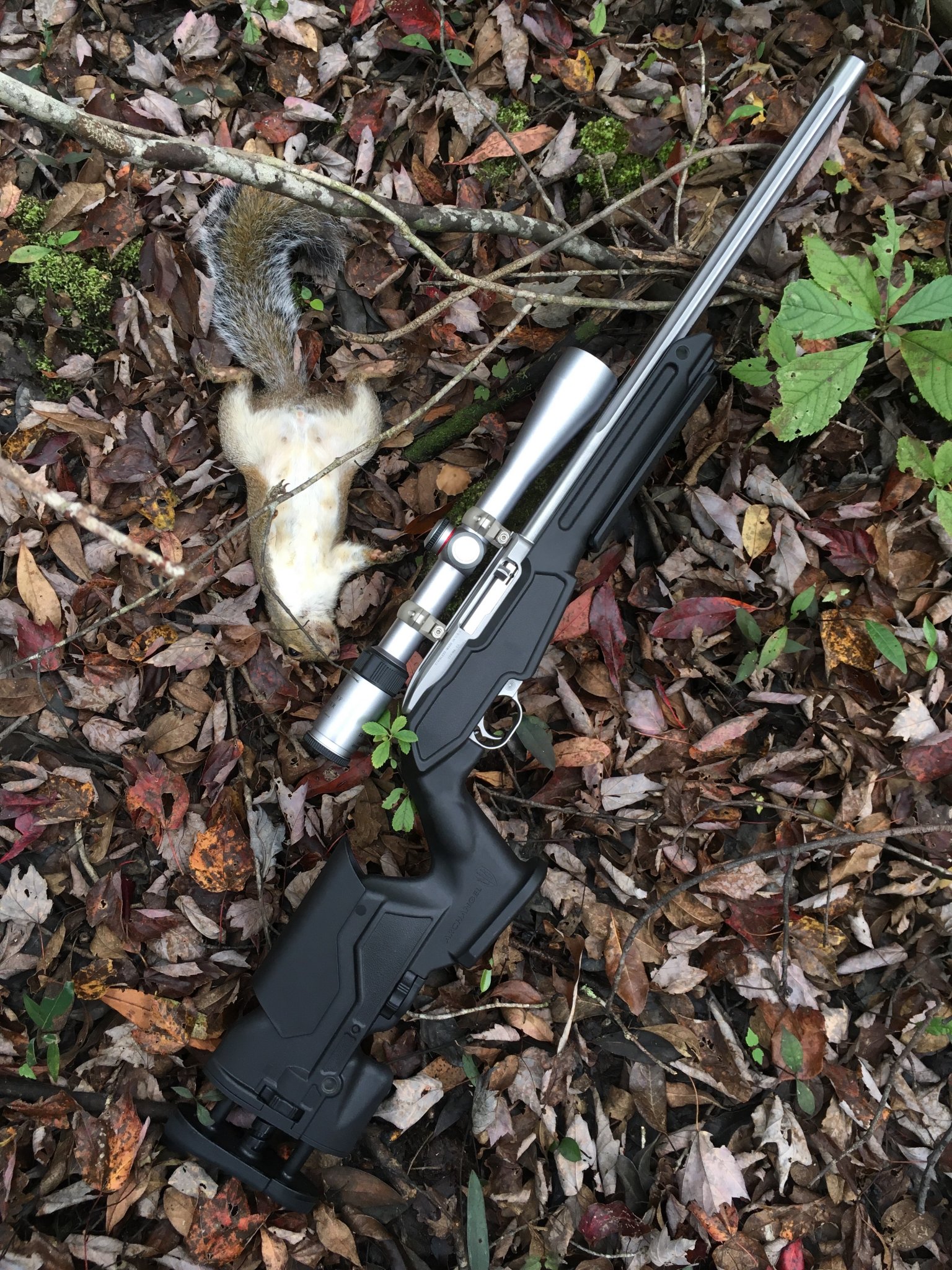 His budget is $1400 including ($575 for a) silencer and a Tandemkross trigger group. I'm tryin' to talk him out of the Takedown and silencer-- in favor of a 10/22 with better out-of-the-box accuracy. I'm quite severe in my criticism of his scope choice--but my bias for "better" clear and bright optics is showing I think. I also favor Volquartsen triggers but that's probably because I'm old and don't know what's available nowadays..