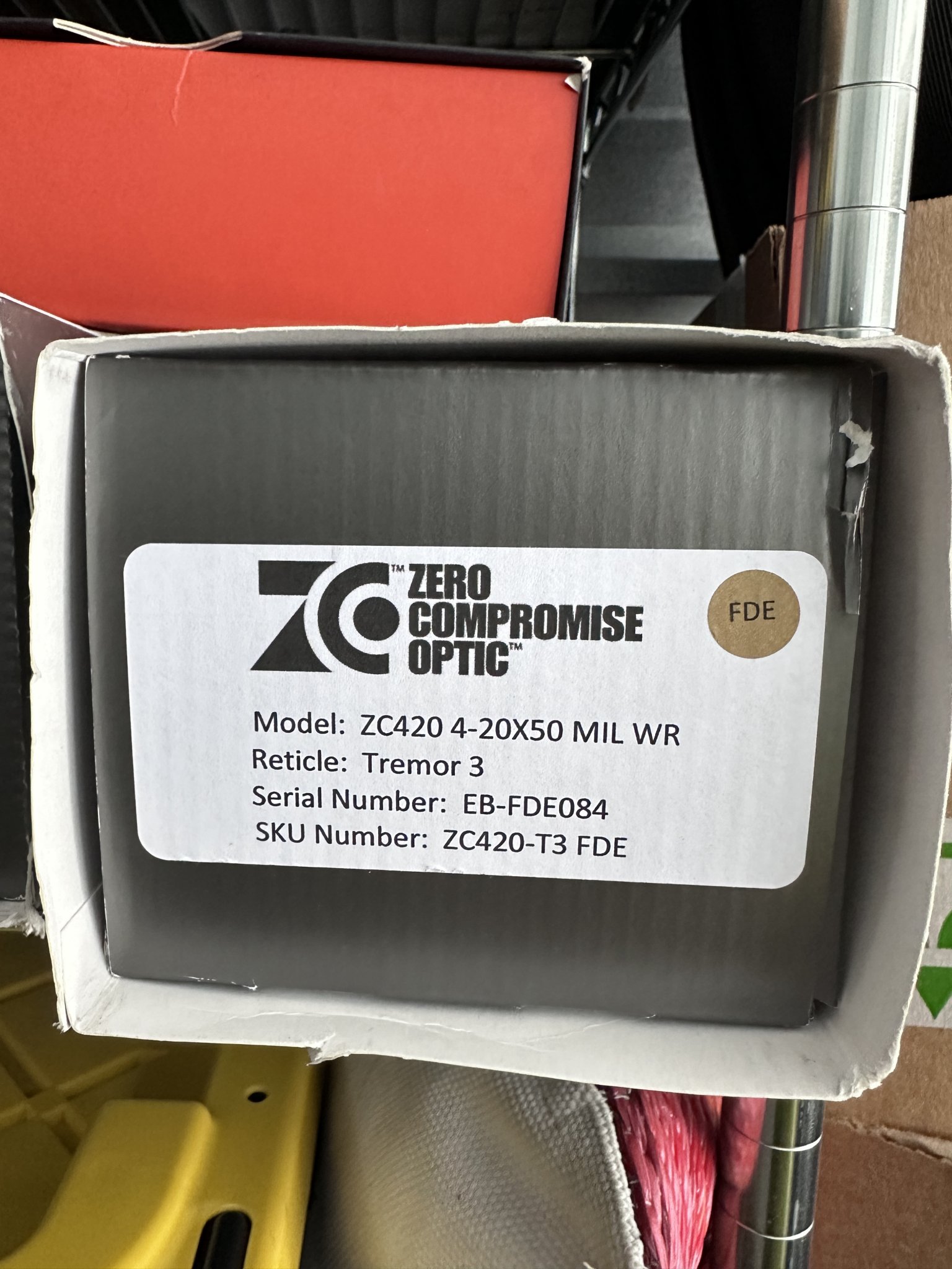 Selling a used ZCO 420 Tremor 3 FDE with Spuhr SP-6002 0 MOA mount and throw lever. Scope has couple of small scratches from the safe, Otherwise perfect condition.