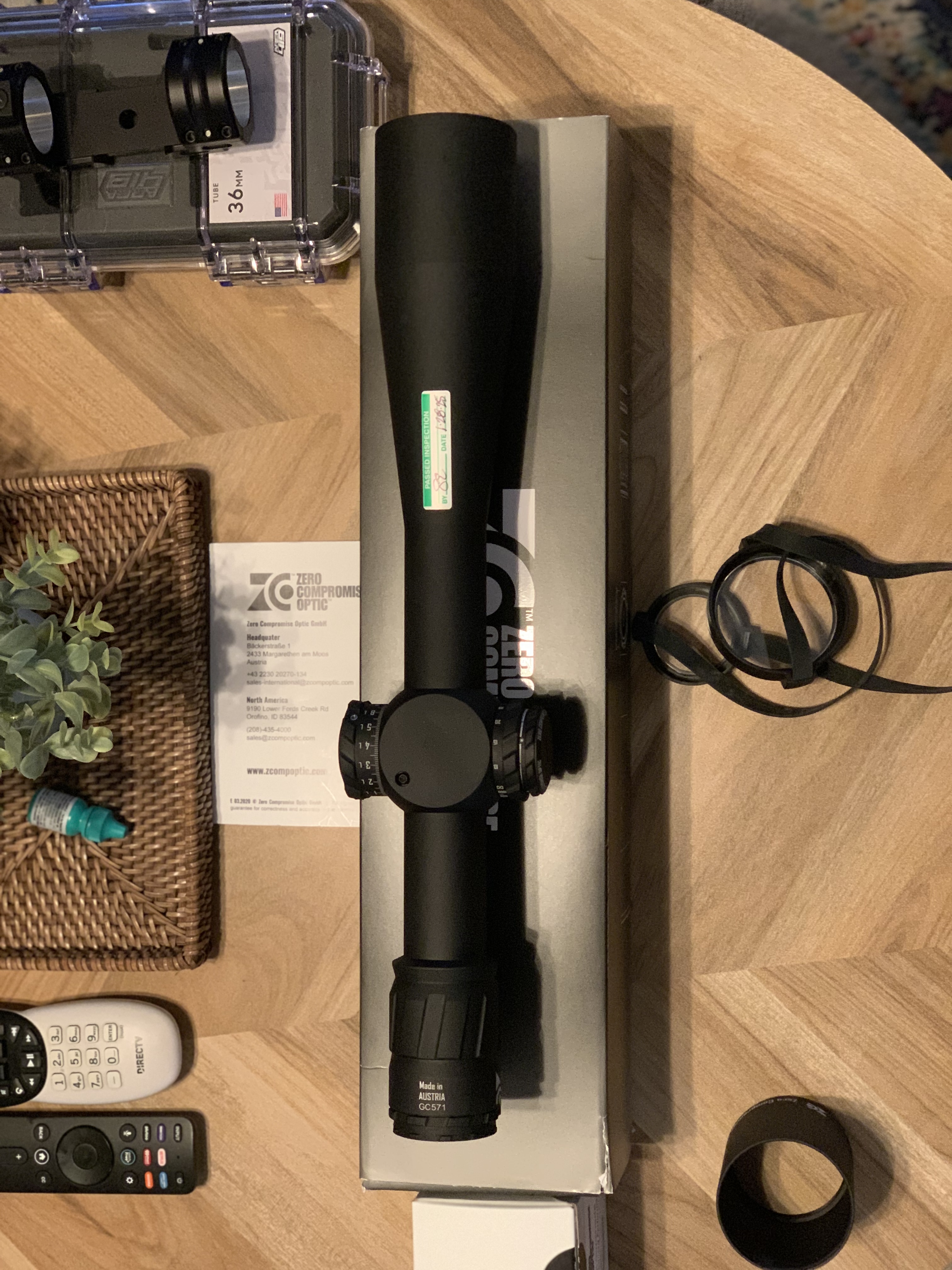 Like new, mounted then removed ZCO 8-40x56 with MPCT 1X reticle. 10 Mil elevation non-locking turret.