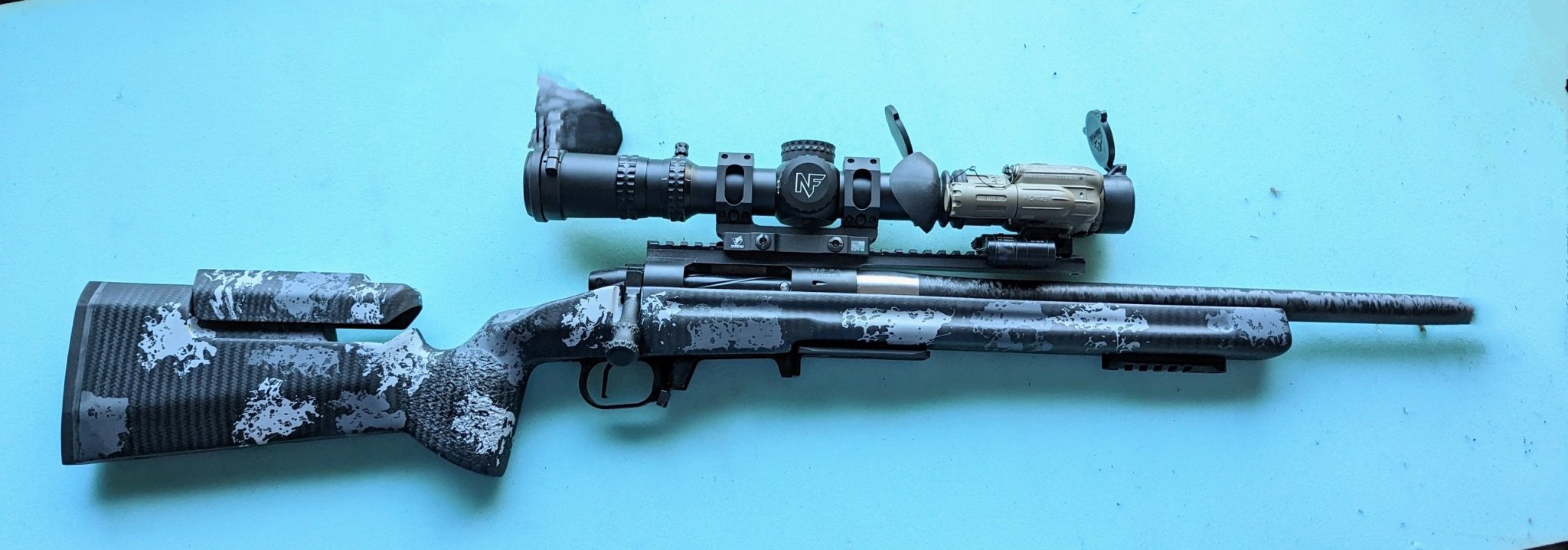 - Two piece, pinned aluminum 20 MOA rail (able to be replaced with Hawkins Hybrid or similar ring system)