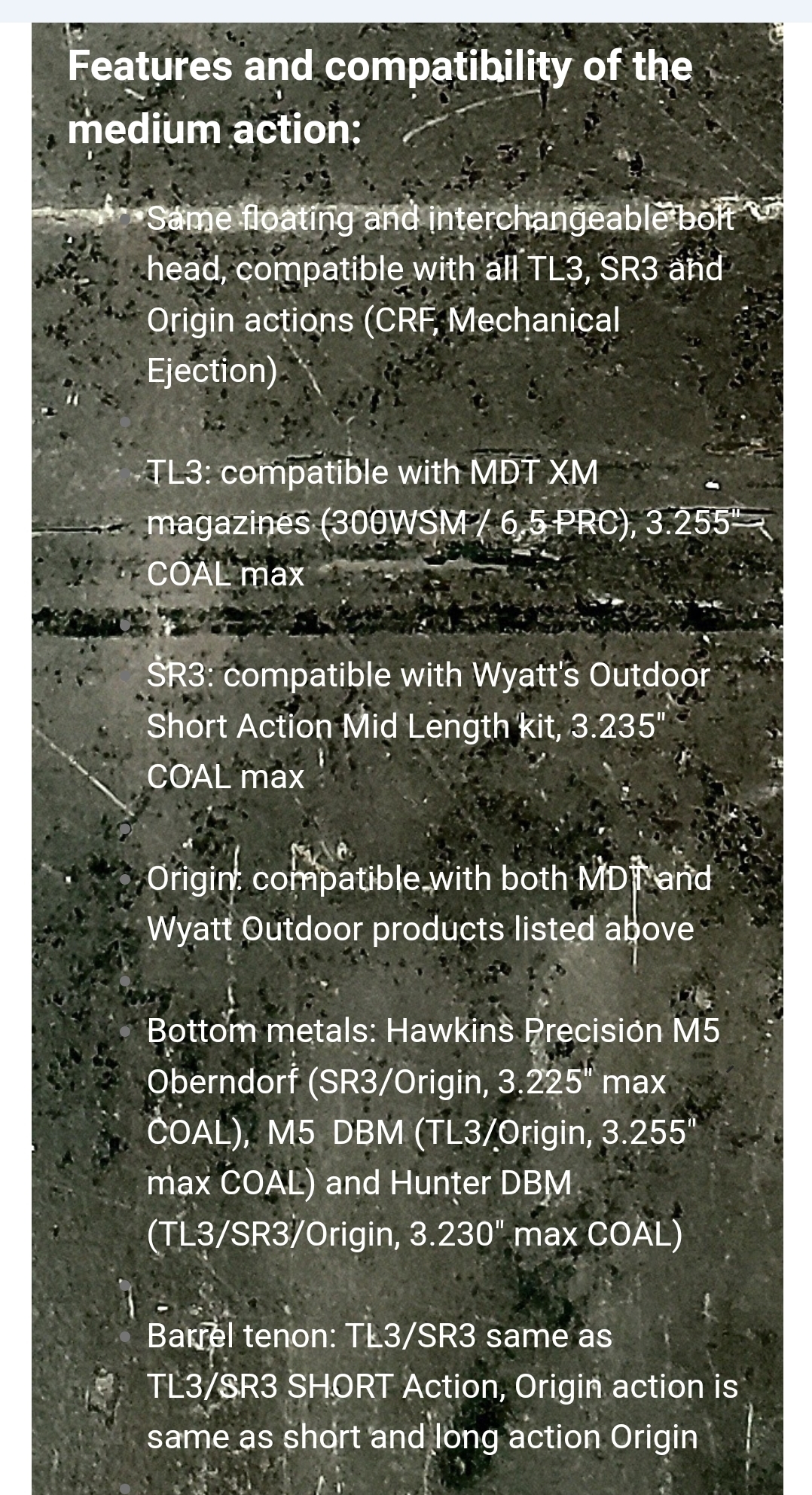I have a 6.5 PRC in a short action. It works, but a little more length would have been useful for the heavier/longer bullets. The trade-off is that medium length magazines are harder to find than short action.I was considering rebarreling my short action Origin for 6.5 PRC. I had to stop and wonder when I got that email. I'm not sure a medium-size action would be necessary and I didn't want to spend for a whole new rifle. Hmmm....