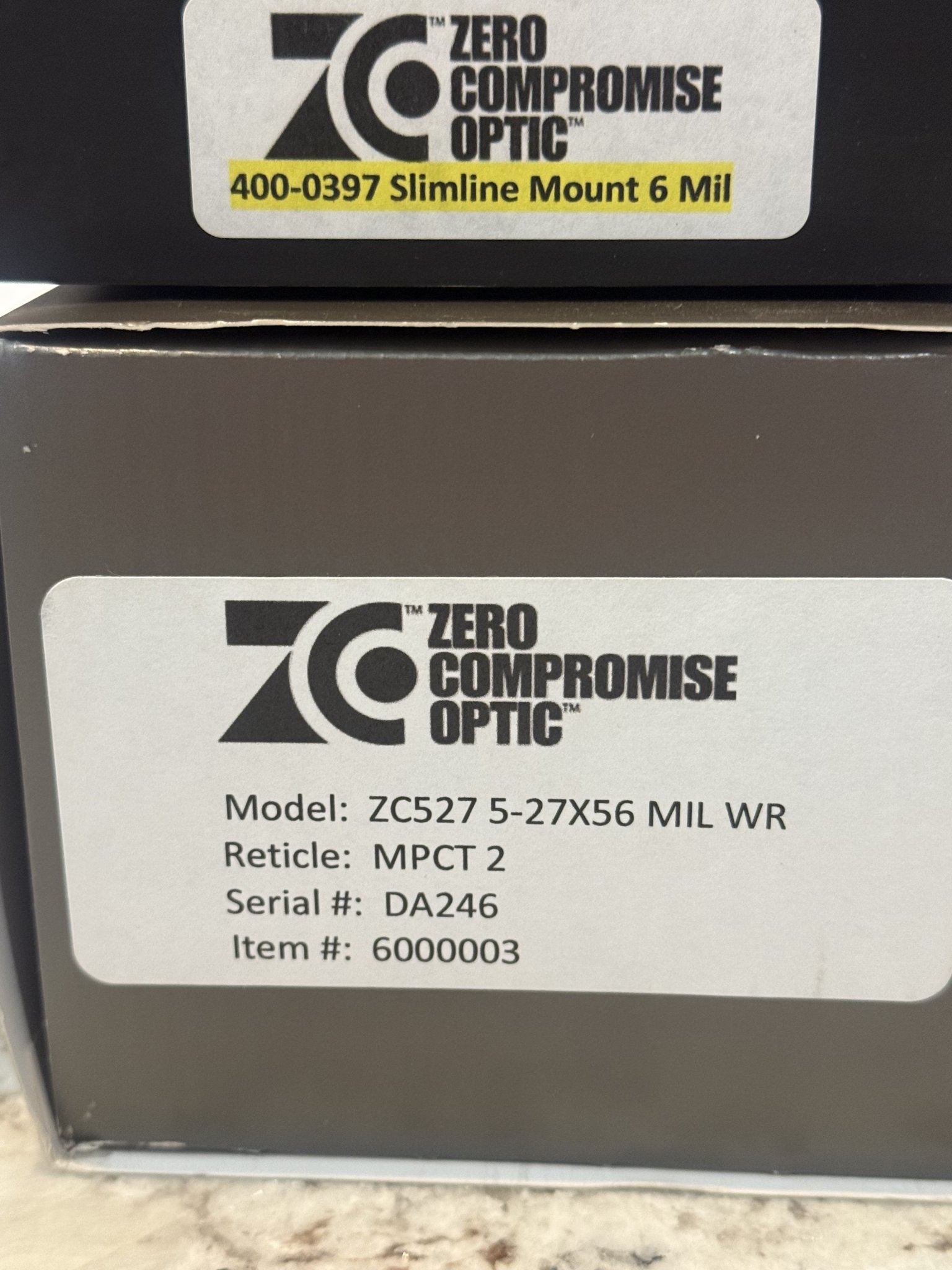 SOLD Zero Comp Optic 5-27x56 slimline mount